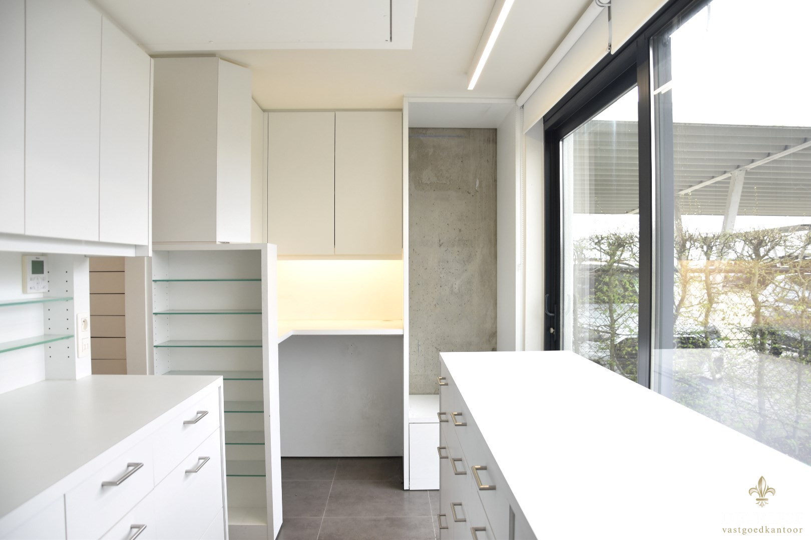 Achteraan vinden we een geïntegreerde bureauplaats met bijkeuken.