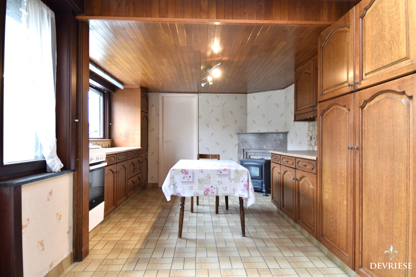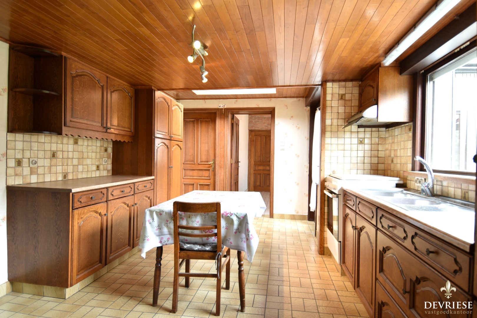 Aanliggend treffen we de geïnstalleerde keuken met veel opbergmogelijkheden en ontbijthoek.