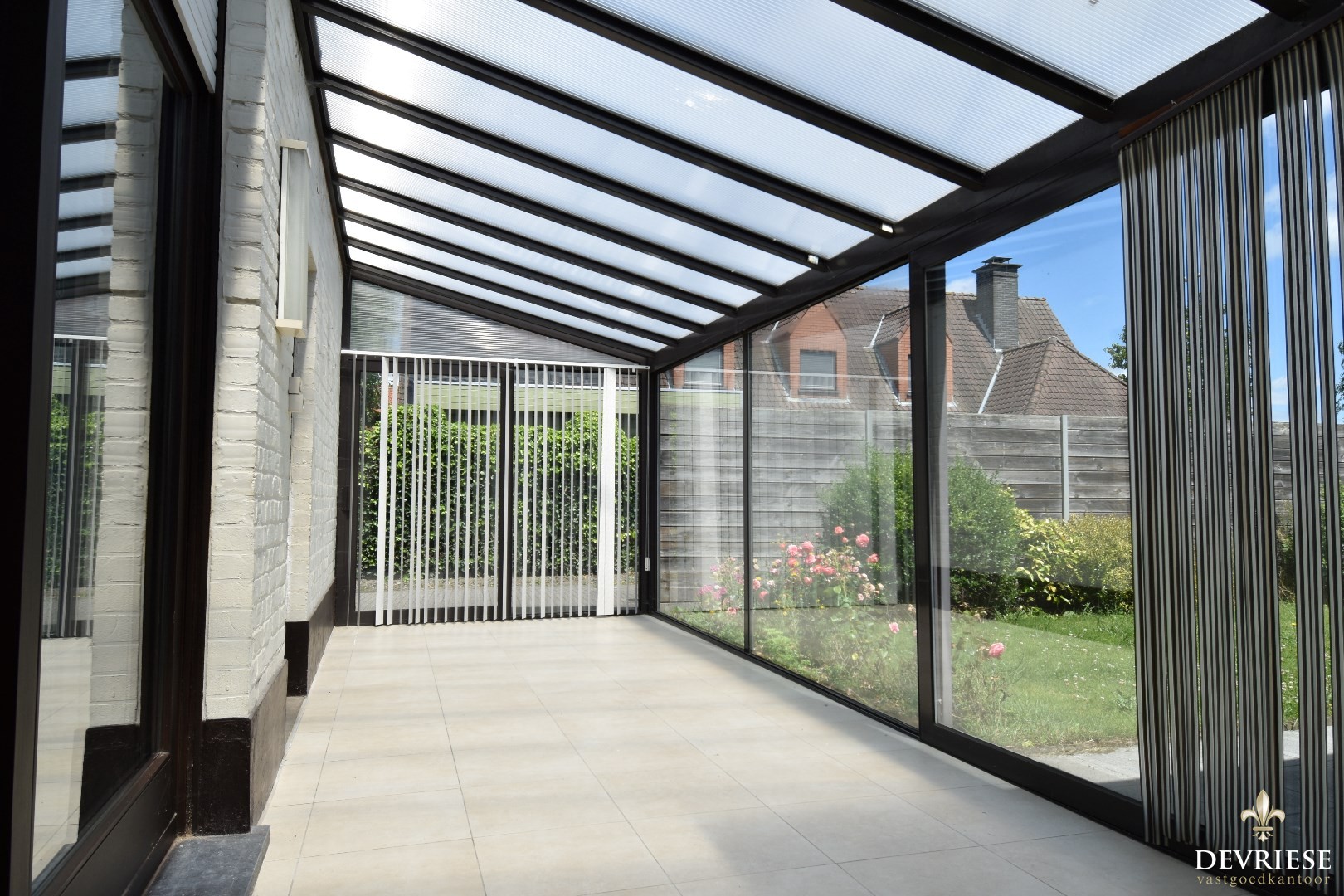 De veranda geniet zicht op de tuin en zorgt voor een droge verbinding tussen garage en woning.