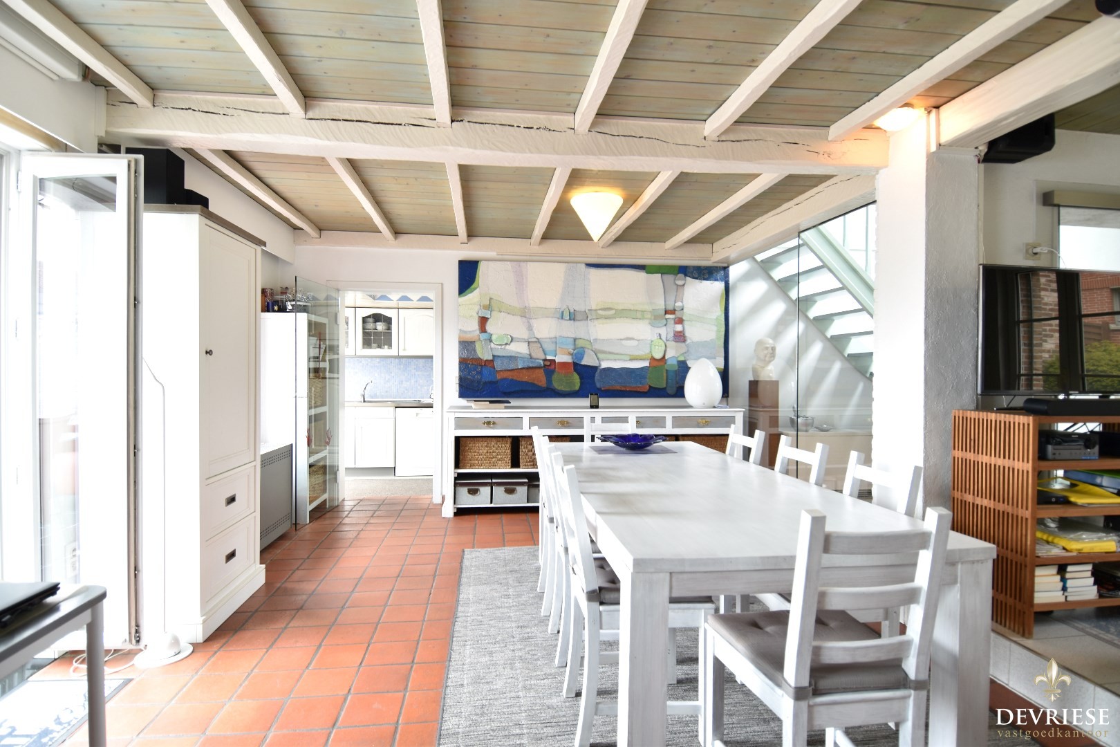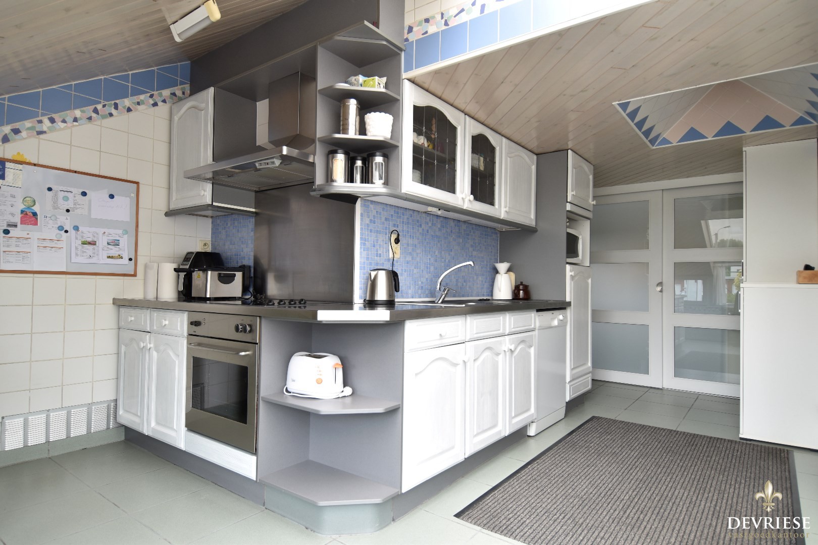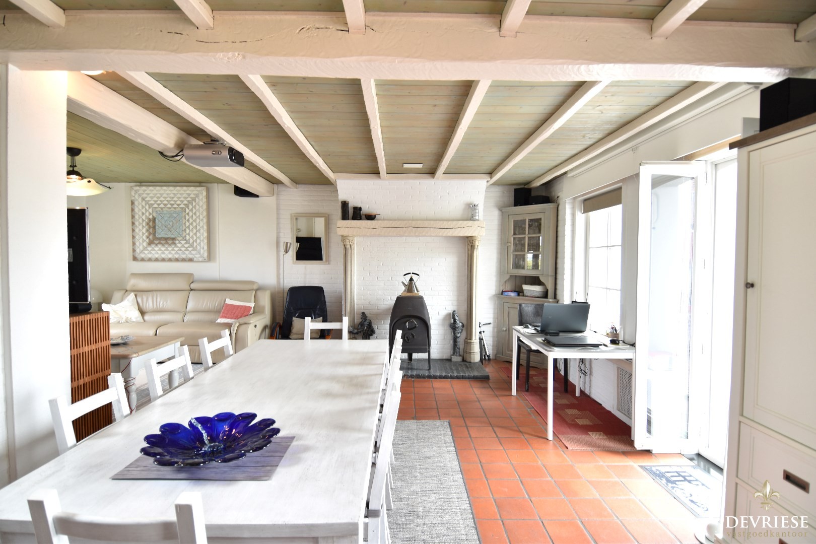 Binnenin geniet je van een ruime, lichtrijke indeling met een volledig uitgeruste woonkeuken en eetplaats, perfect voor gezellige familiemomenten. De aanpalende leefruimte behoudt haar authentieke charme, terwijl de leefveranda uitkijkt op het terras en de tuin. Dit is een ideale plek om in elk seizoen van het buitenleven te genieten.