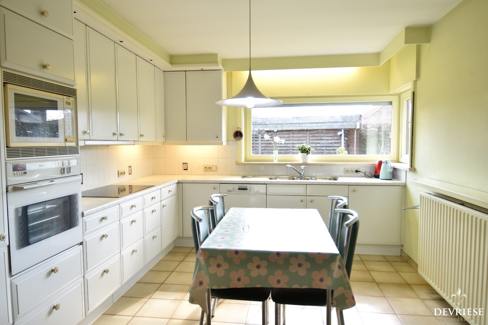 Bij binnenkomst wordt je verwelkomd in een ruime inkomhal met gastentoilet. De lichtrijke doorzonleefruimte van meer dan 40 m² zorgt voor een open en luchtig gevoel en is voorzien van een aparte bureelruimte. De volledig geïnstalleerde woonkeuken, uitgerust met moderne toestellen en een gezellige ontbijthoek, geniet -net als de woonkamer- vol zicht op de tuin.