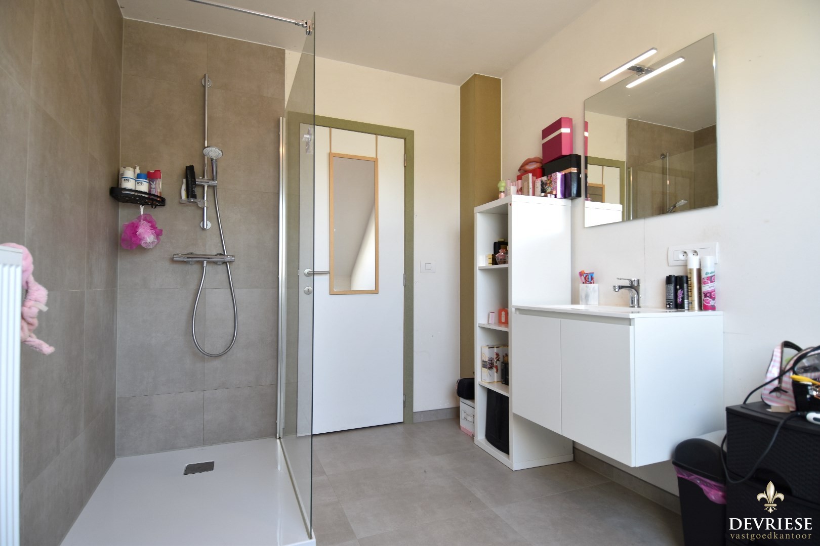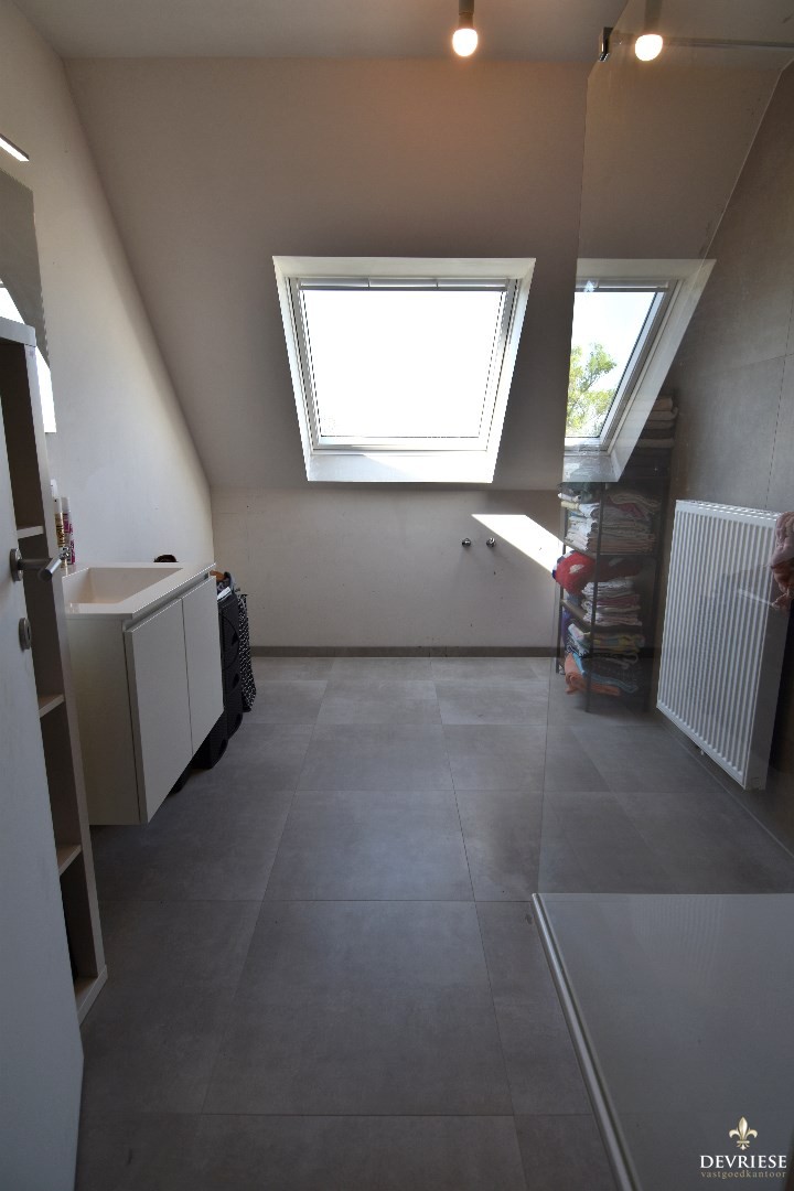 Op de eerste verdieping zijn er 3 slaapkamers, apart toilet en de badkamer met 1 lavabo, bad en inloopdouche.