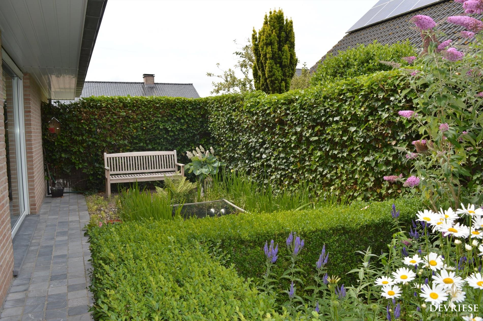 Zowel achteraan als op de zijkanten is de tuin zeer mooi aangelegd, volledig groen zicht met veel verschillende begroeiing en waar het op elk moment van de dag genieten is.