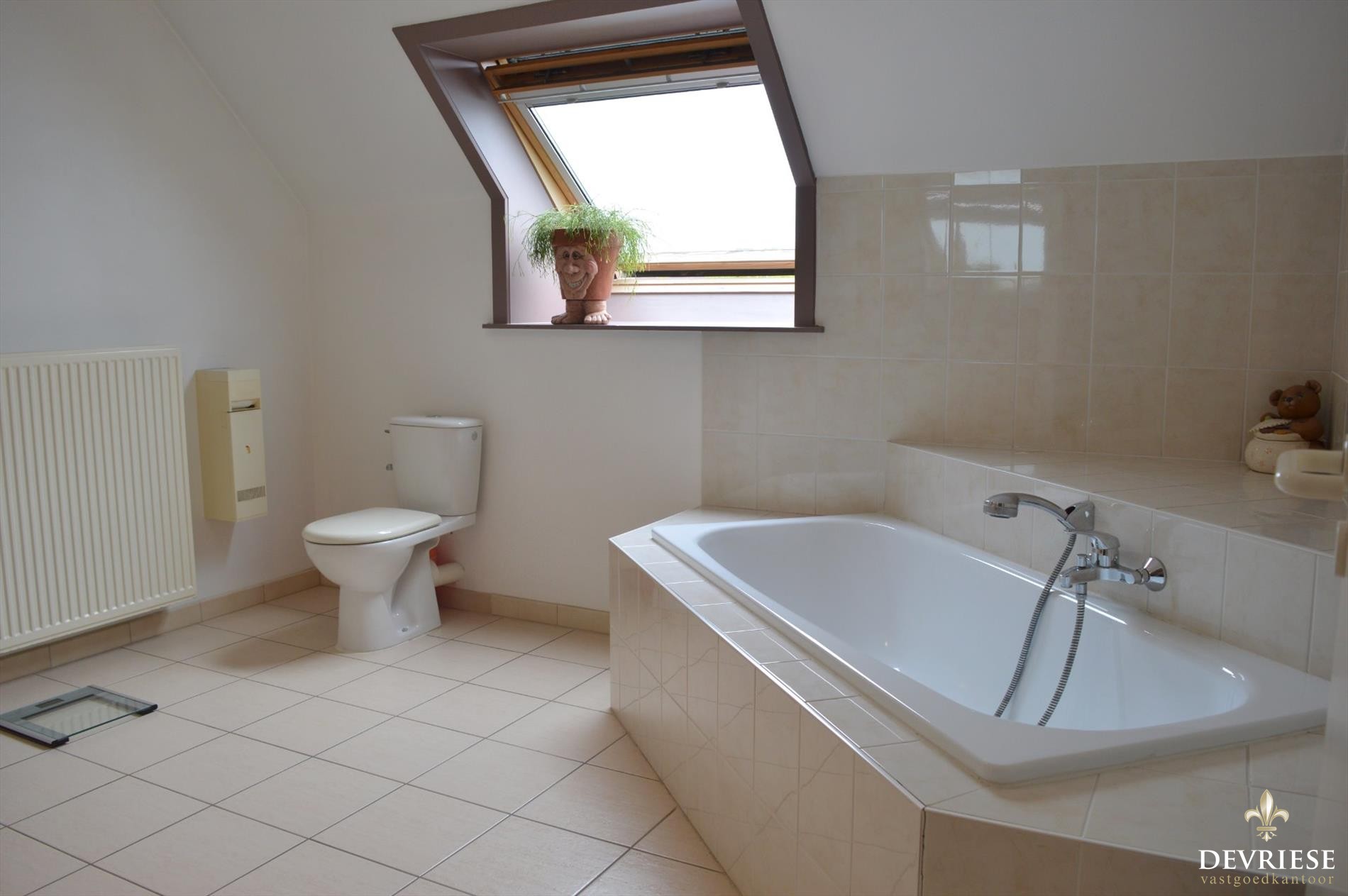 Op de eerste verdieping zijn er 4 slaapkamers, een extra bergruimte en een ruime badkamer voorzien van bad, douche, een tweede toilet en dubbele lavabo. Vanop de verdieping is er toegang tot de zolder die vast en zeker nog in heel wat extra bergruimte voorziet.