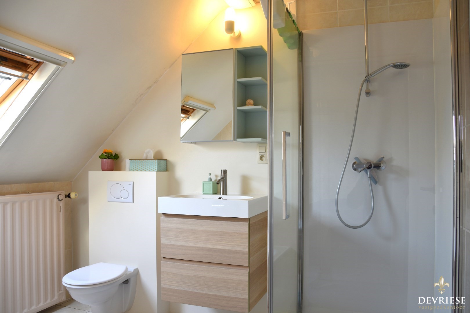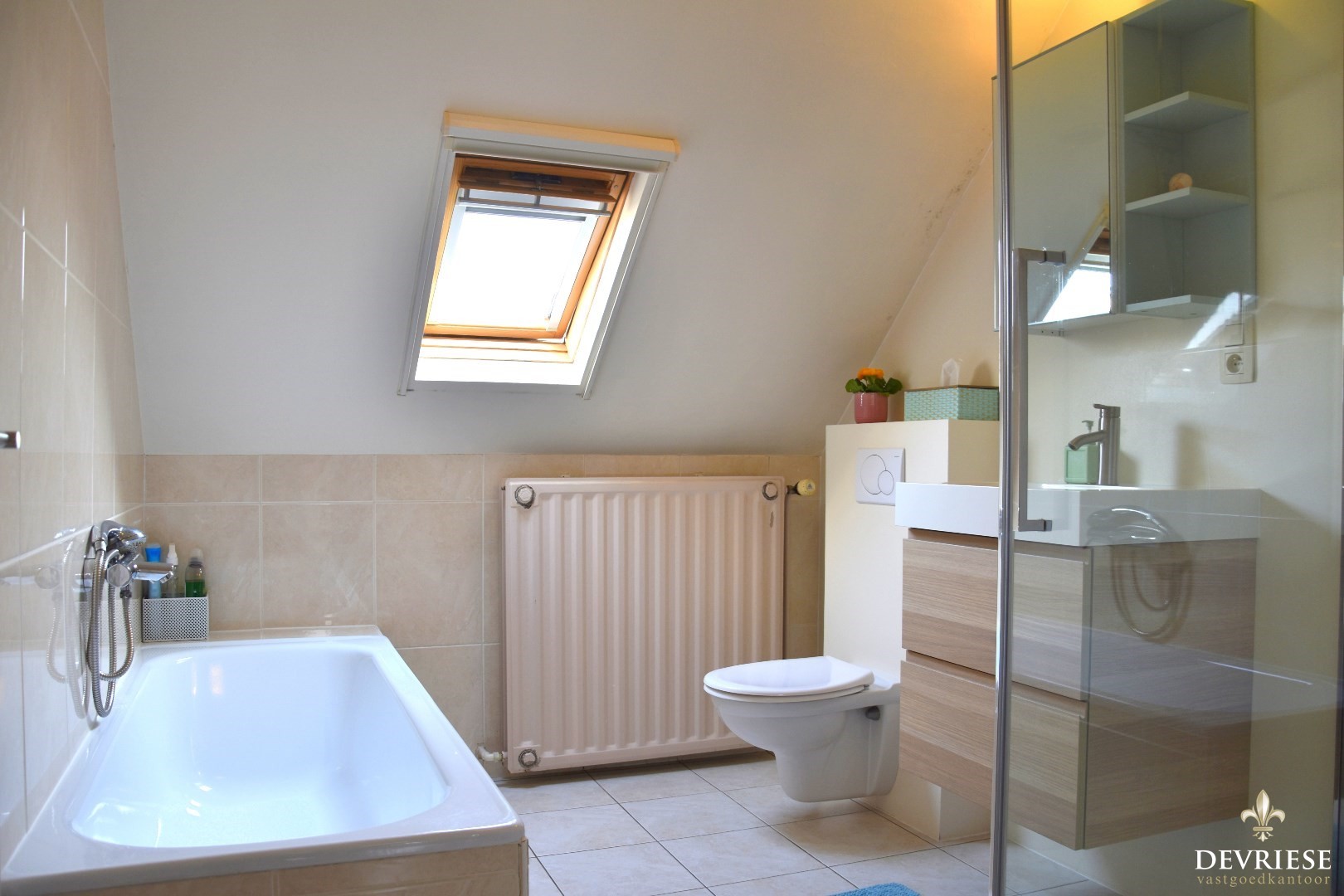 Een recent vernieuwde badkamer werd ingericht met lavabomeubel, douche én ligbad.