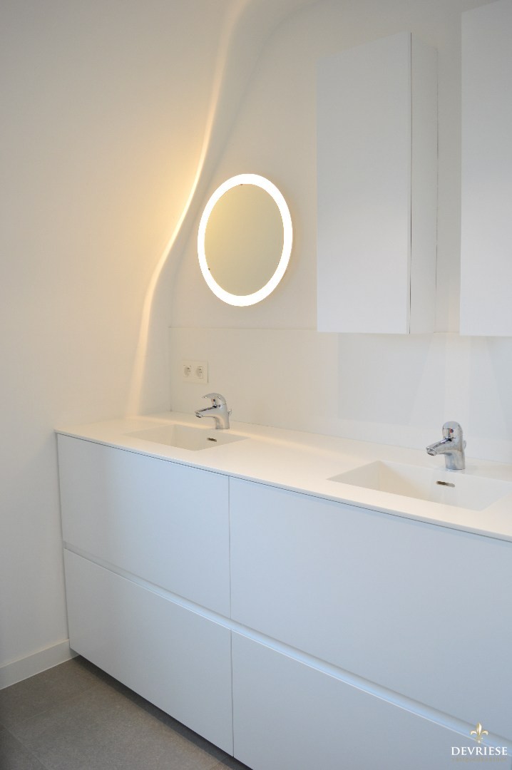 Op de eerste verdieping bevinden zich 2 volwaardige slaapkamers. Moderne badkamer voorzien van douche, dubbel lavabomeubel en een tweede ... toilet.