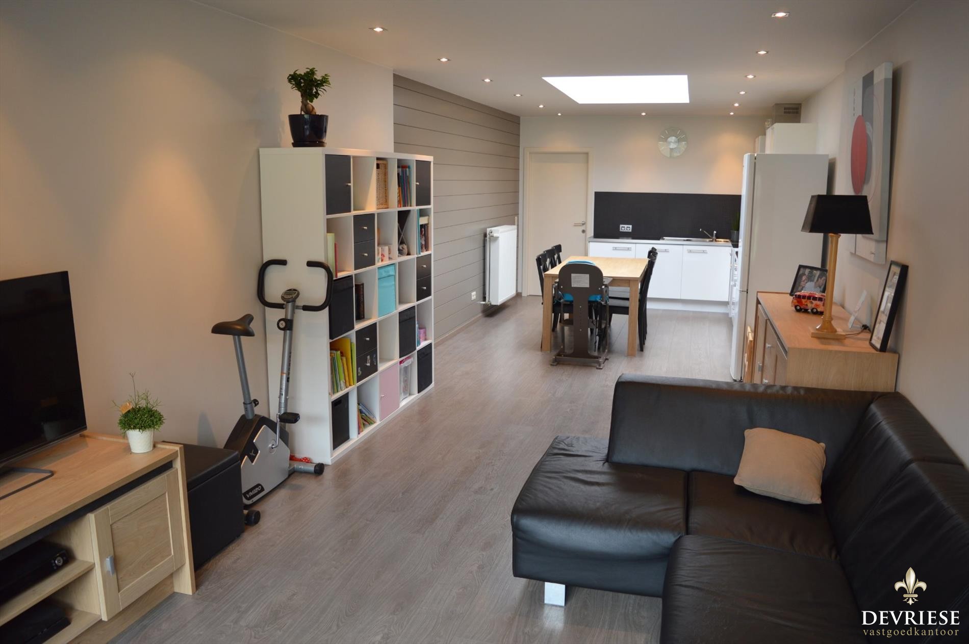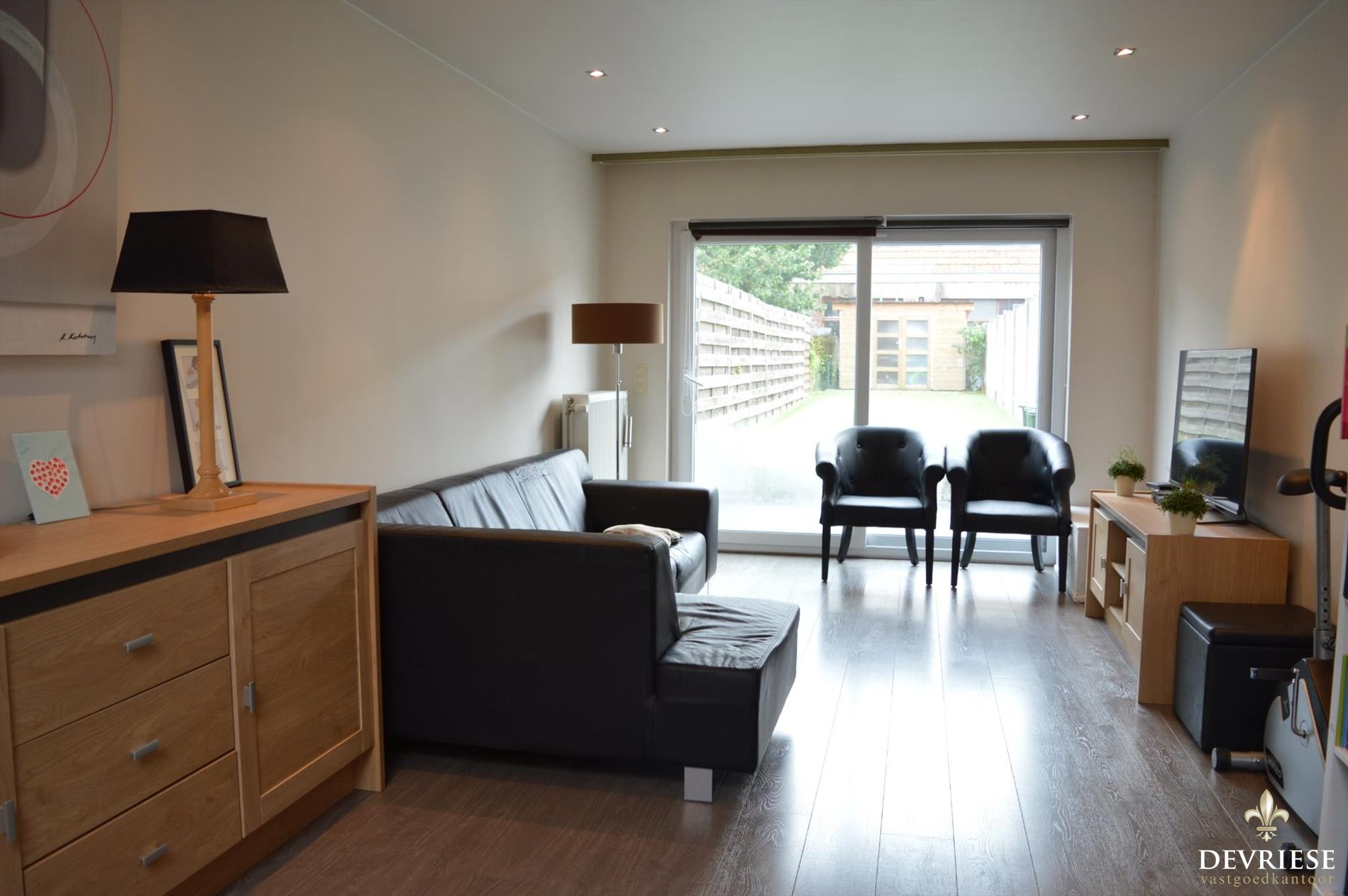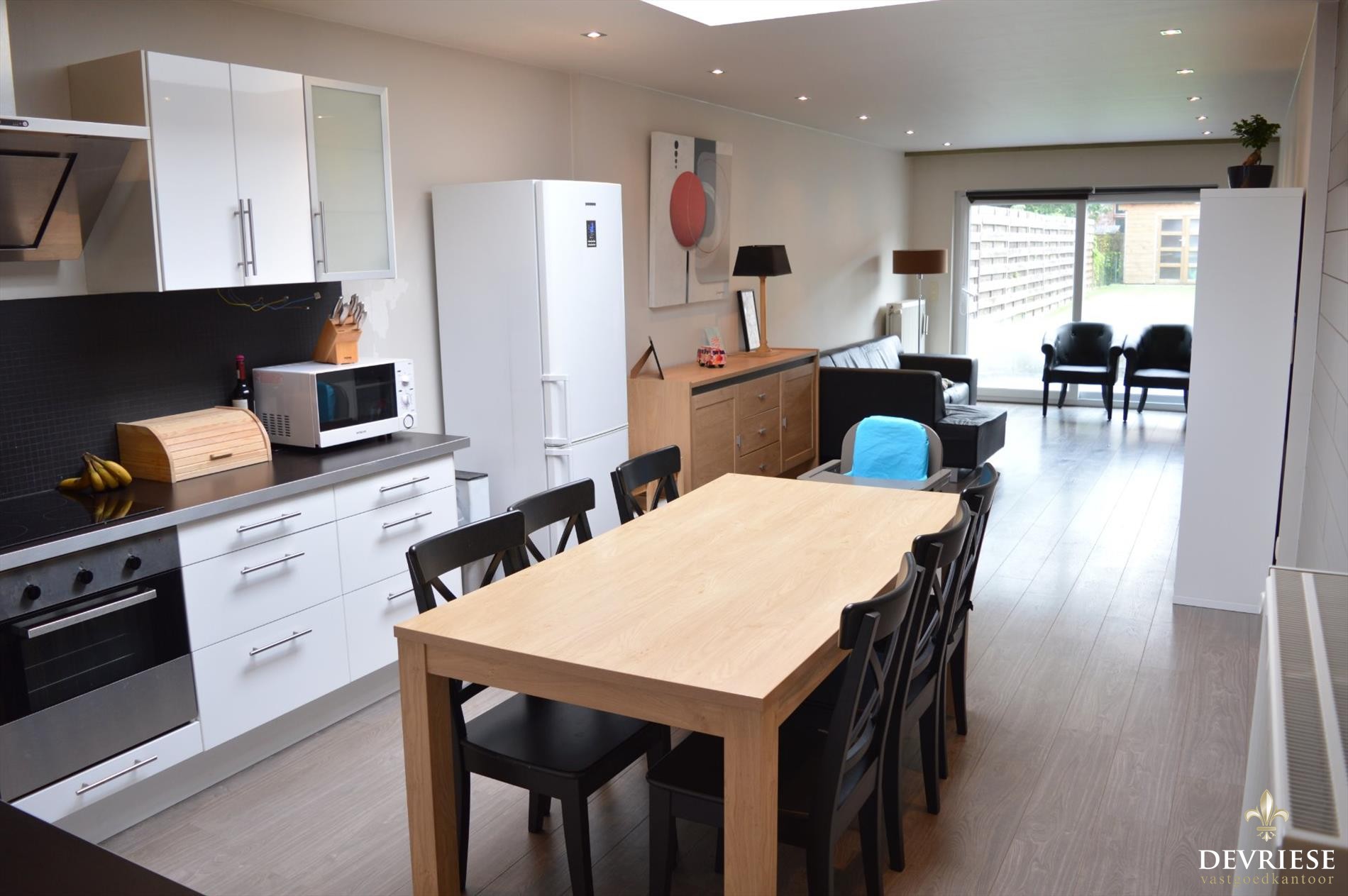De open keuken en leefruimte geven een ruimtelijk gevoel en er is heel wat lichtinval voorzien. Achteraan en vanuit de leefruimte is er zicht op de onderhoudsvriendelijke tuin, met achteraan een tuinhuis.