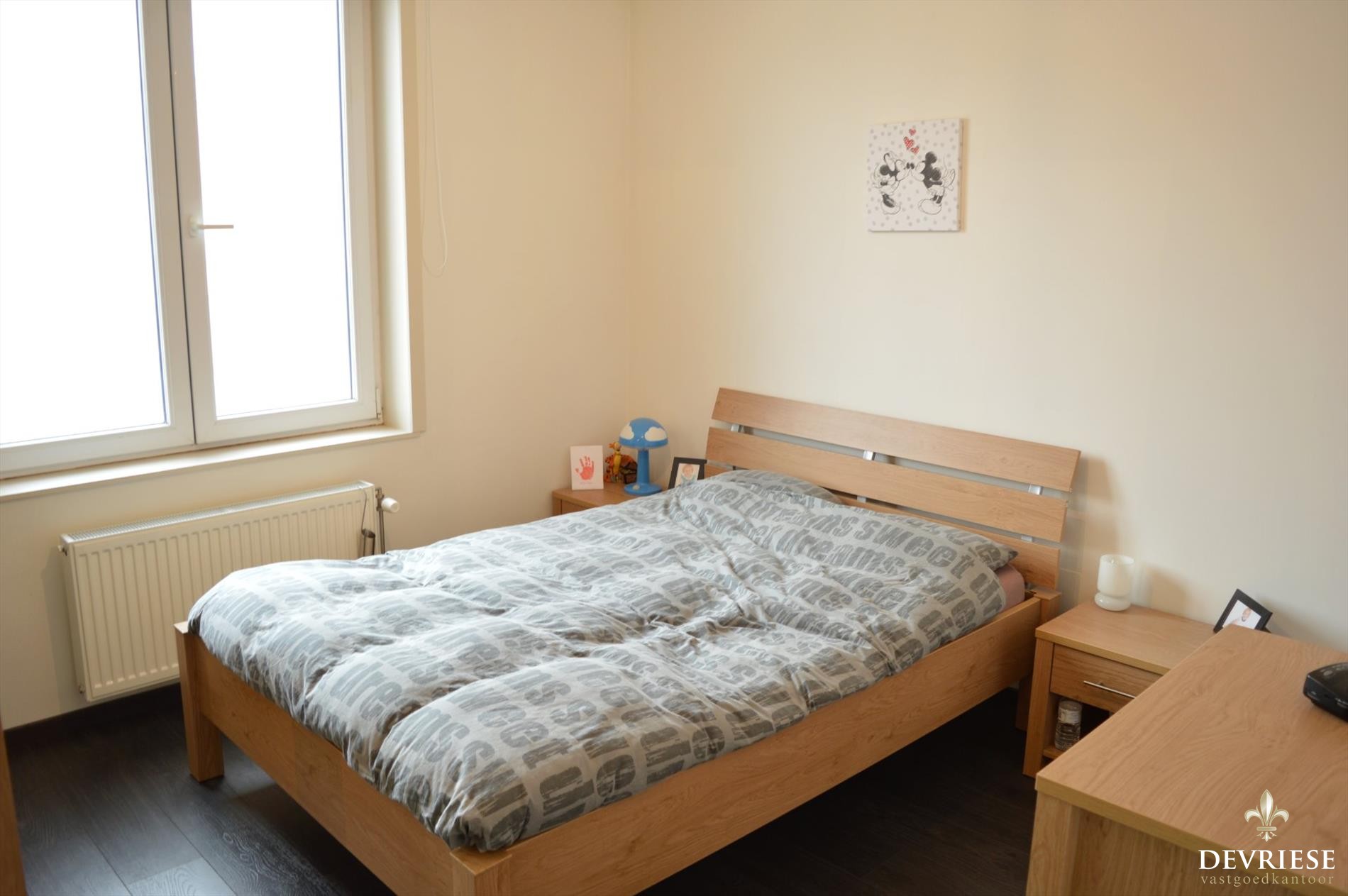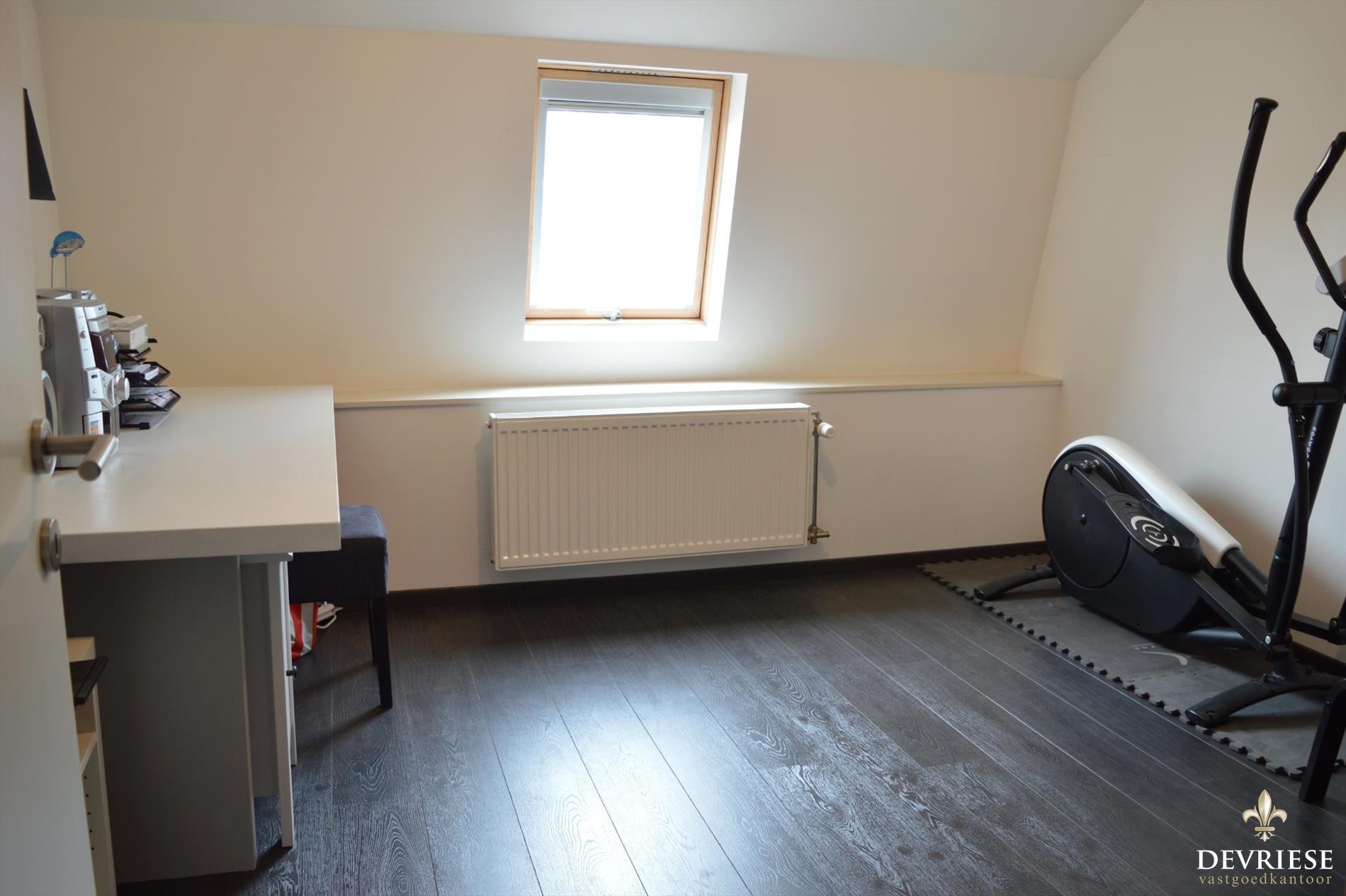 Op de eerste verdieping een eerste slaapkamer en de badkamer met douche, dubbele lavabo en een toilet. Van hieruit is toegang tot fijne zonne-terras. Op de tweede verdieping zijn er nog 2 slaapkamers te vinden. Vooraan de woning is er een privé parkeerplaats voorzien.