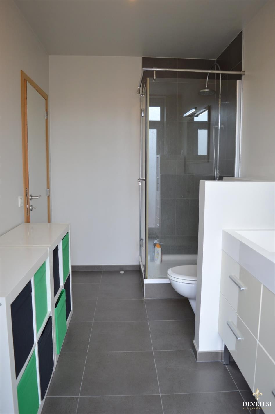 Vooraan de woning kom je binnen in de ruime hal die dienst kan doen als bergruimte, plaatsen van fietsen,... Verder het aparte toilet, een extra bergruimte en is er toegang tot de praktische zeer bruikbare kelder.
