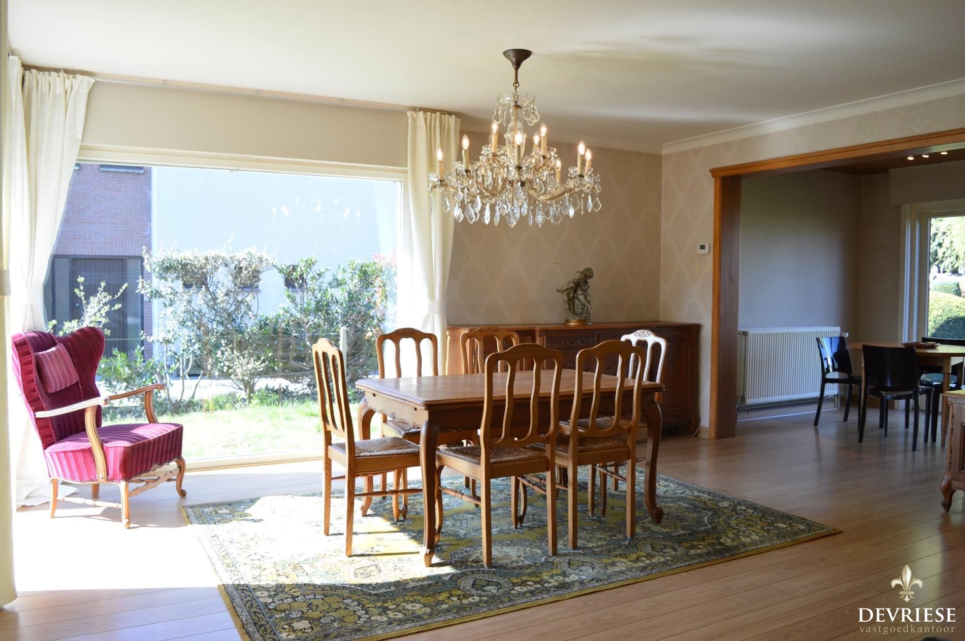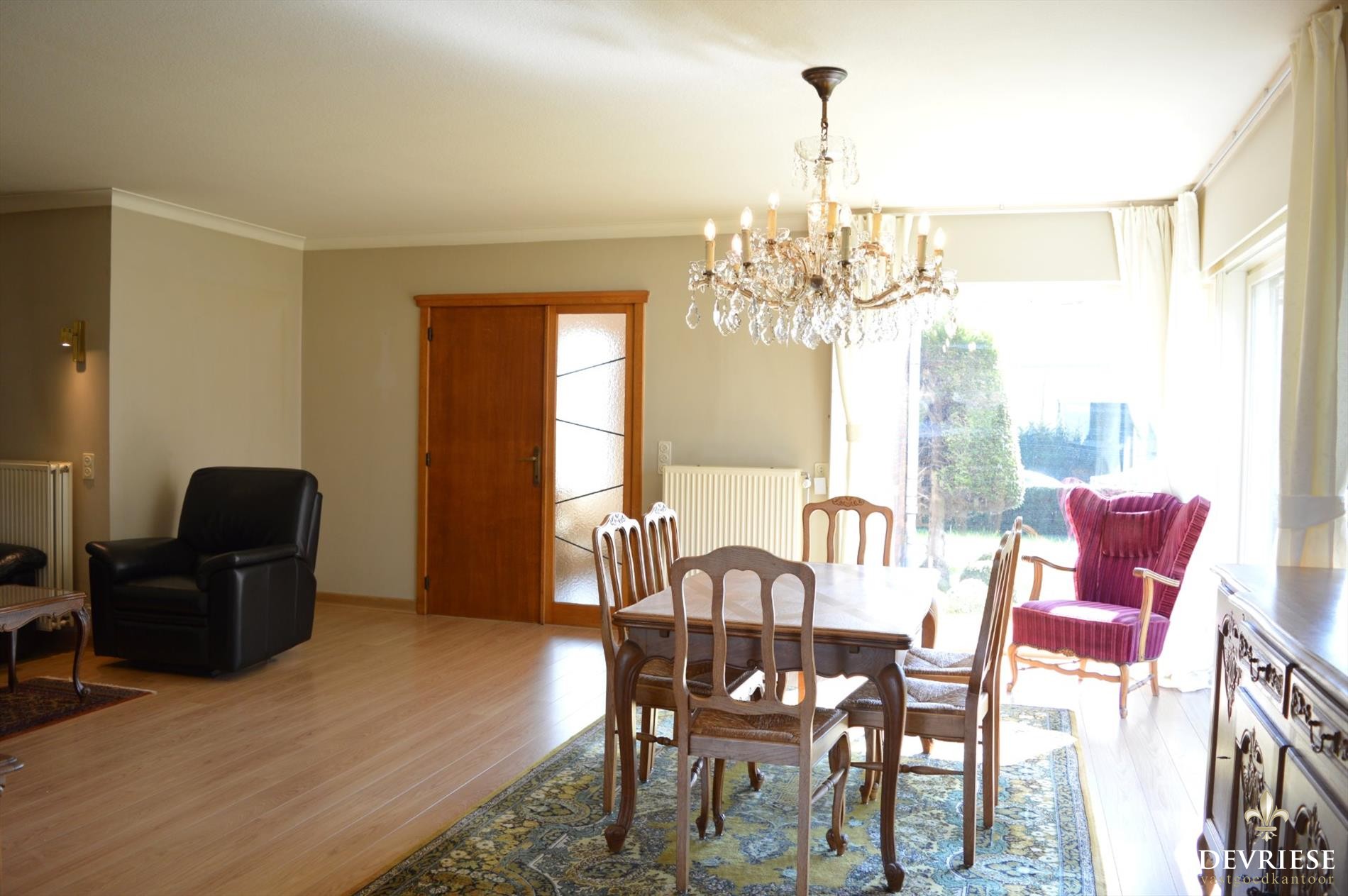 Daarop aansluitend de mooie ruime leefruimte, bestaande uit een zit- en eethoek, groen zicht rondom en een plaats die warmte en gezelligheid uitstraalt.