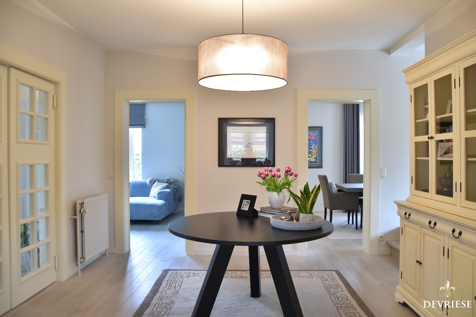 Al bij het binnenkomen in de hal wordt de toon gezet door de warme en mooie inrichting. De hal ligt centraal in de woning en van hieruit heeft u toegang tot alle gelijkvloerse ruimtes. Een aparte vestiaire met gastentoilet en gezellige, ruime zithoek vooraan de woning. Daarachter een aparte eetkamer. Aan de overzijde bevindt zich de ruime leefkeuken die veel daglicht geniet en die is voorzien van alle moderne comfort. Daarbij aansluitend een praktische berging en een aparte bureauruimte.