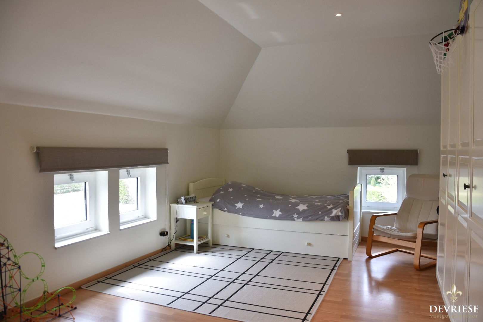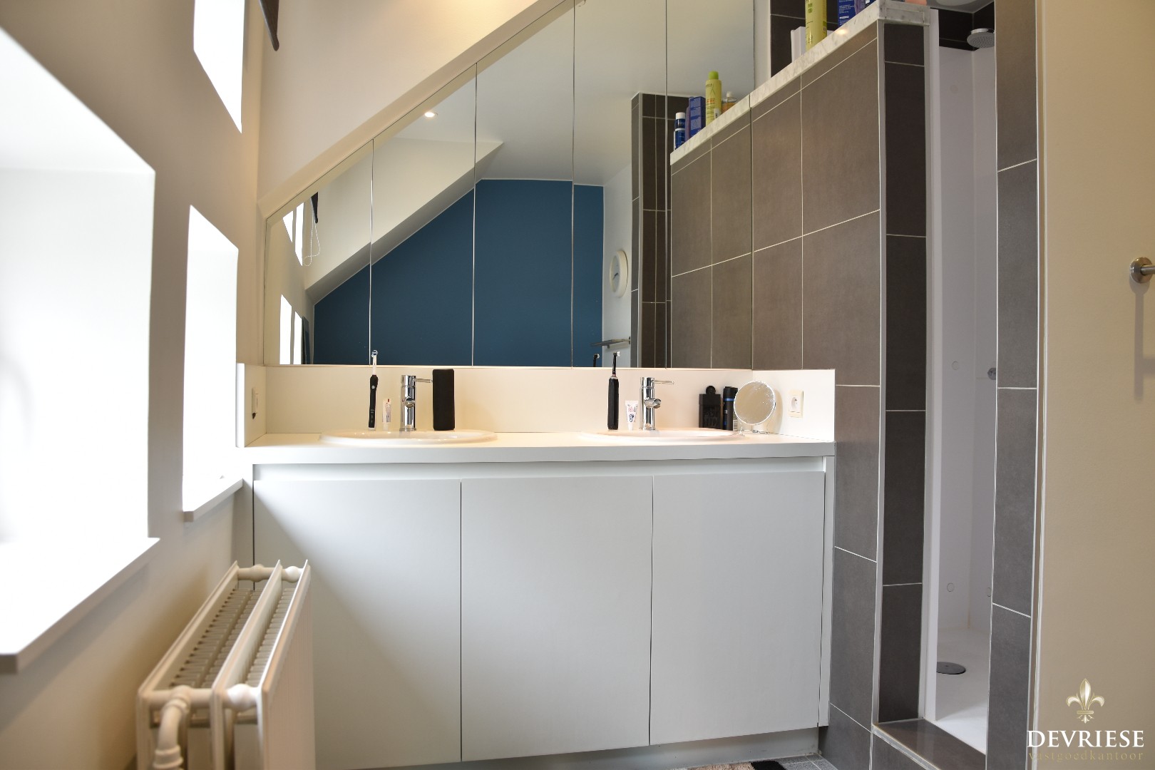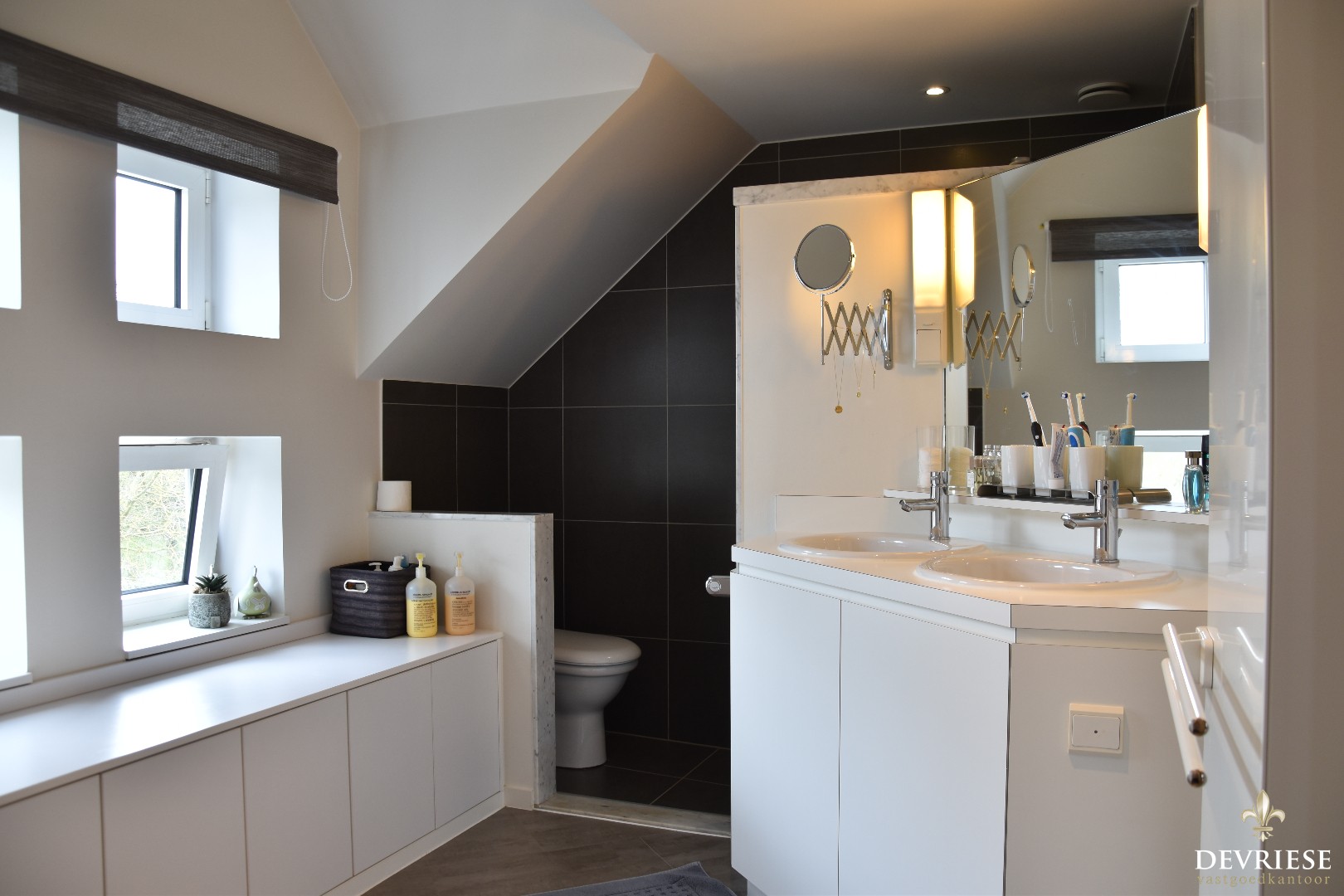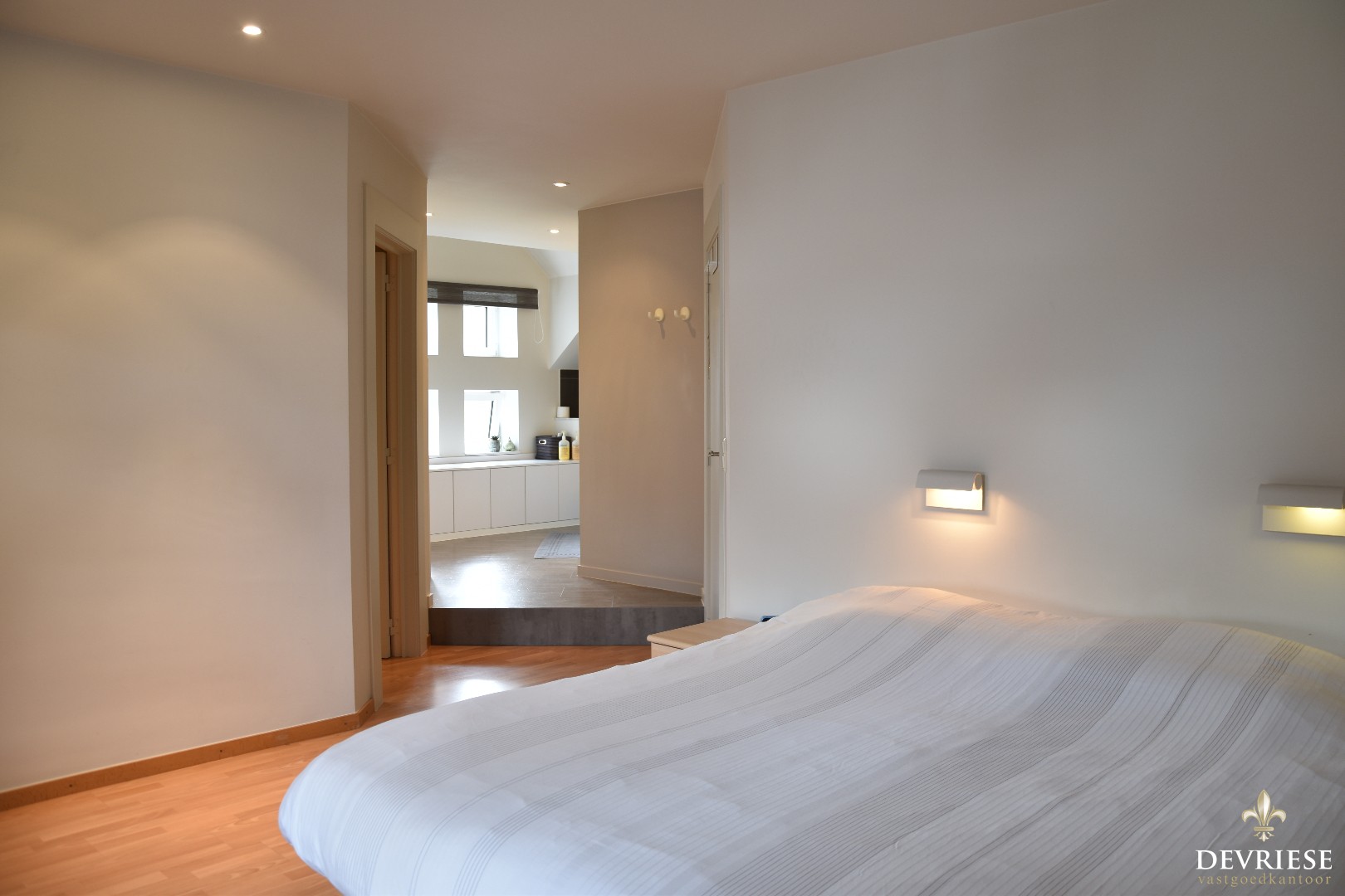 Zo tellen we 4 volwaardige ... slaapkamers en twee badkamers. Bij de master bedroom een dressing en een eigen badkamer met dubbele lavabo, inloopdouche en toilet. De tweede badkamer beschikt eveneens over een douche, toilet en dubbele lavabo.