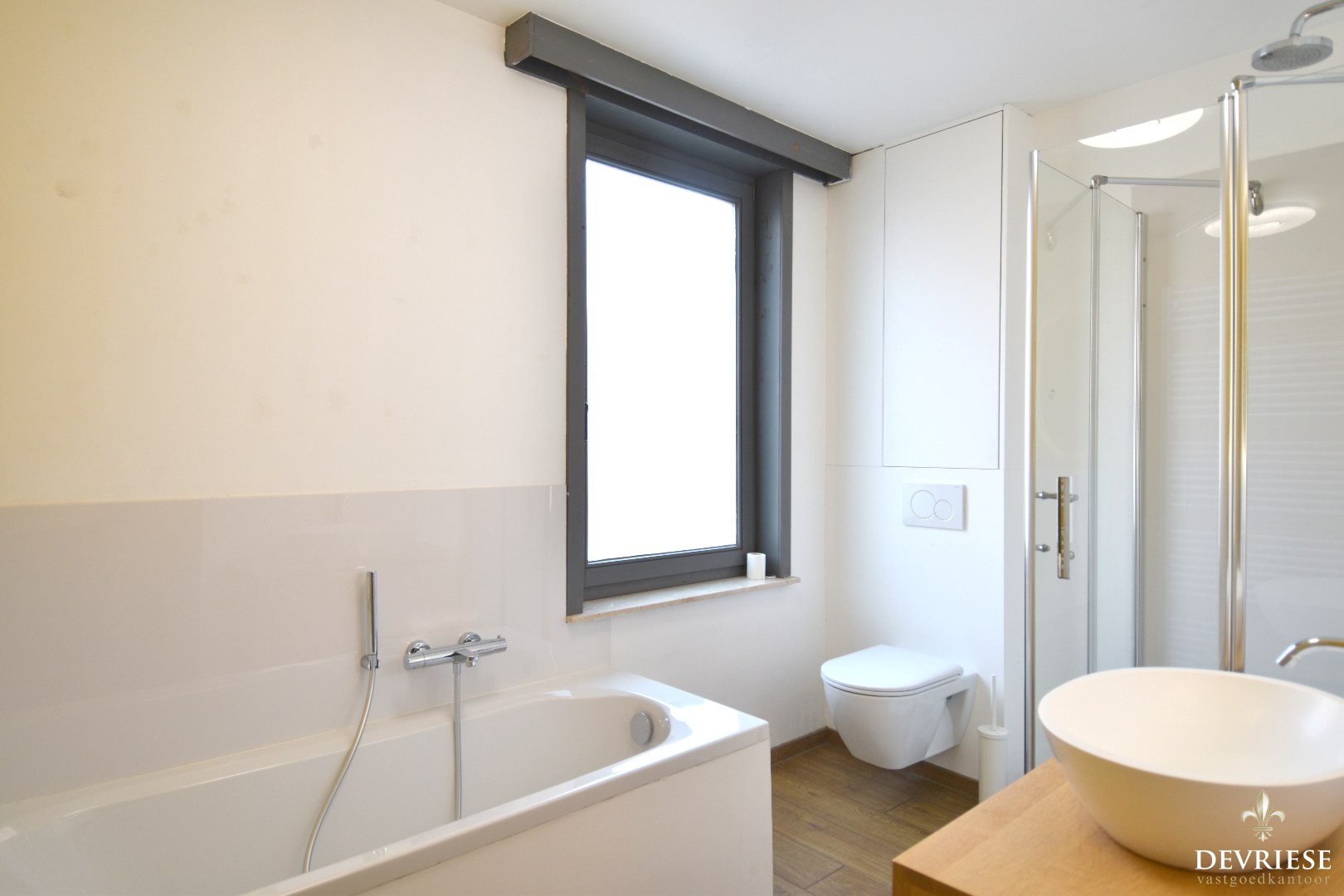 Op de eerste verdieping bevindt zich een eerste slaapkamer. De moderne badkamer is uitgerust met een douche, ligbad, lavabo en een tweede toilet.