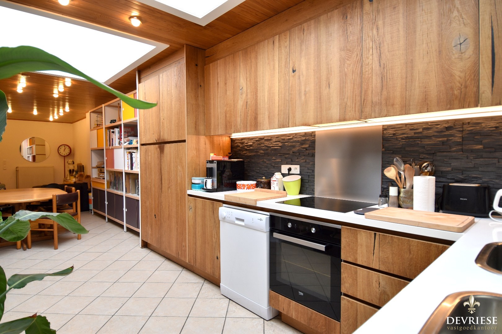 Bij het betreden van de woning kom je terecht in de inkomhal met apart gastentoilet. Aansluitend bevindt zich de gezellige leefruimte met een volledig geïnstalleerde open keuken, wat zorgt voor een aangenaam en open gevoel.