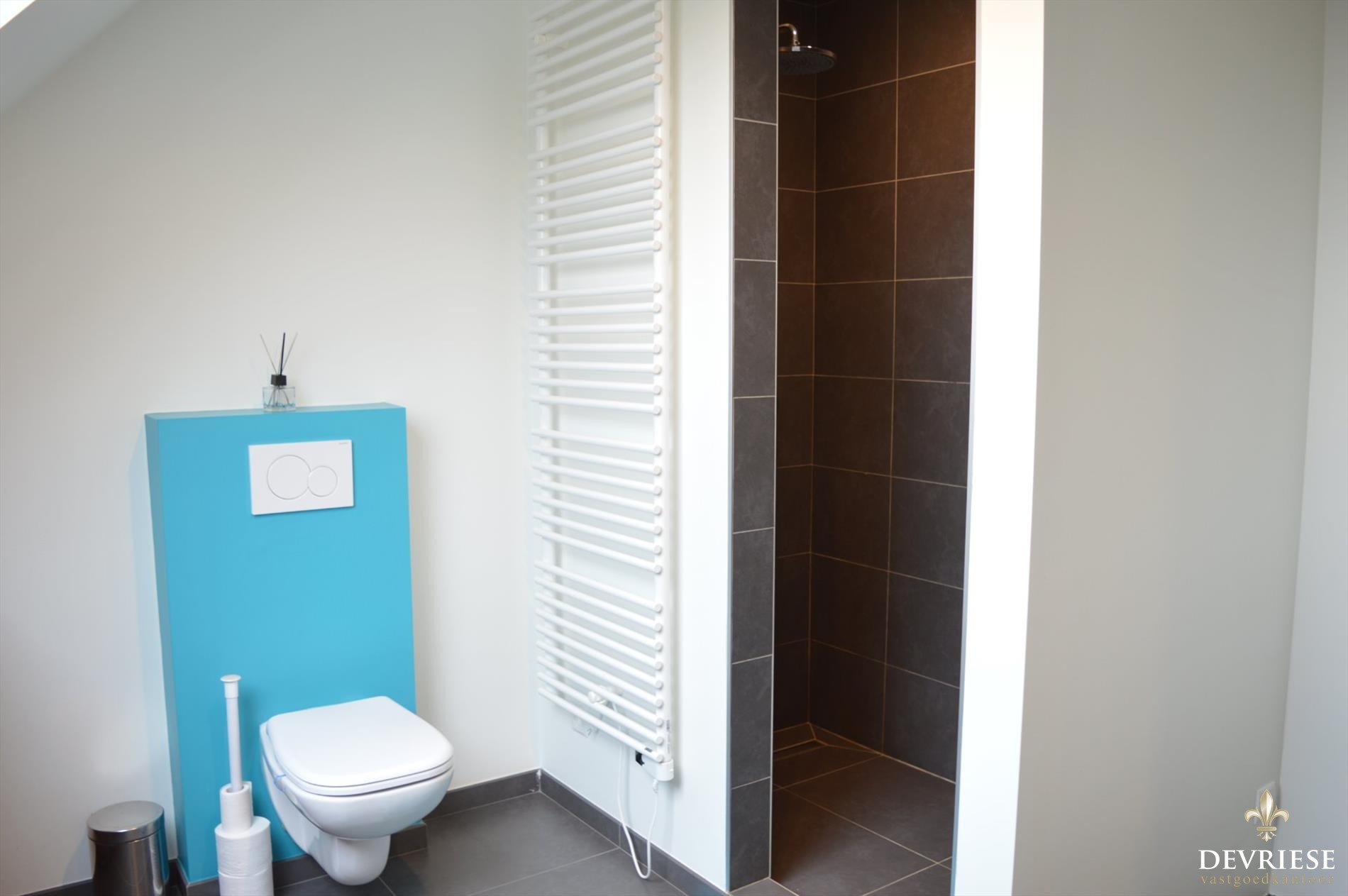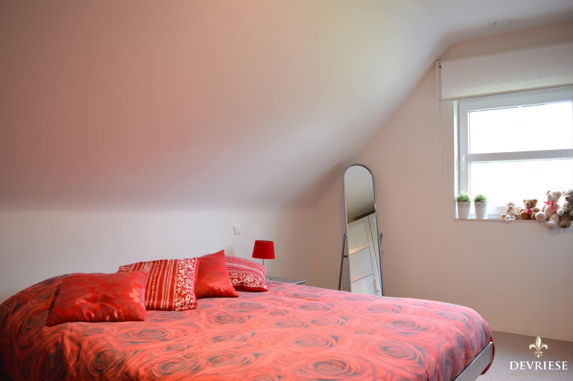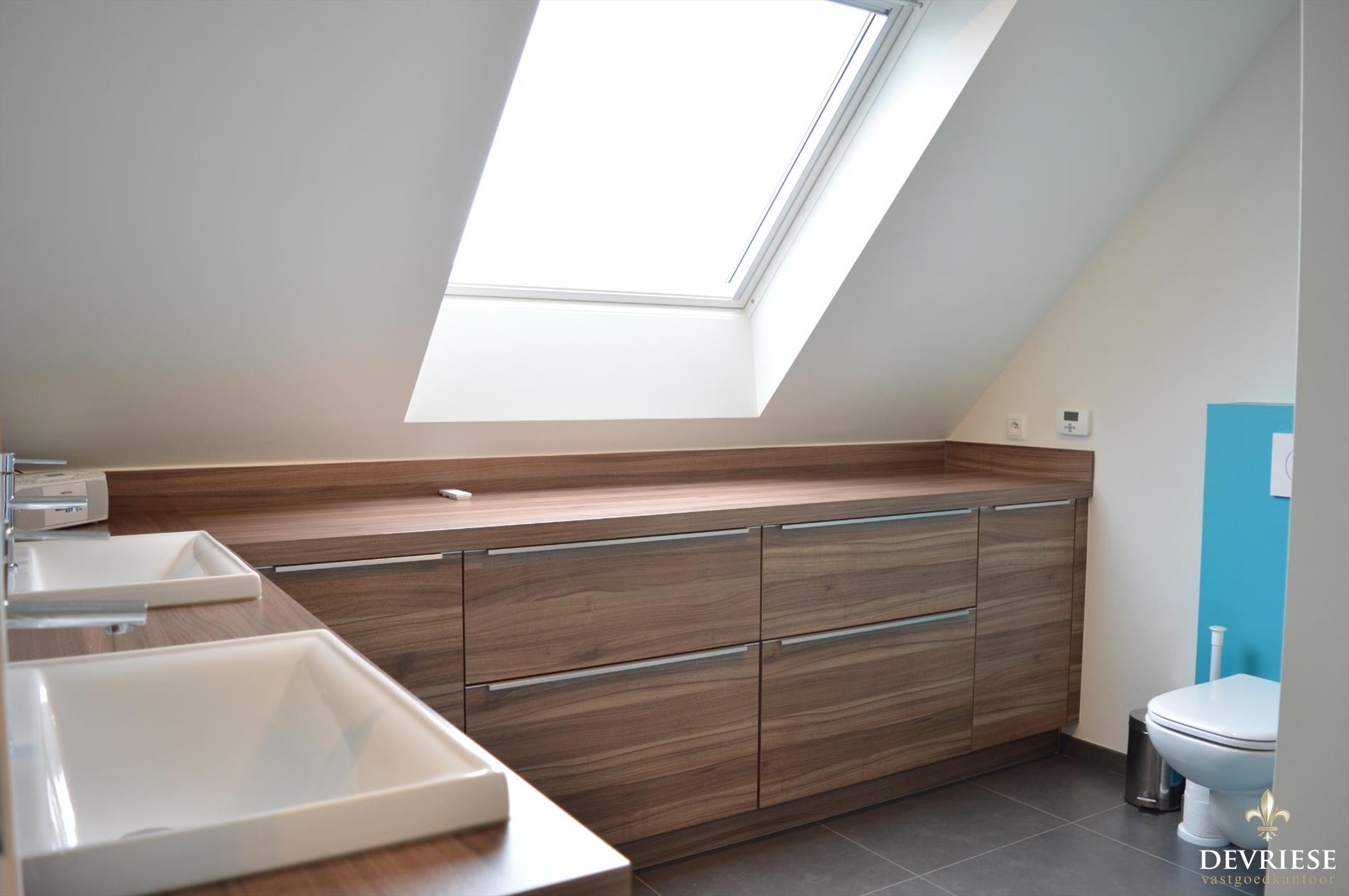 Op het verdiep zijn er 3 volwaardige slaapkamers, waarvan 1 met dressingruimte en de badkamer met een tweede toilet, douche en dubbel lavabo. Op het verdiep overal elektrische rolluiken. De zolder biedt extra bergruimte.