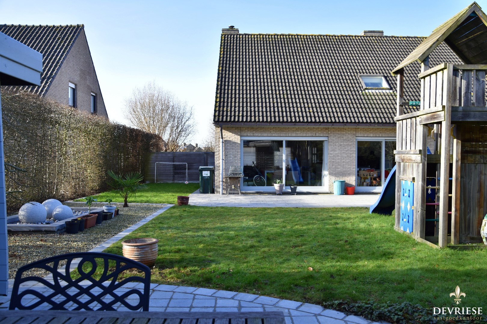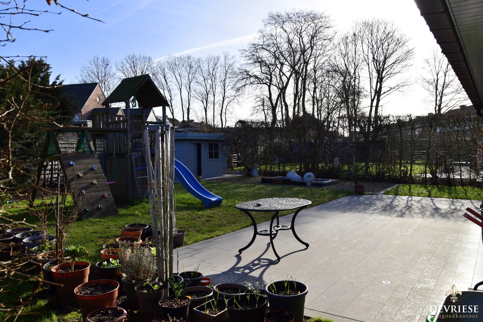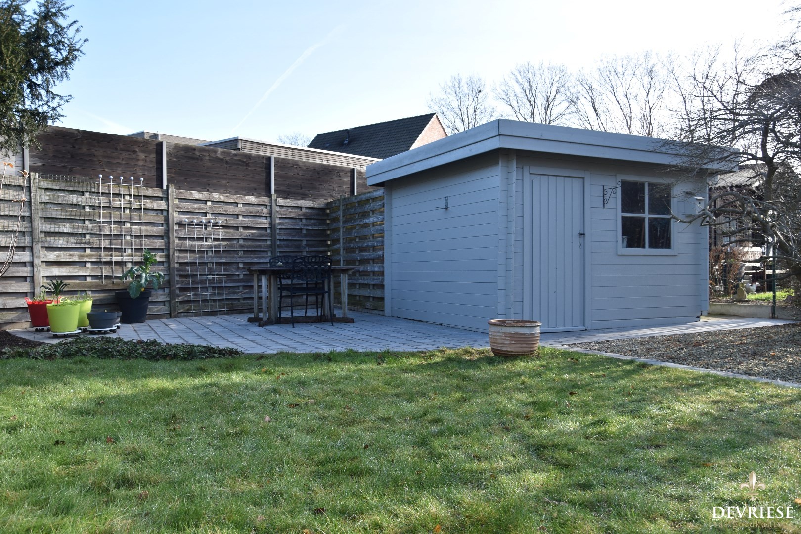 Aangelegd terras, tuinberging, goed onderhouden grasperk, ...