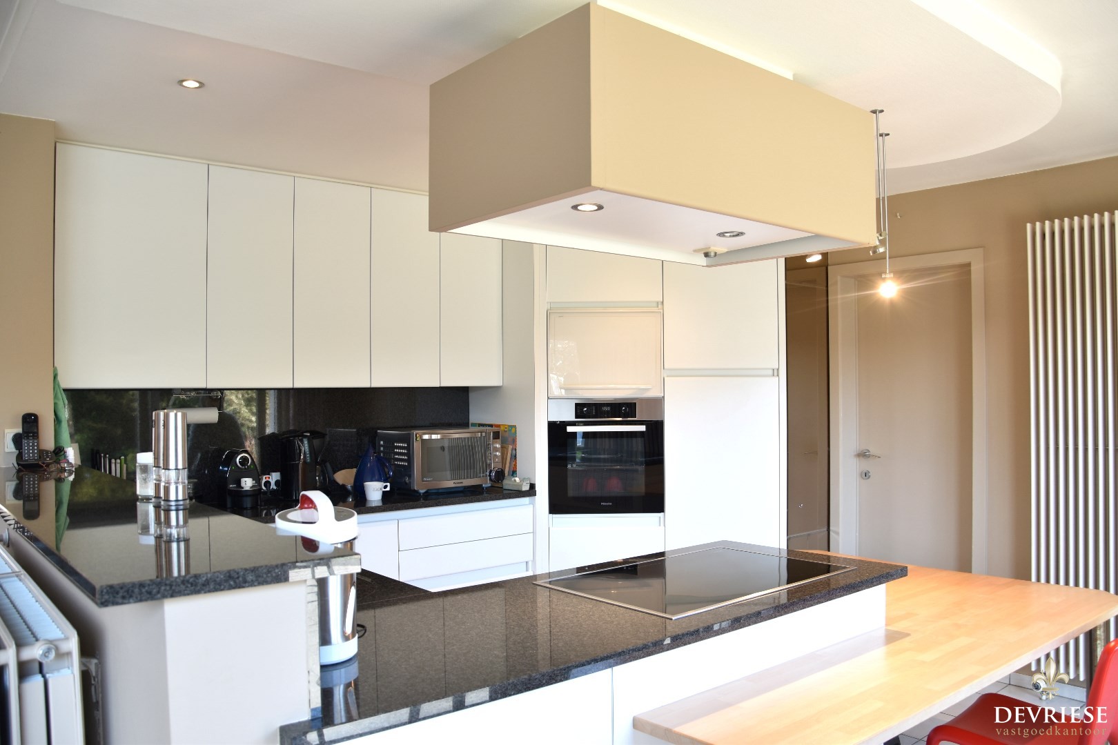 Geïnstalleerde keuken, zeer geriefelijk en kwalitatief (oa. toestellen Miele) uitgerust.