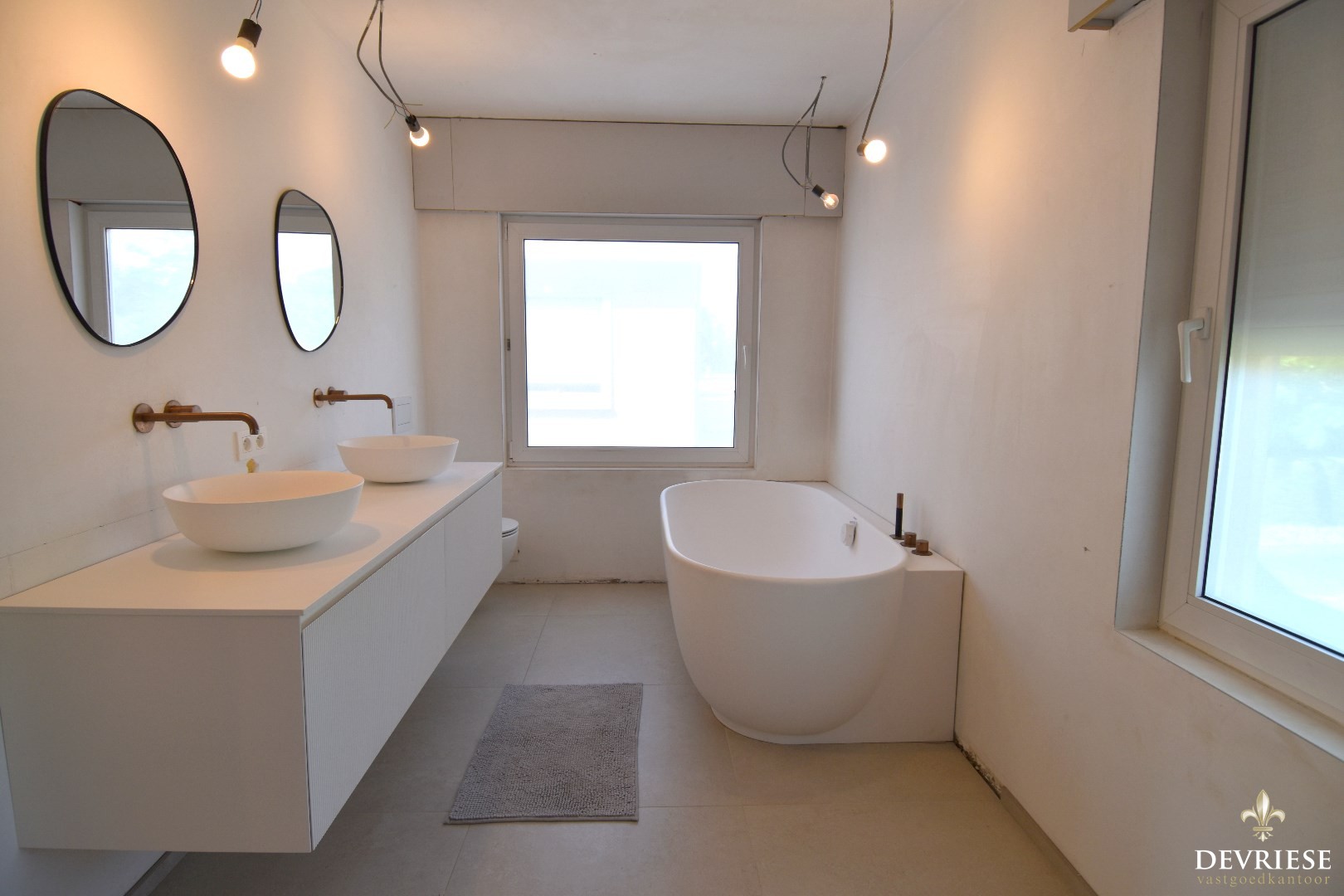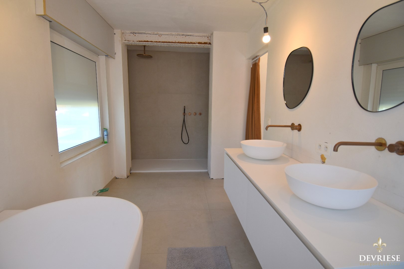 Op de eerste verdieping zijn er 3 volwaardige slaapkamers en een recent vernieuwde badkamer, uitgerust met een ligbad, inloopdouche en een stijlvol dubbel ... lavabomeubel.