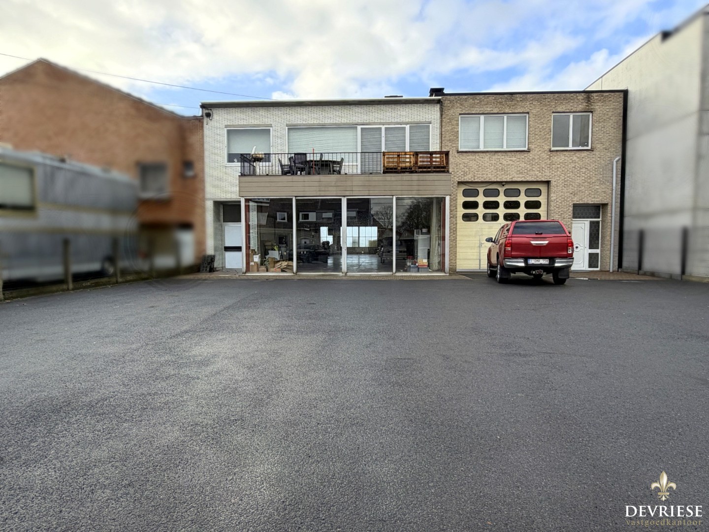 Dubbele opslagruimte (466 m²) met telkens een bovenliggend woongedeelte te koop in Kuurne