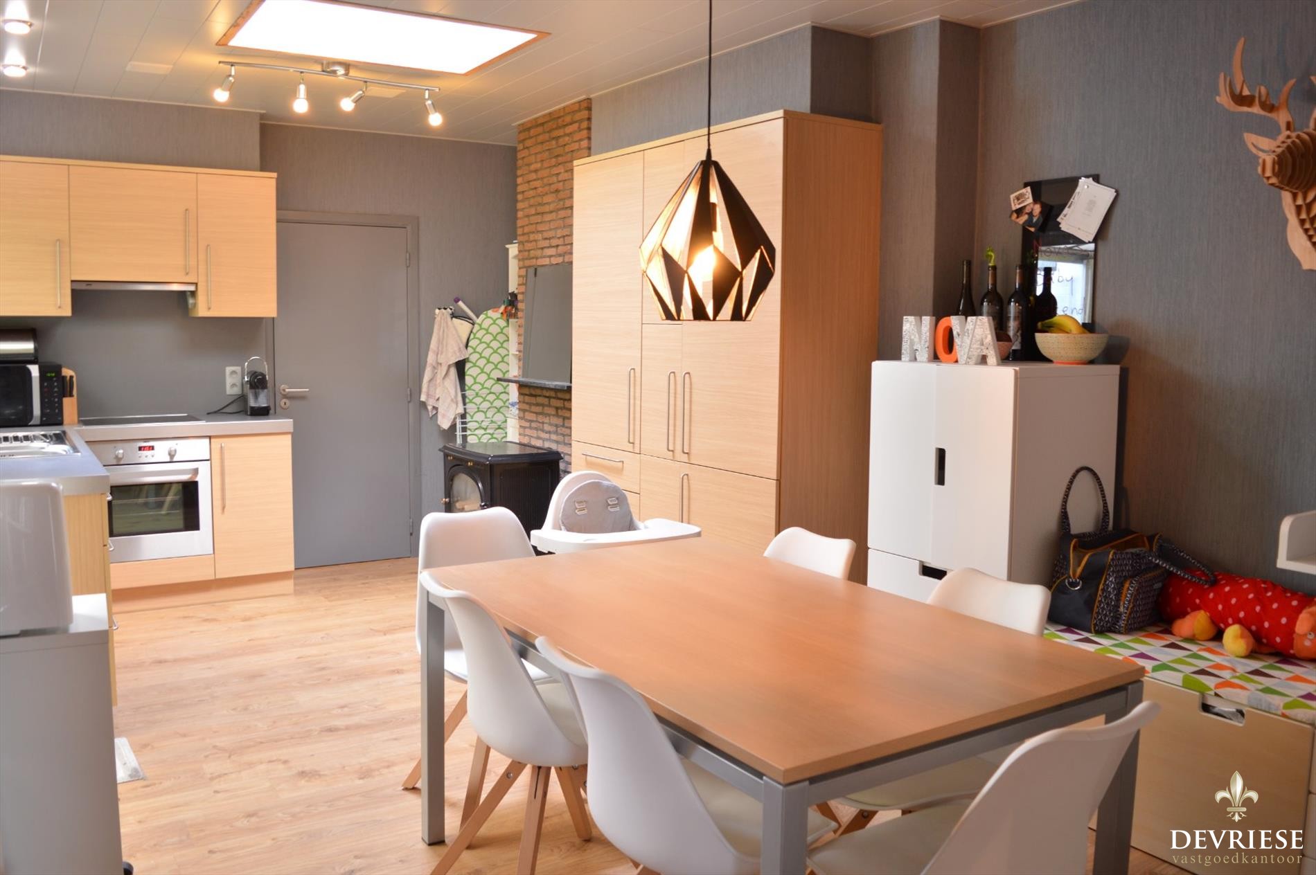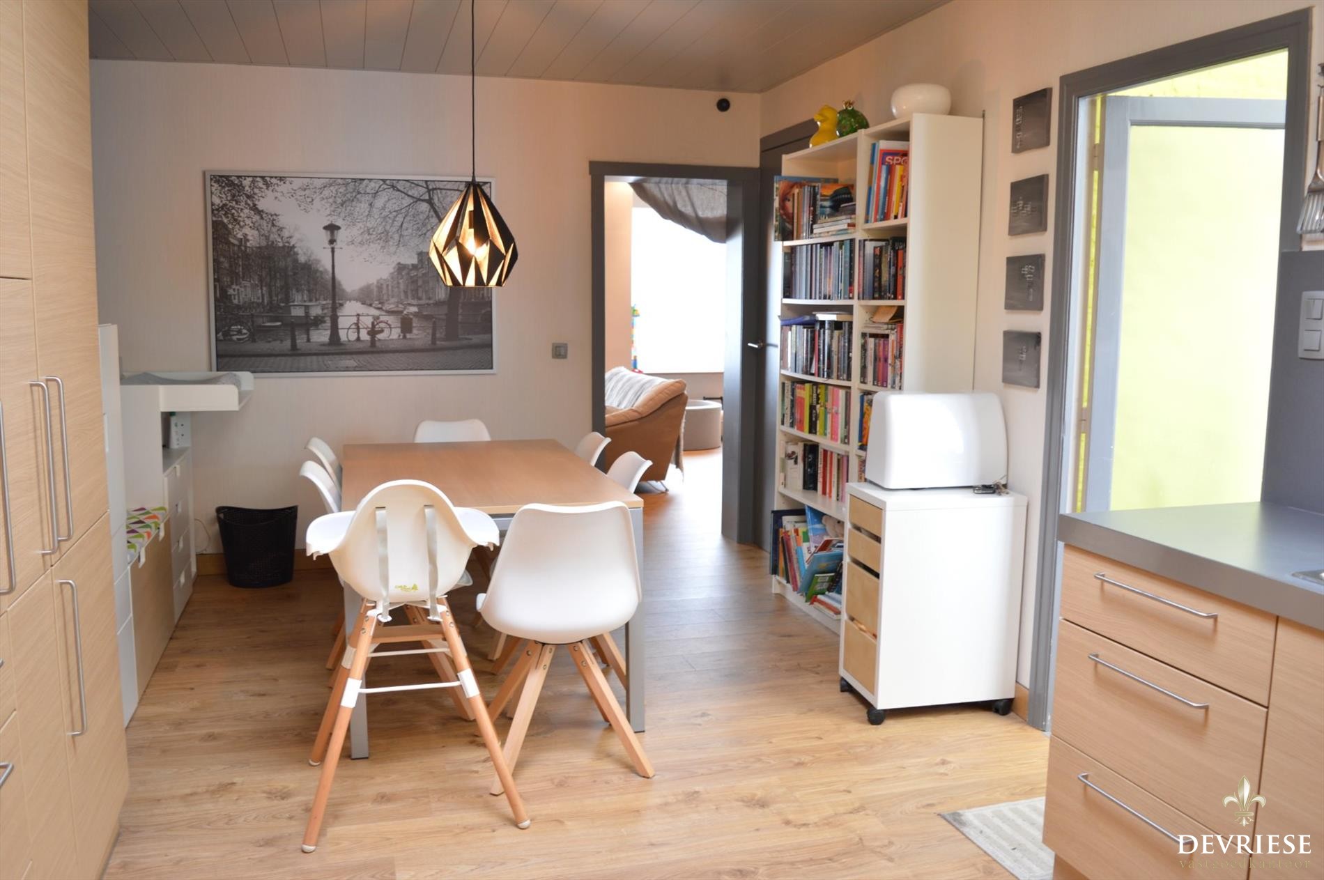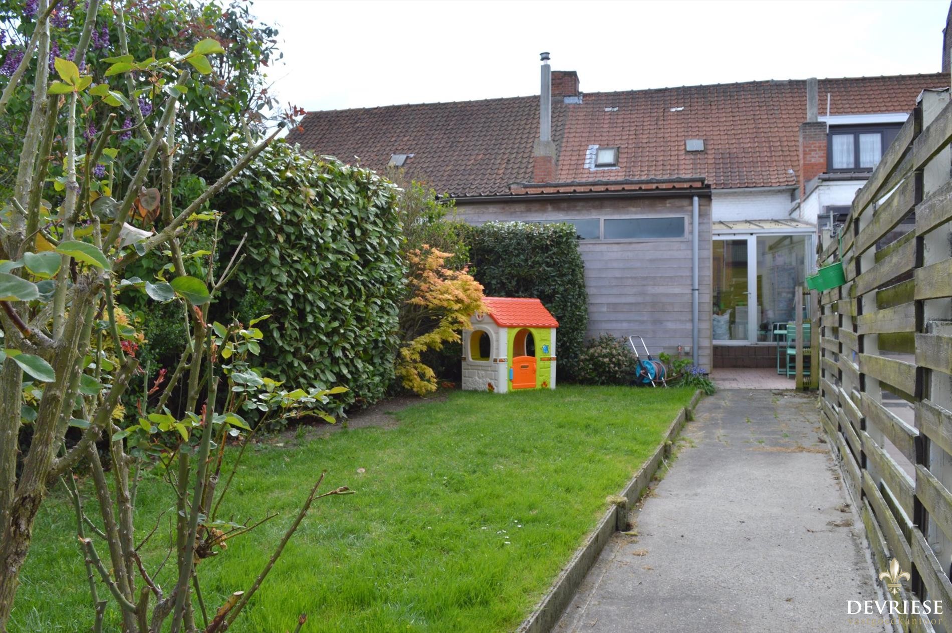 Vanuit de keuken is er toegang tot de veranda en van hieruit zicht op de leuke groene tuin met perfecte oriëntatie. Achteraan is er daarnenboven nog een uitweg en als kers op de taart de garage voor wagen en fietsen.