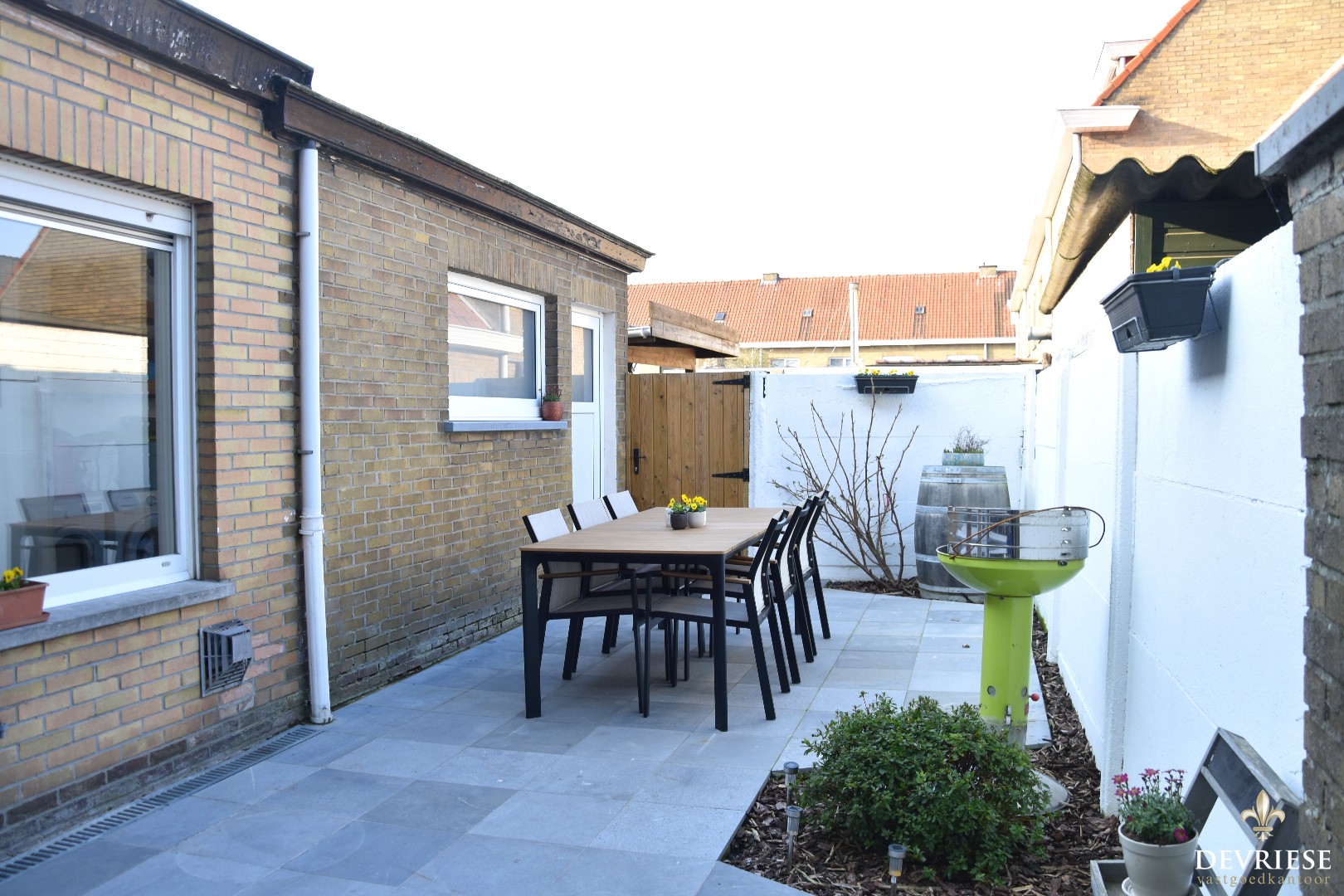 Vanuit zowel de leefruimte als de keuken geniet u héél wat lichtinval en vol zicht op de onderhoudsvriendelijke achtertuin.