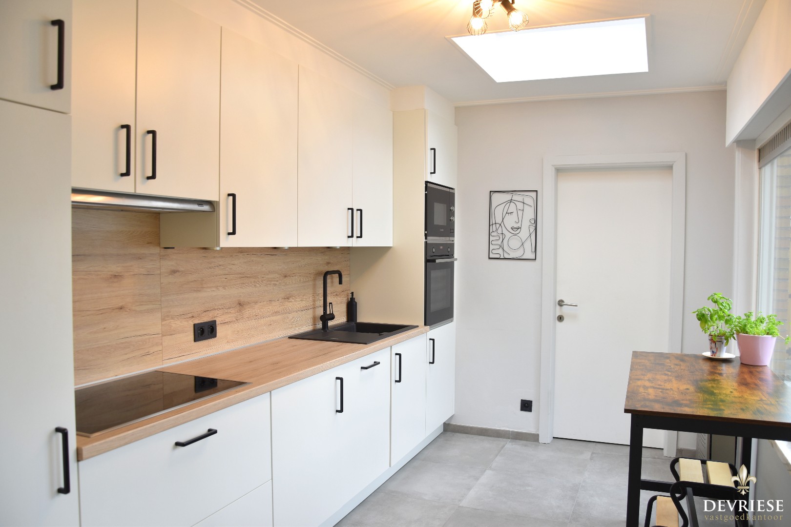 Aanliggend de recent vernieuwde en volledig ingerichte keuken met bijhorende ruime berging.