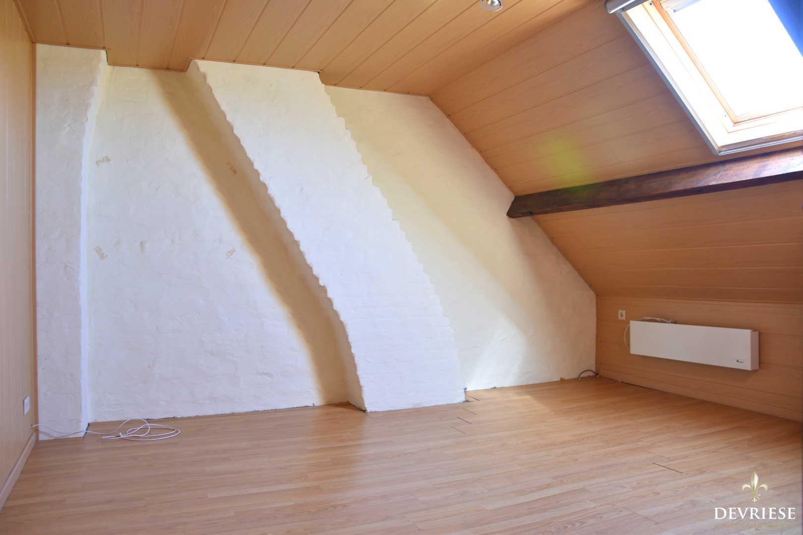 Op het de verdieping zijn er 2 volwaardige slaapkamers, de badkamer met bad/douche, lavabo en een tweede toilet. Daarnaast is er via de vaste trap toegang tot de zolder waar er een derde slaapkamer werd ingericht. Het dak werd reeds geïsoleerd.