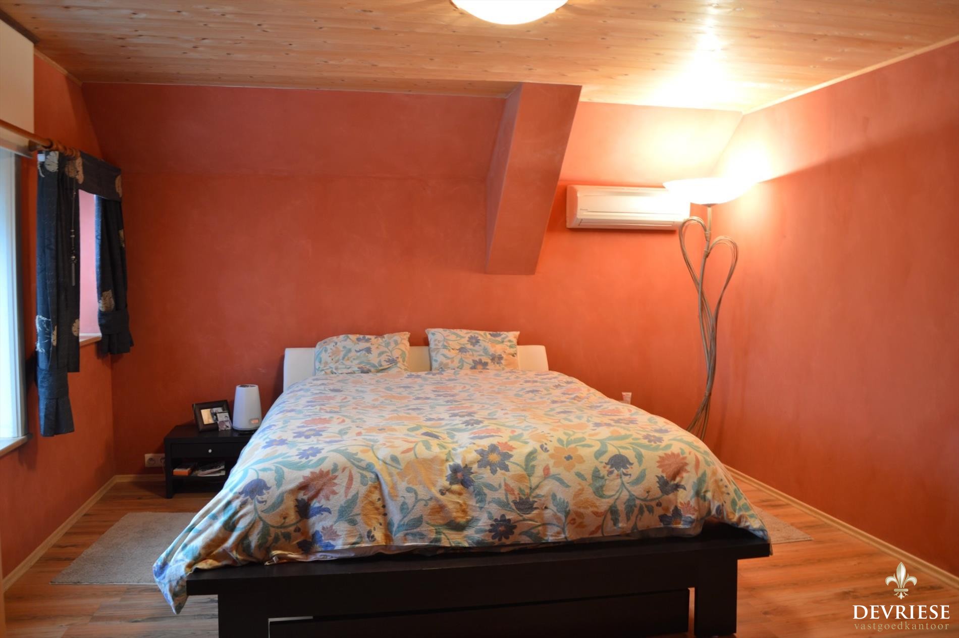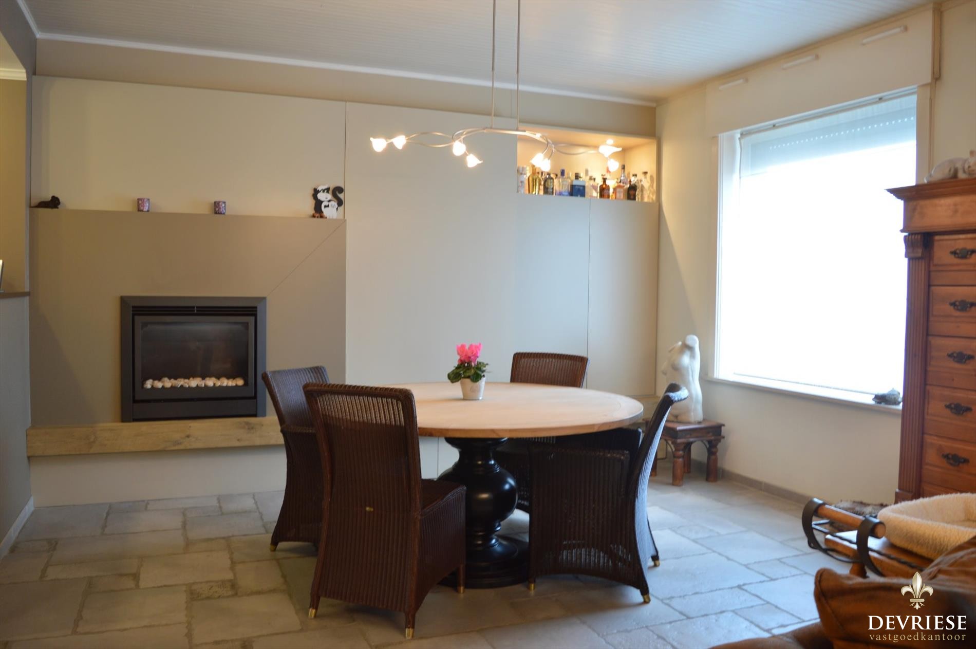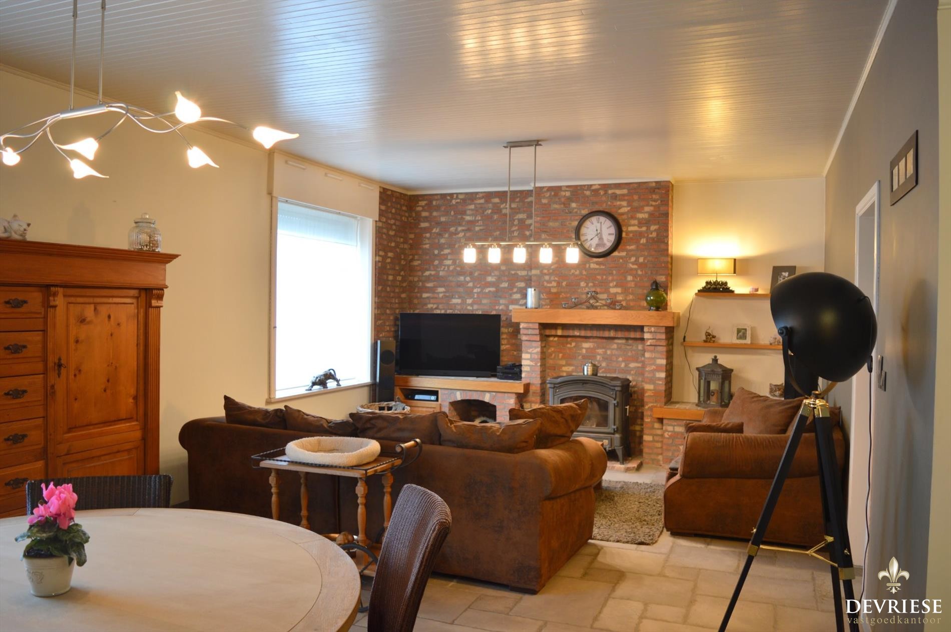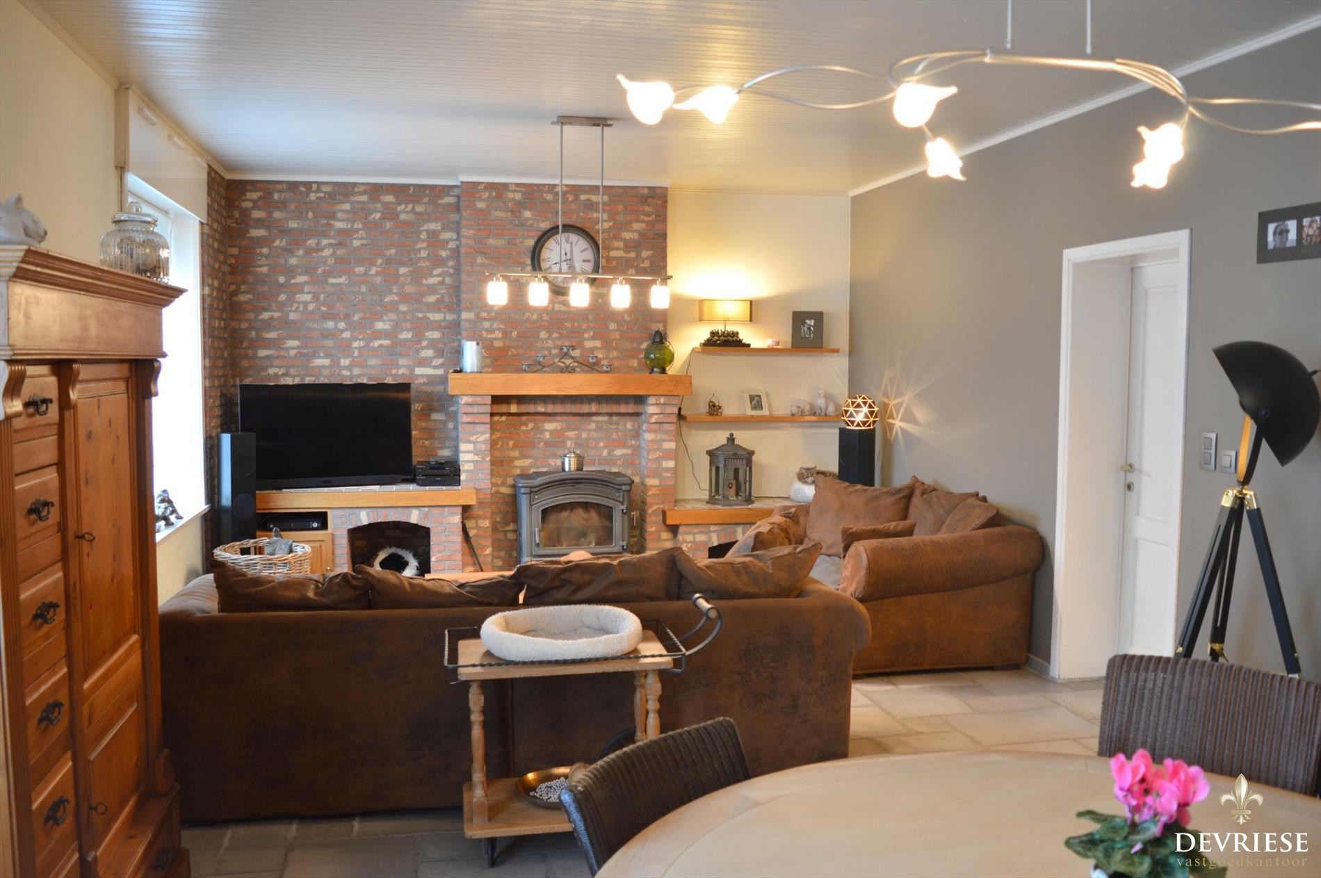 U komt binnen in de apart inkomhal met gastentoilet. Van hieruit is er toegang tot de gezellig ingerichte leefruimte met houtkachel en gaskachel. Daarnaast is er de open keuken die recent vernieuwd werd met een bijhorende bergruimte. Vanuit de keuken komt u in de veranda waar u vol zicht heeft op de tuin. Ook op het gelijkvloers is er de volledig vernieuwde badkamer, voorzien van inloopdouche, dubbele lavabo, een tweede toilet en een ligbad.