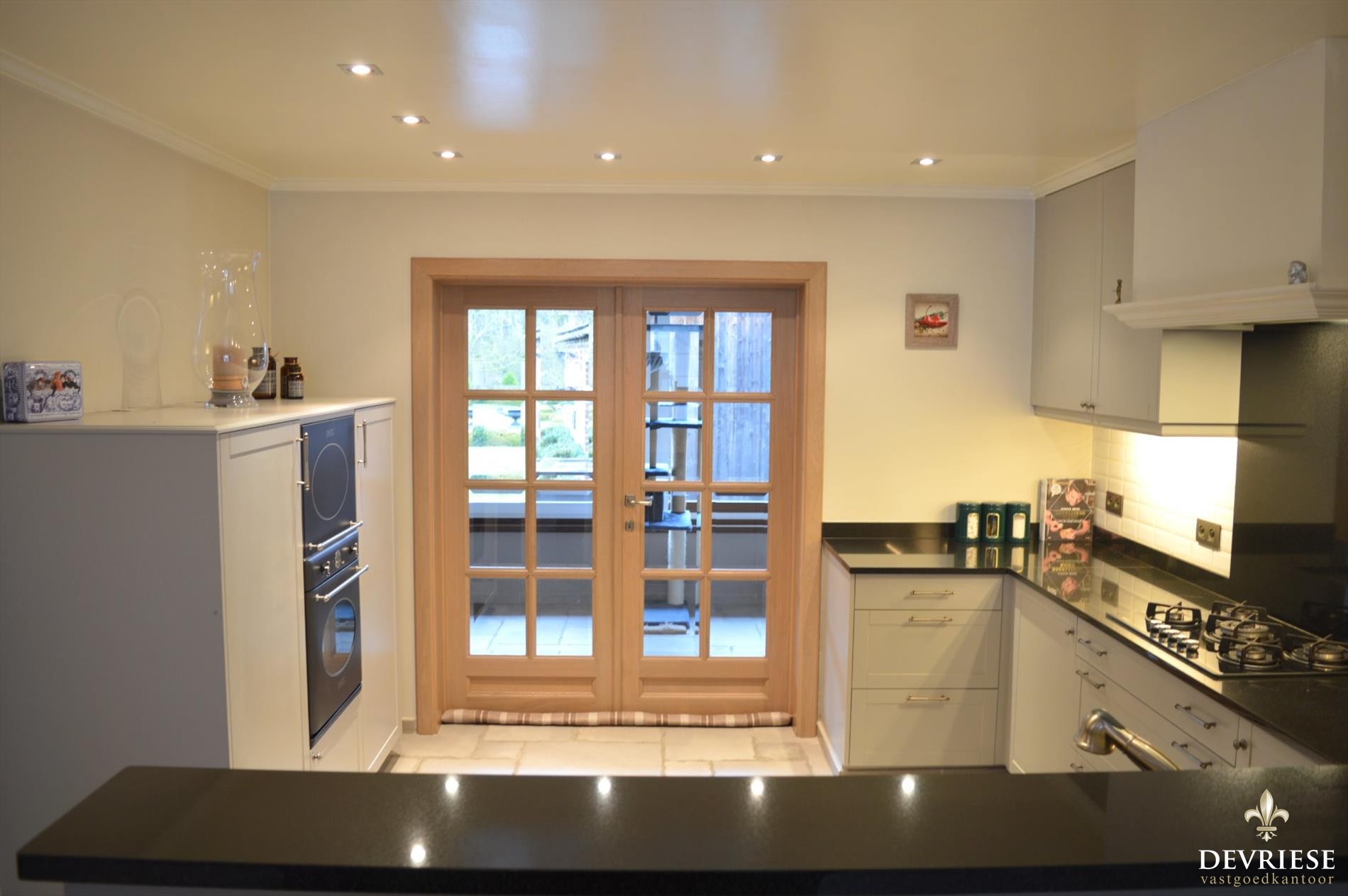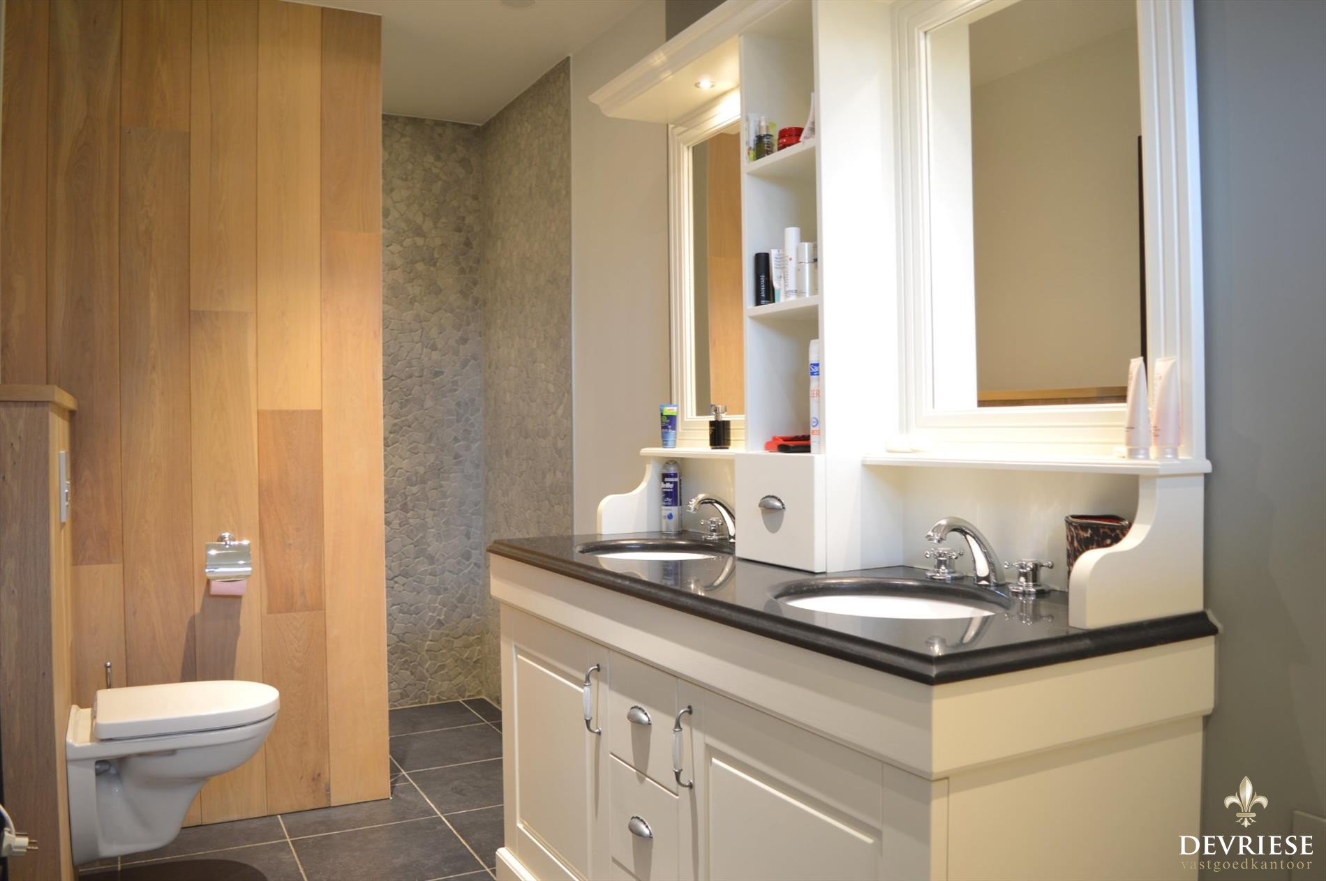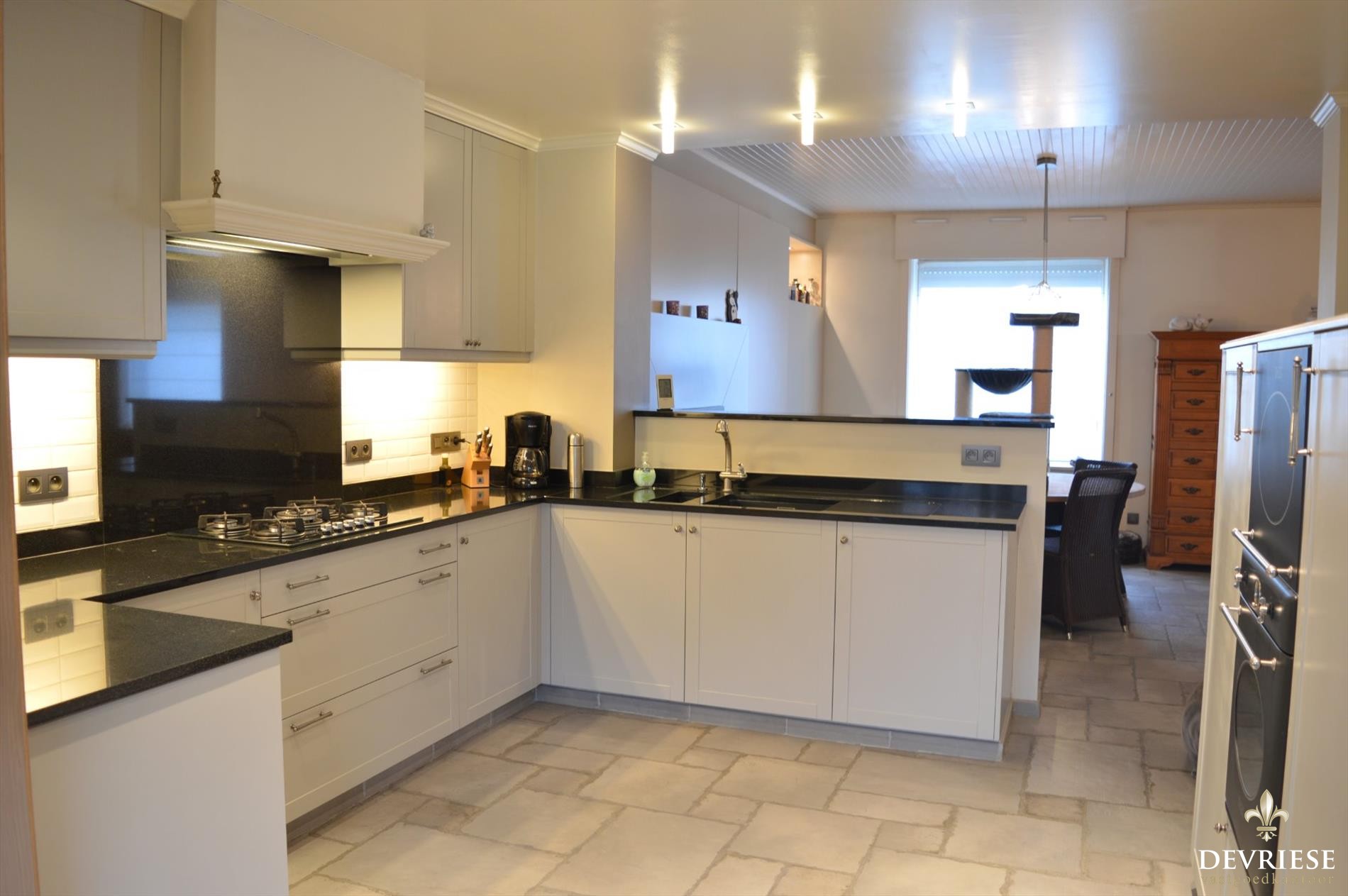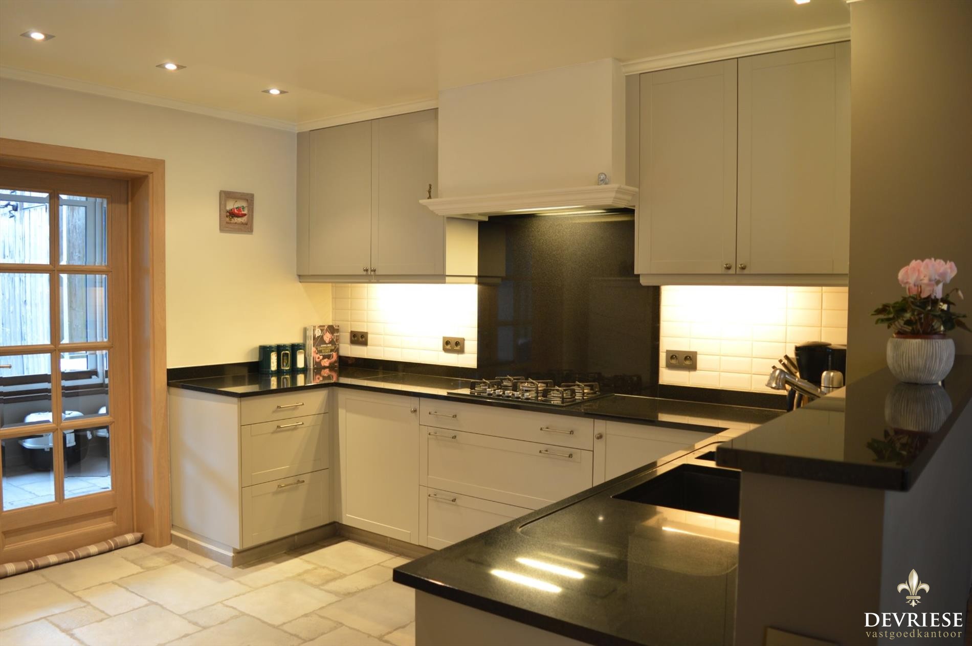 U komt binnen in de apart inkomhal met gastentoilet. Van hieruit is er toegang tot de gezellig ingerichte leefruimte met houtkachel en gaskachel. Daarnaast is er de open keuken die recent vernieuwd werd met een bijhorende bergruimte. Vanuit de keuken komt u in de veranda waar u vol zicht heeft op de tuin. Ook op het gelijkvloers is er de volledig vernieuwde badkamer, voorzien van inloopdouche, dubbele lavabo, een tweede toilet en een ligbad.