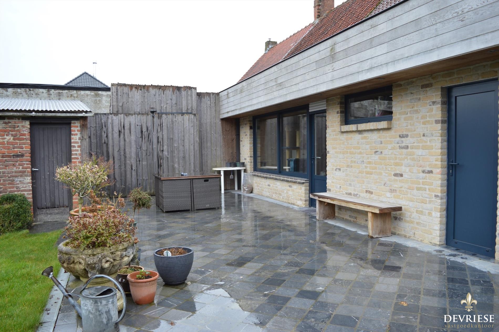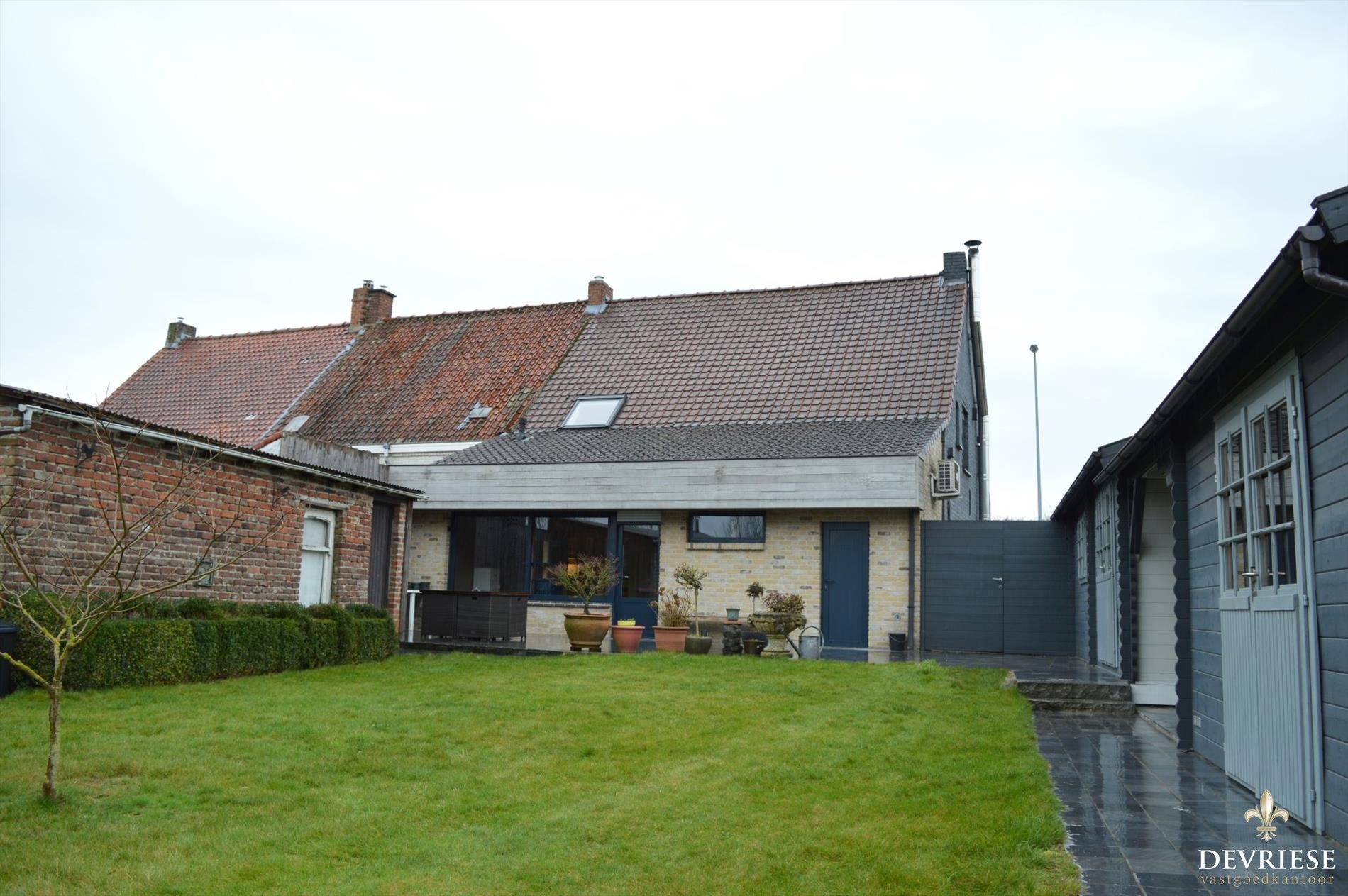 Heel wat parkeergelegenheid bij de woning door de garage met ... bijhorende ruime oprit. Achter de garage is er nog een recent vernieuwd tuinhuis. Achteraan de tuin is er een uitweg voorzien.