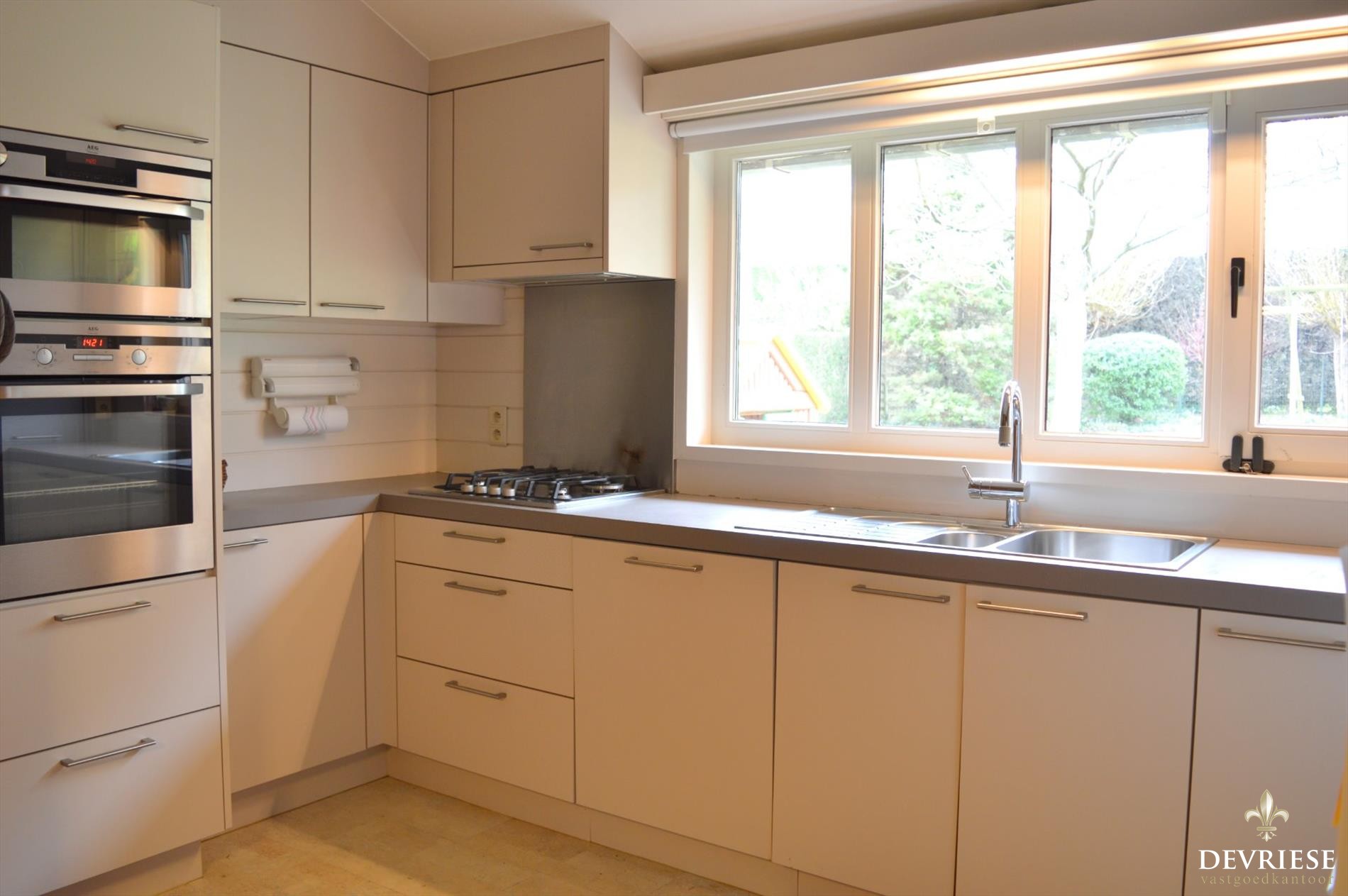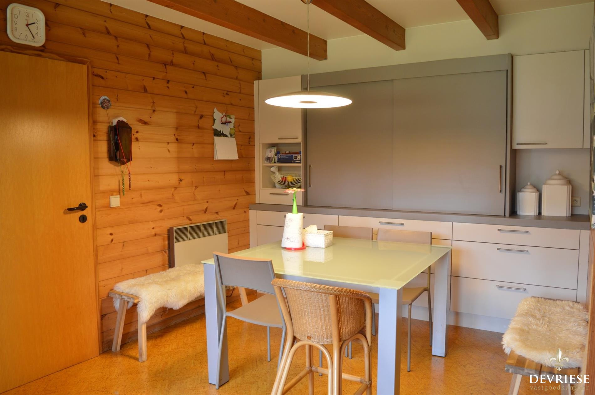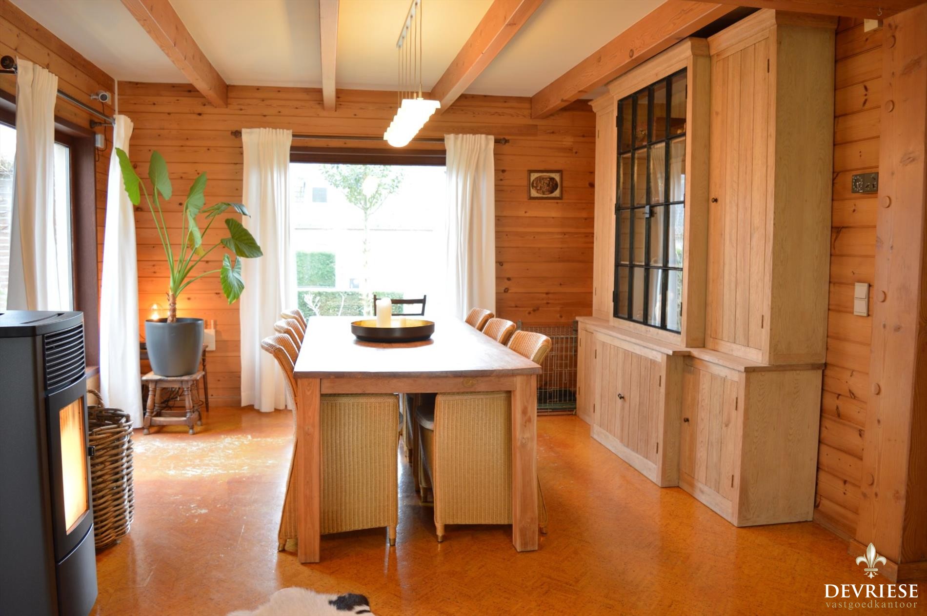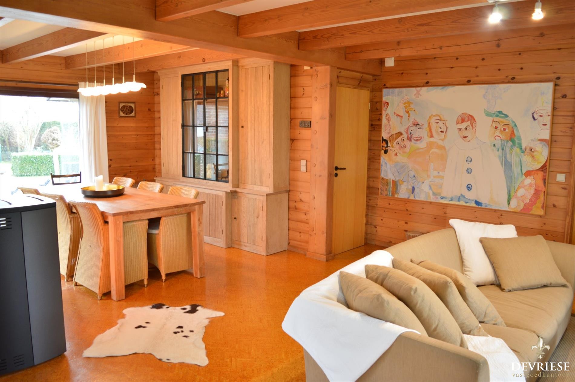 Vanuit de Inkomhal met apart gastentoilet komt u in de ruime leefruimte met mooi zicht op de tuin en het groen rondom en bovenal een schitterende lichtinval doorheen de dag. Aansluitend bij de leefruimte is er de aantrekkelijke uitbouw die voorziet in extra ruimte, ideaal als open bureau of speelruimte voor de kinderen. De aanwezigheid van de pelletkachel geeft gezelligheid en aangename warmte. De moderne ingerichte keuken werd recent vernieuwd en heeft vol zicht op de tuin, met aansluitend een handige berging.