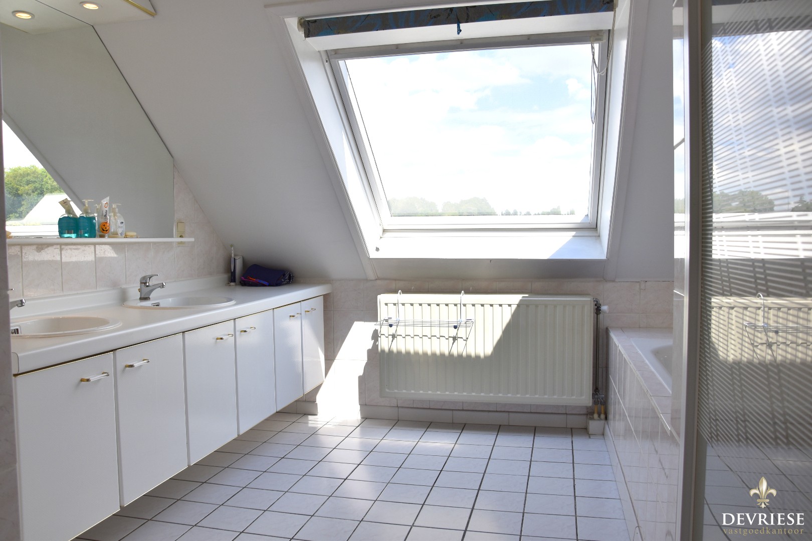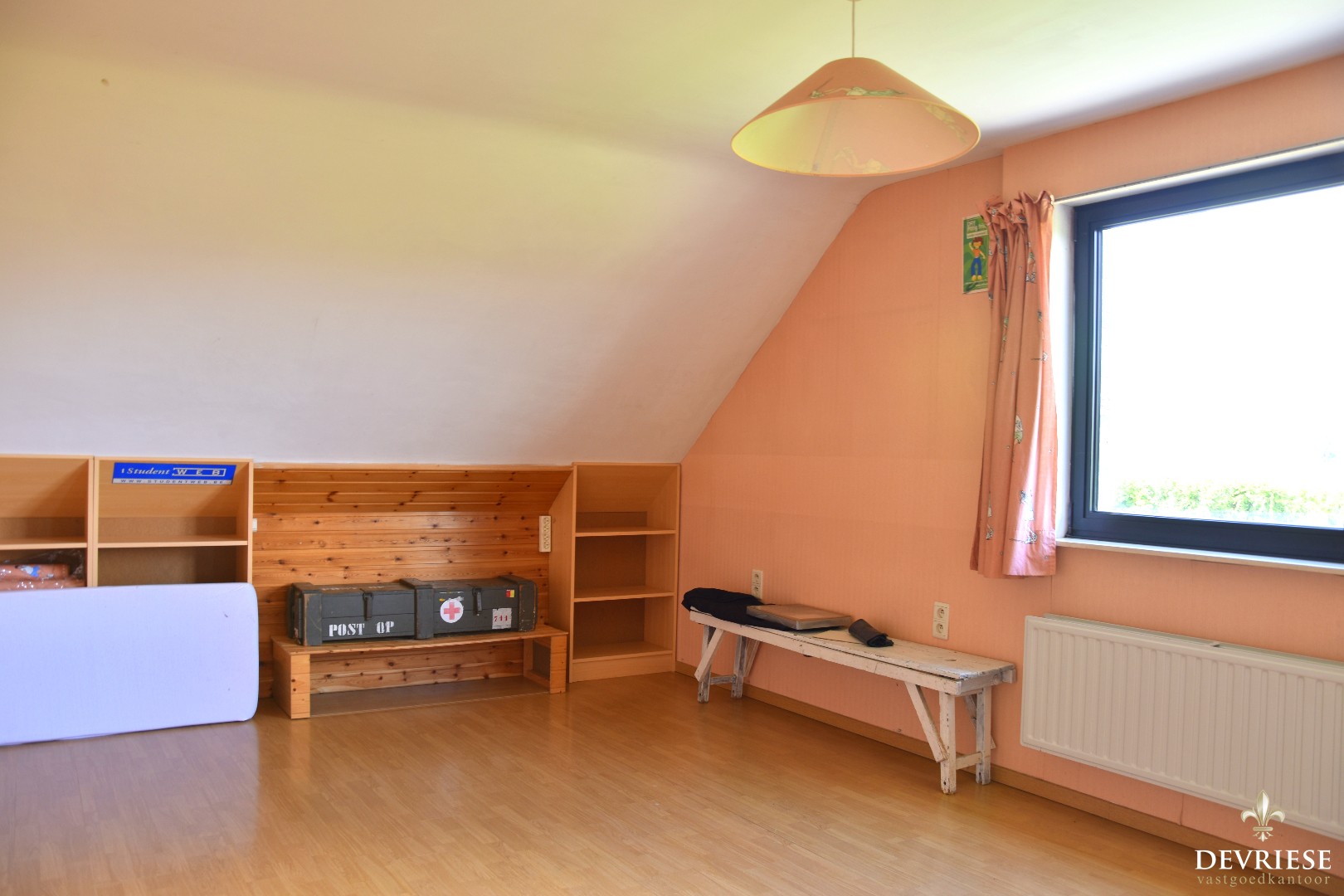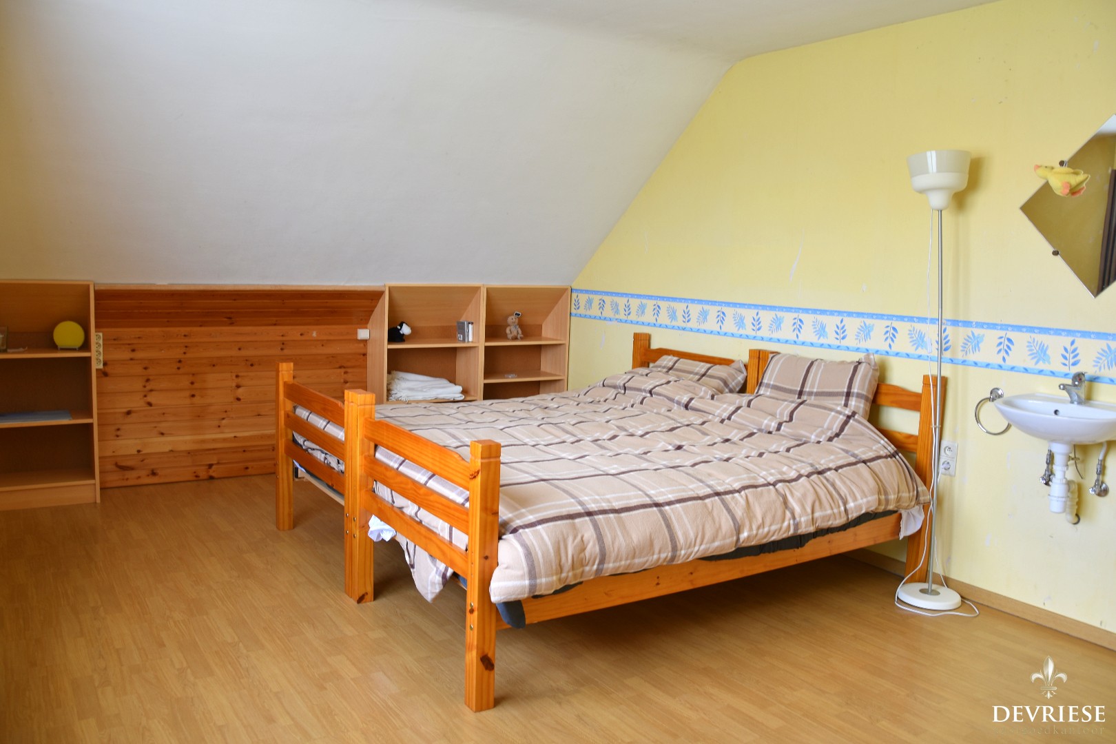 Op de eerste etage zijn er 4 zeer grote slaapkamers en de badkamer met dubbele lavabo, bad én douche. Via de grote overloop komt u met de schuiftrap in de enorme zolder die uiteraard nog kan worden ingenomen als extra kamer ... of hobbyruimte.