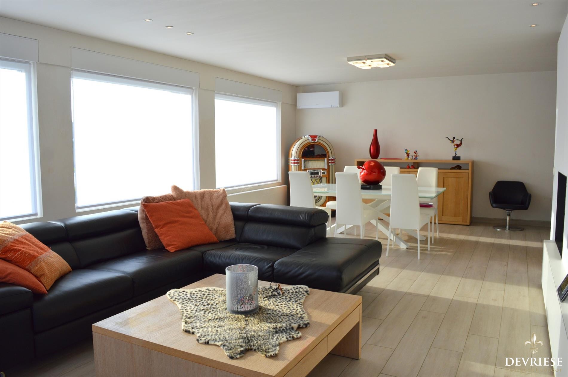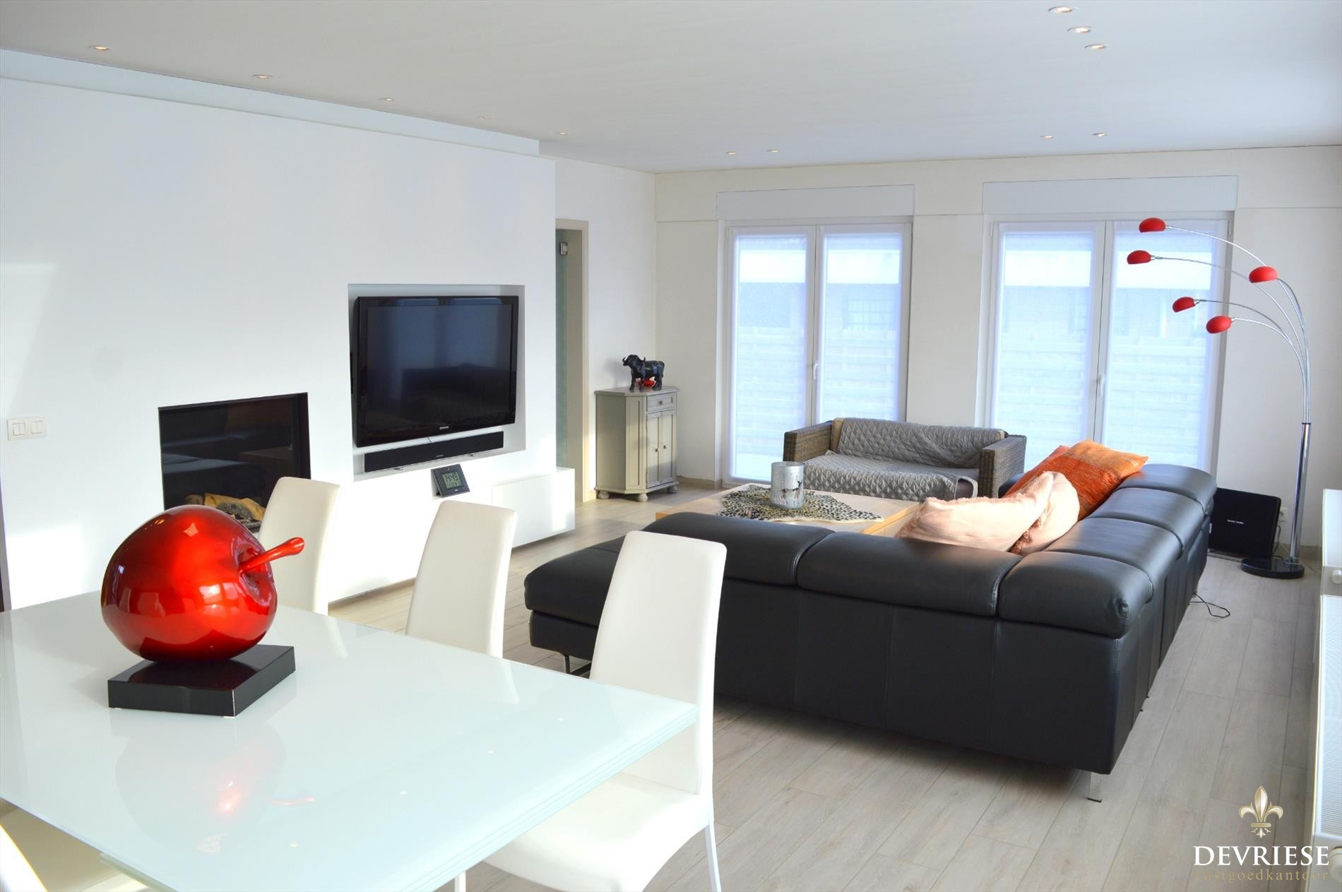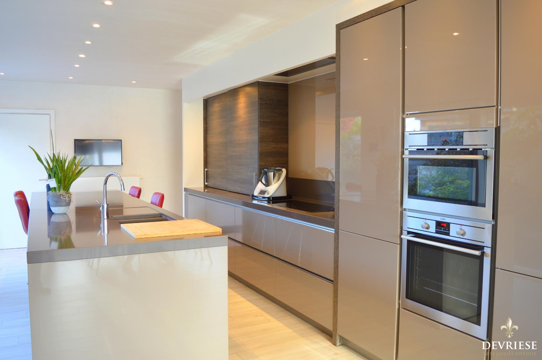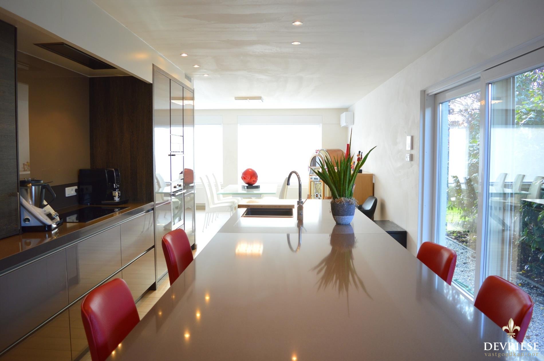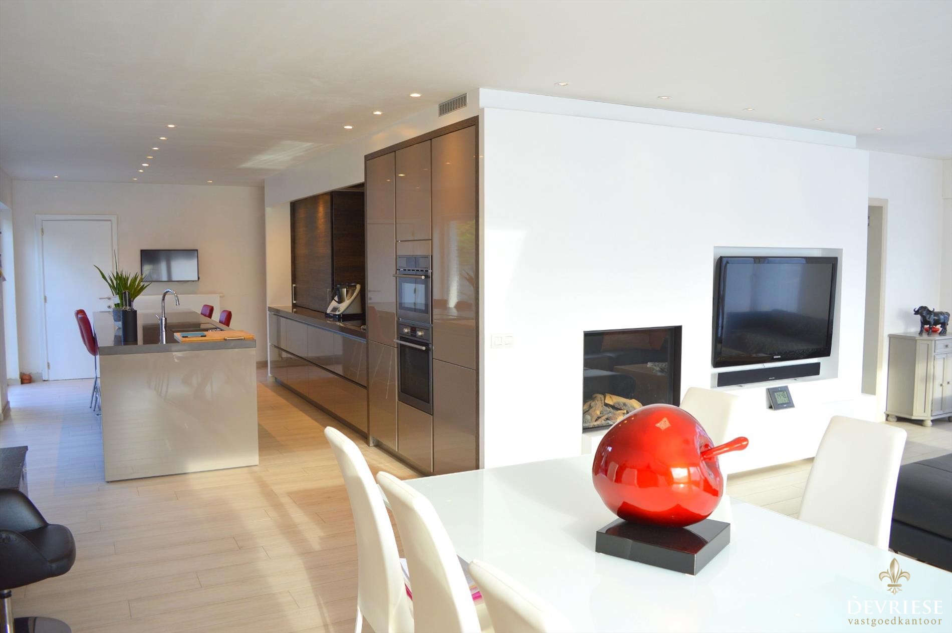 De woning is voorzien van een grote woonkamer met een enorme lichtinval en zon van 's morgens tot 's avonds. Aansluitend de schitterende open leefkeuken en de eyecatcher van het leefgedeelte. Tegen de keuken is er bovendien nog een handige voorraadruimte ter beschikking.