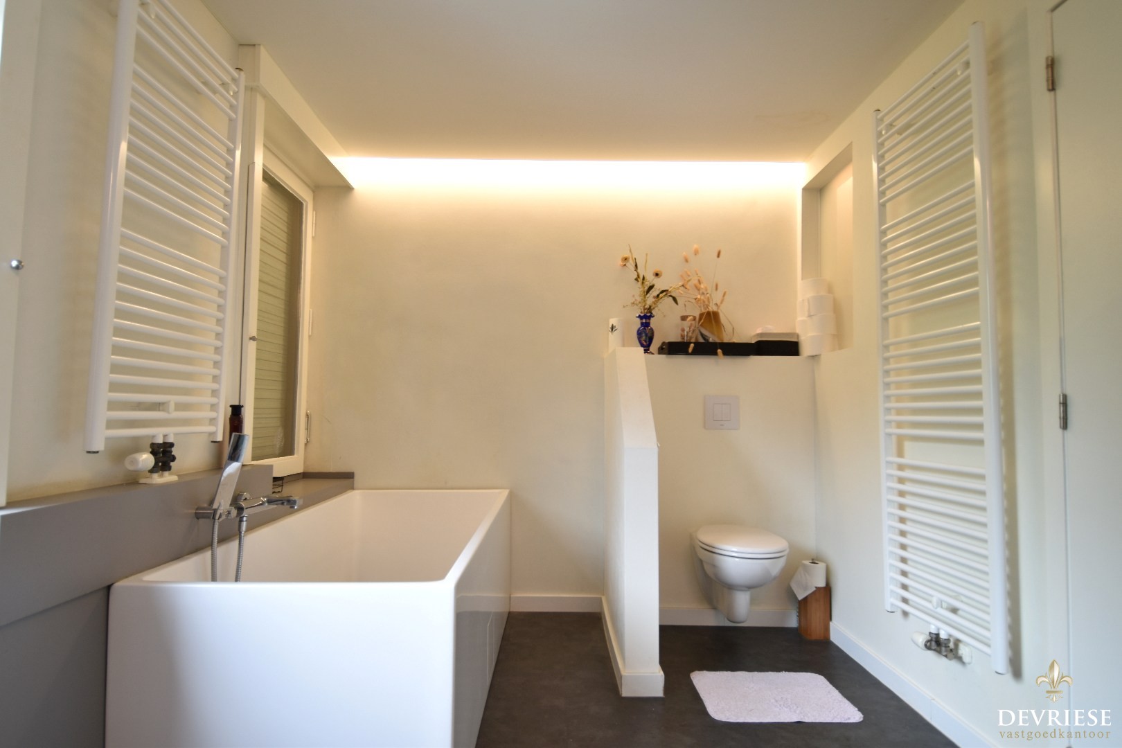 De badkamer is voorzien van een inloopdouche, ligbad en een tweede toilet.