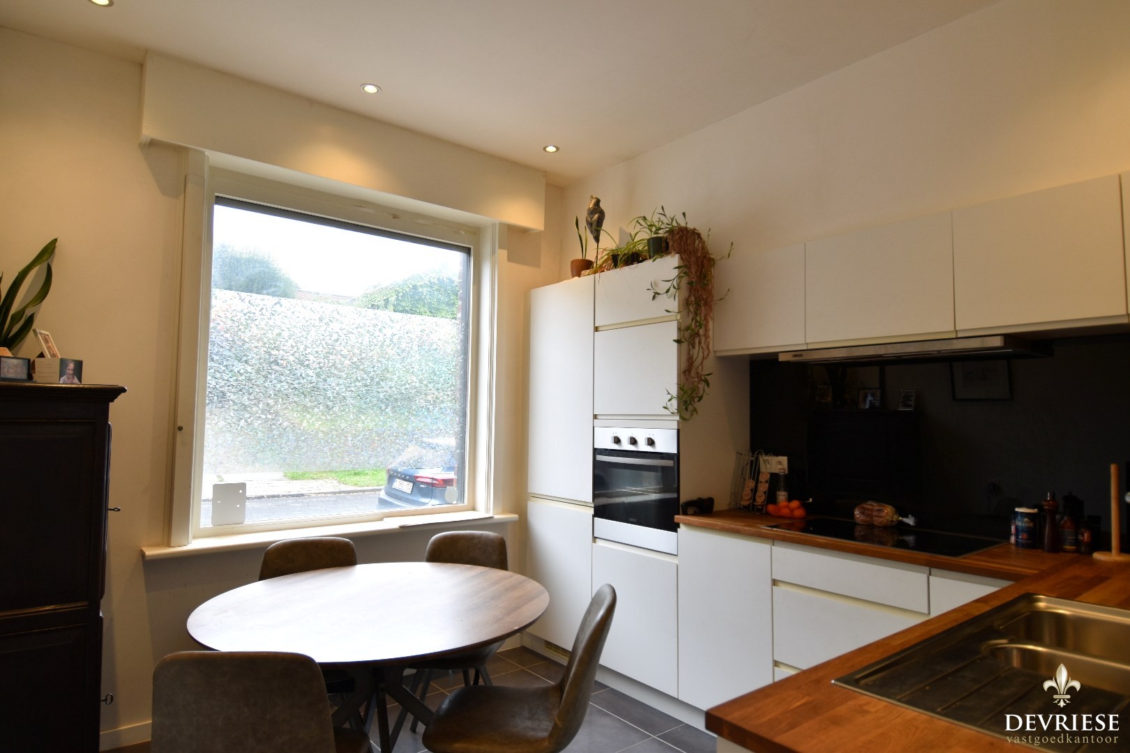 Aparte inkomhal die leidt naar de lichtrijke leefruimte met doorgang naar de geïnstalleerde keuken inclusief ontbijthoek. Op het gelijkvloers vindt je ook een apart toilet.