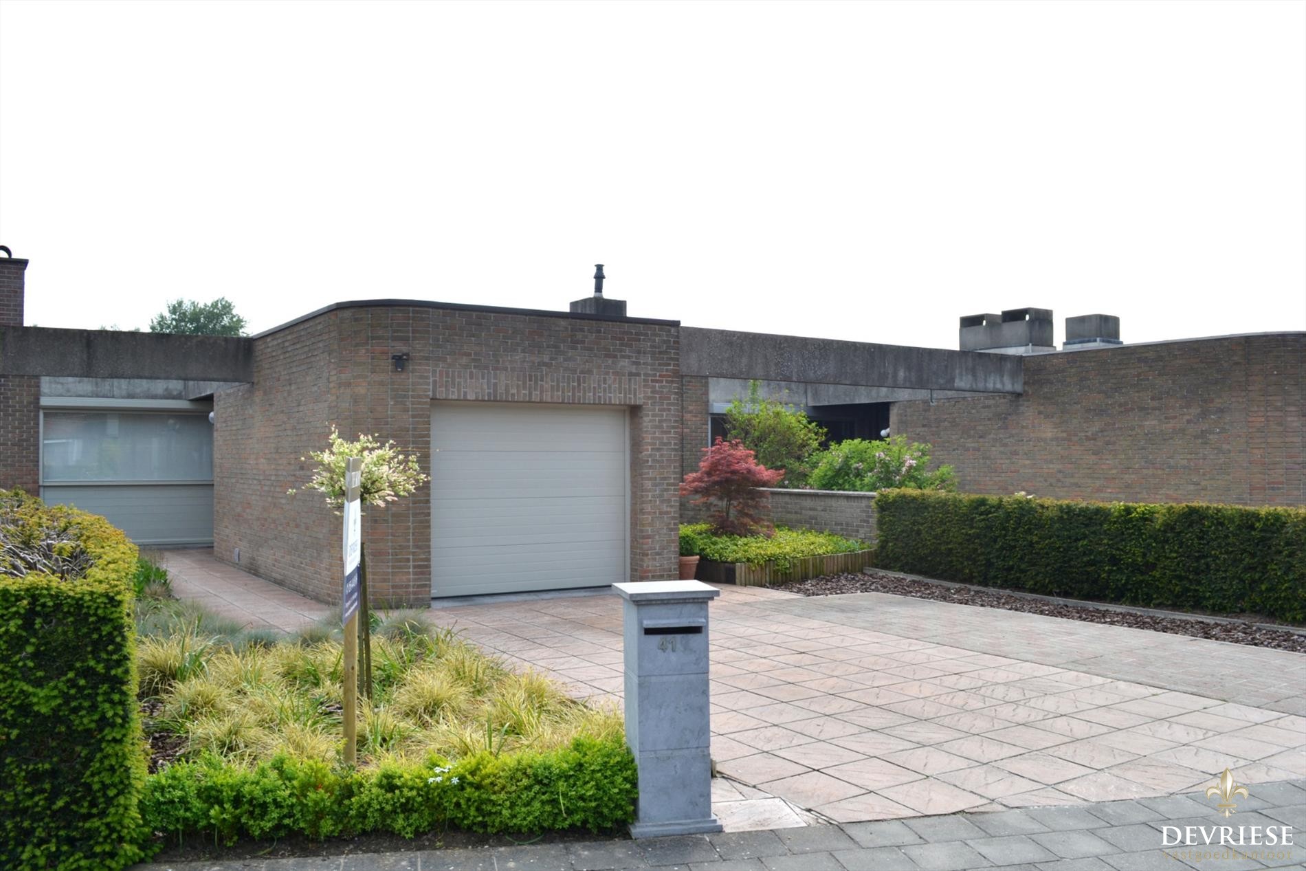 Vooraan de woning beschikt de woning over een garage met elektrische poort en oprit met extra parkeerruimte.