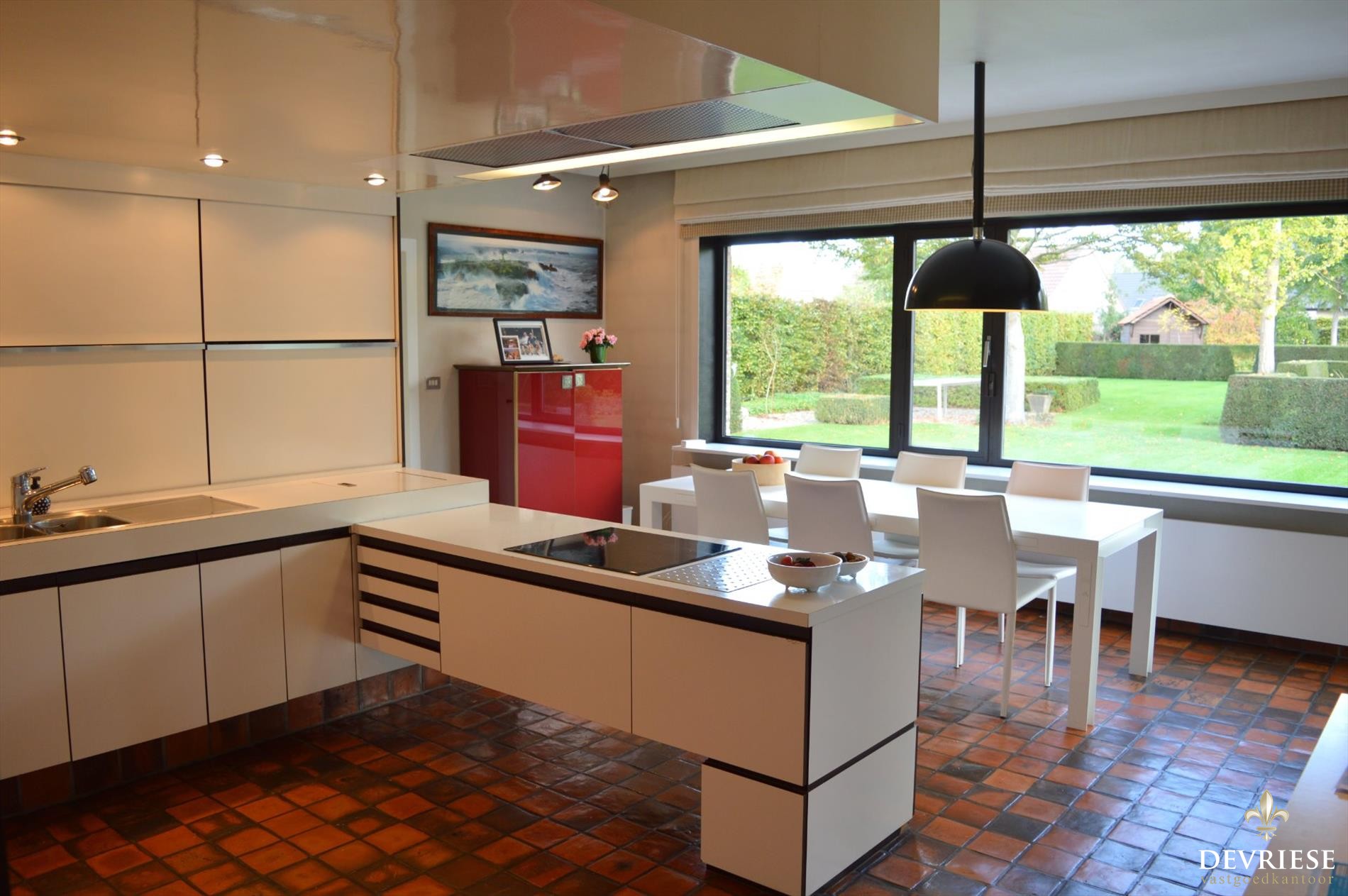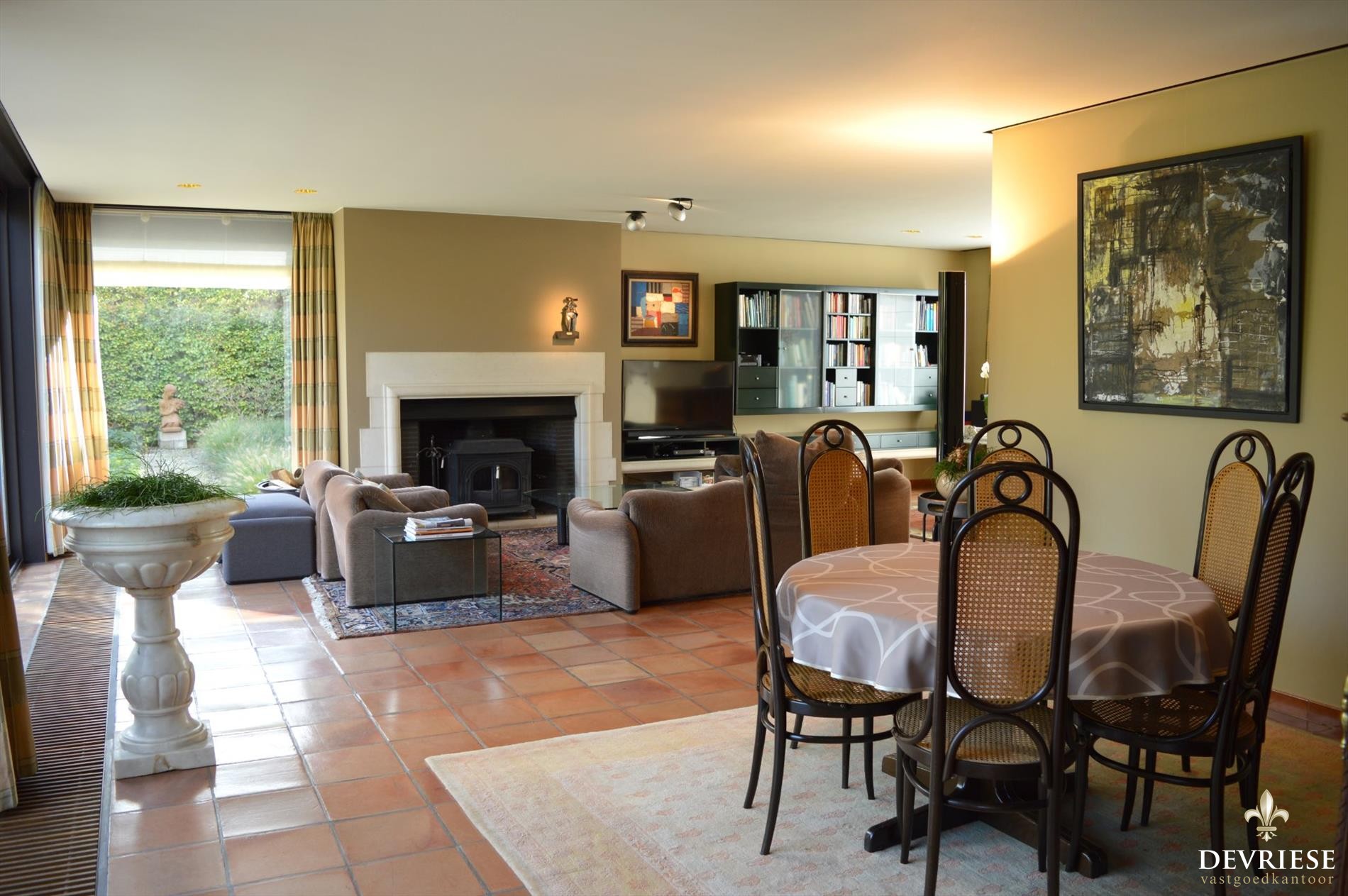 Binnenkomen via de fraaie inkomhal met rechtstreekse toegang tot de keuken en het leefgedeelte. De ruime leefruimte geniet een vol zicht op de prachtig aangelegde tuin naar de achterkant van de woning toe. In de zomer enorm veel lichtinval en zon maar ook in de winter zeer uitnodigend boordevol gezelligheid en de knusse verhoogde 'leeshoek'. Ook de praktisch ingerichte leef-keuken met aansluitend de ruime eetruimte en het zicht op de tuin zal zeker bekoren.