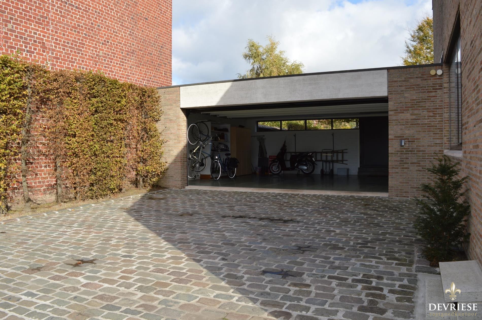 Daarnaast een ruime dubbele garage die heel wat bergruimte geniet alsook een parktische wasplaats. Voor de garage een ruime oprit die nog in heel wat extra parkeergelenheid voorziet. De woning is daarenboven volledig ... onderkelderd.
