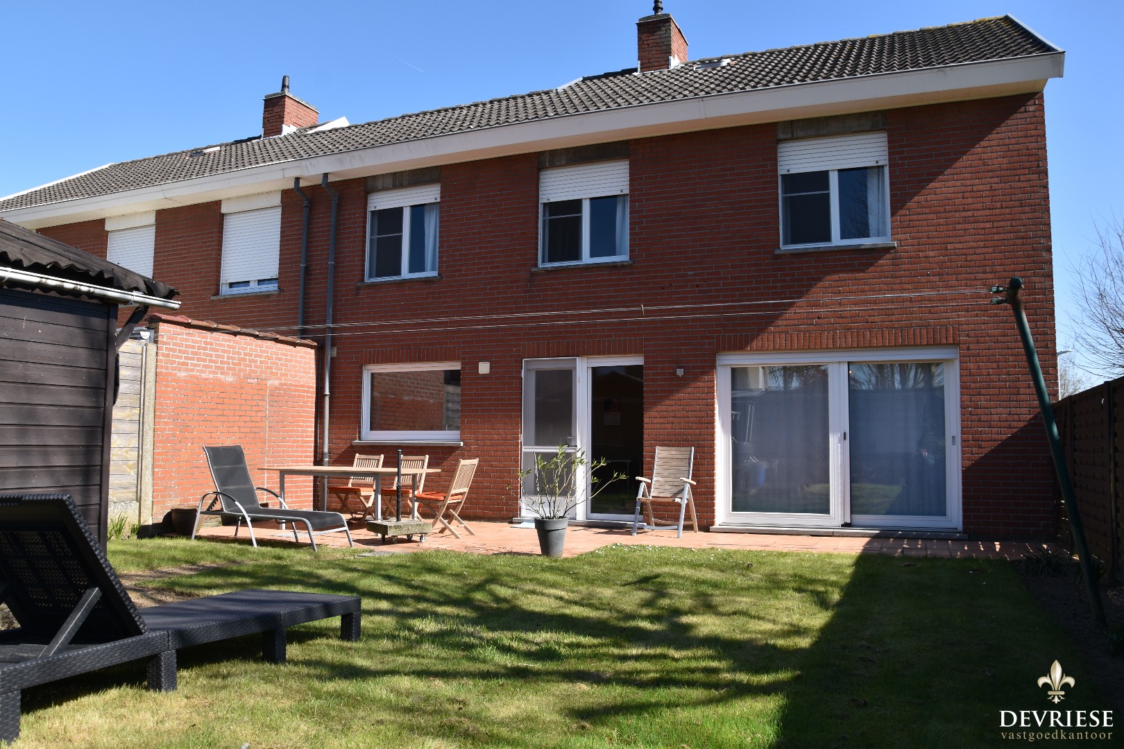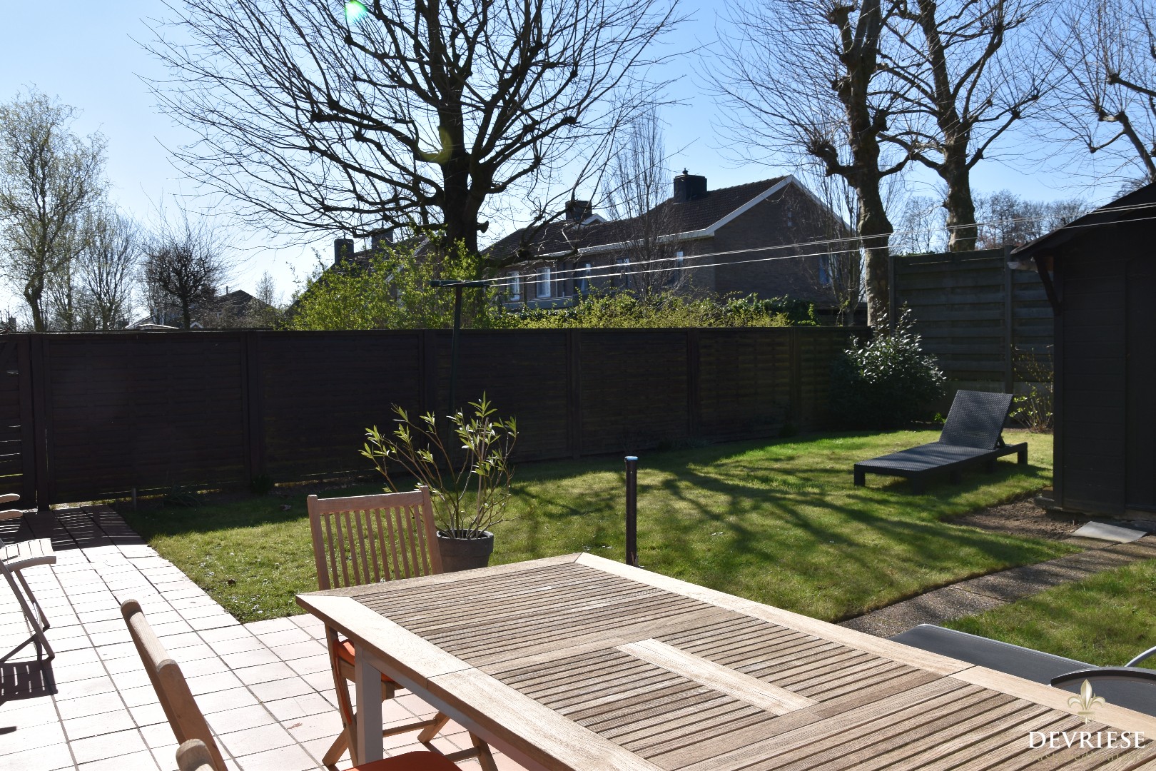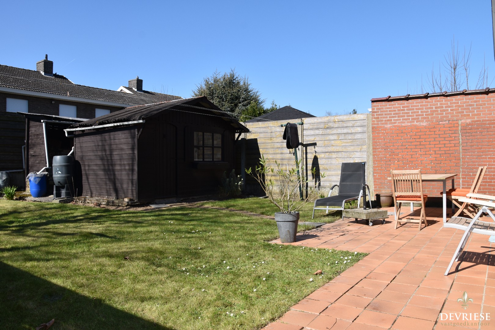 Zonnige tuin mét terras, vlotjes toegankelijk via de straatkant.