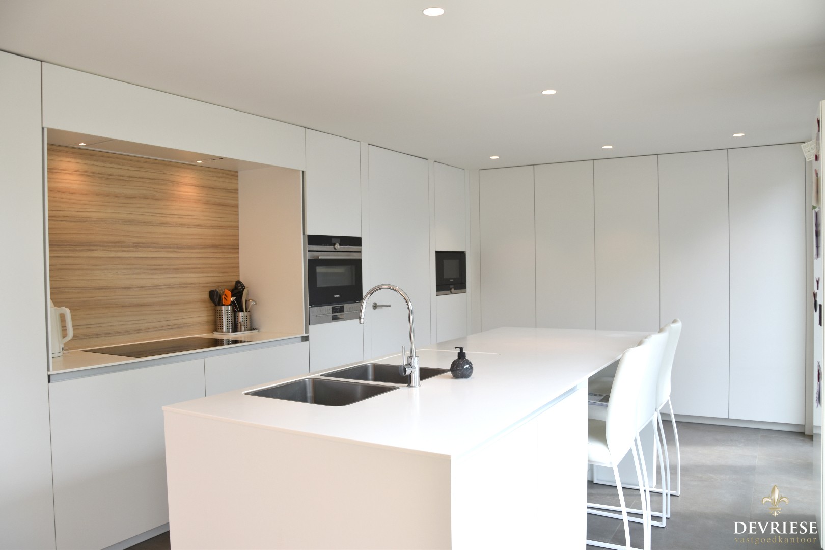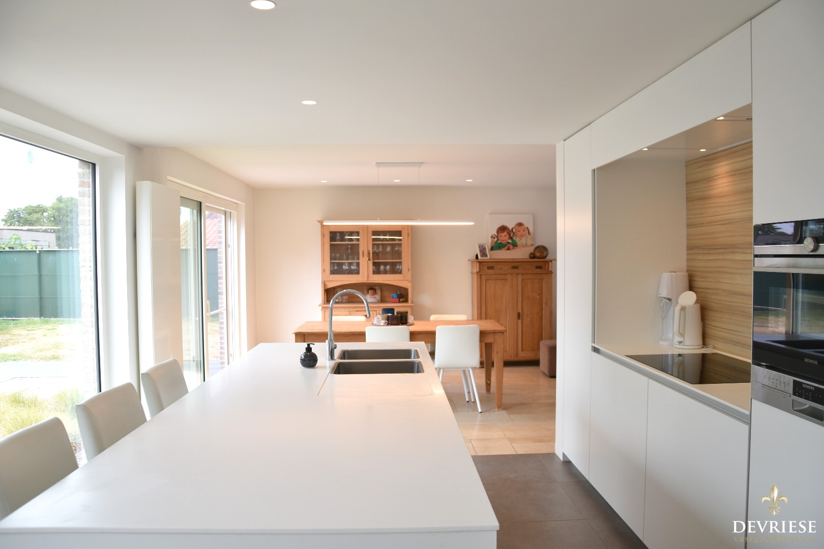 De op-maat-gemaakte keuken is een échte eye-catcher. Hoogwaardige afwerking in combinatie met kwalitatieve toestellen (merk Siemens & Miele).