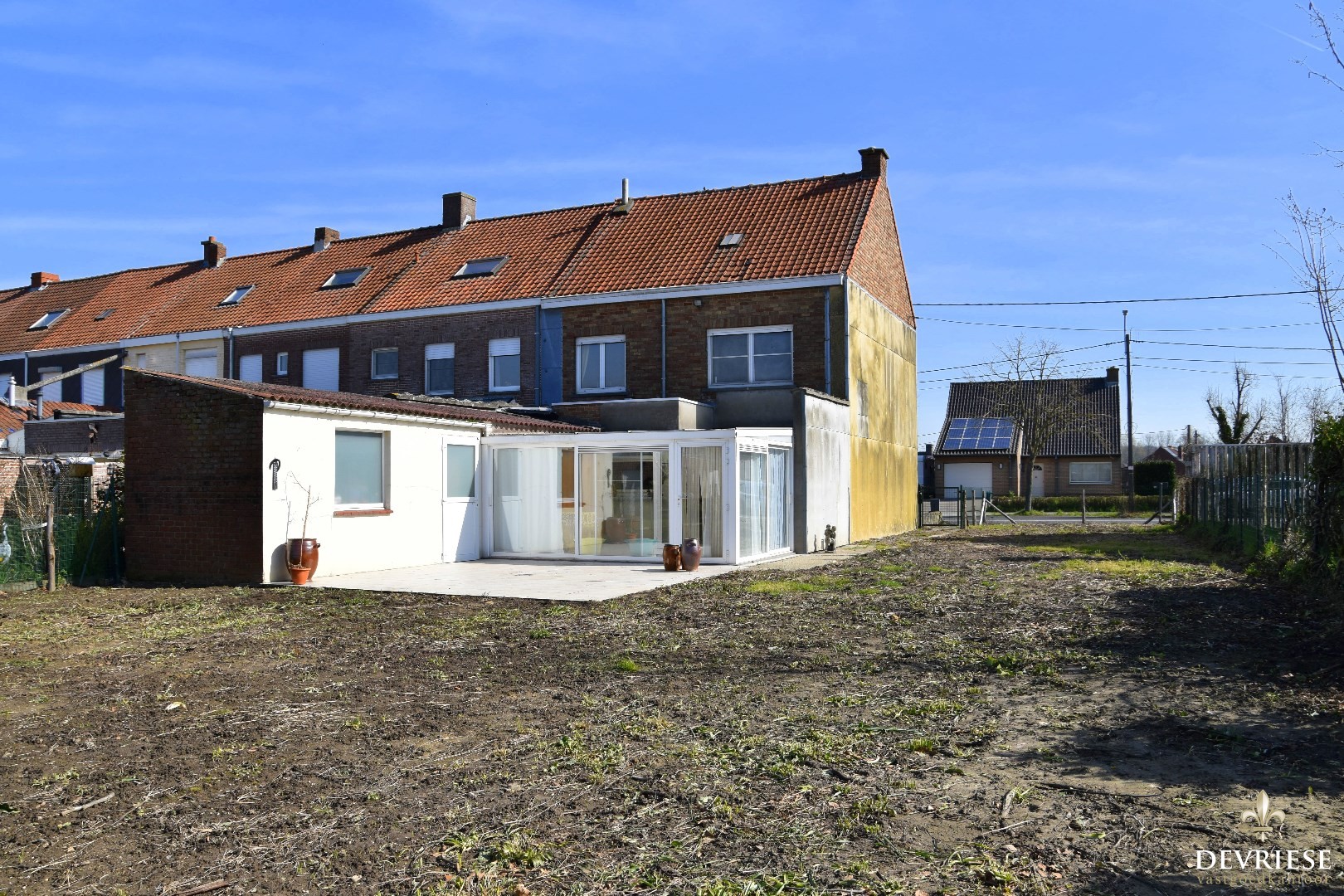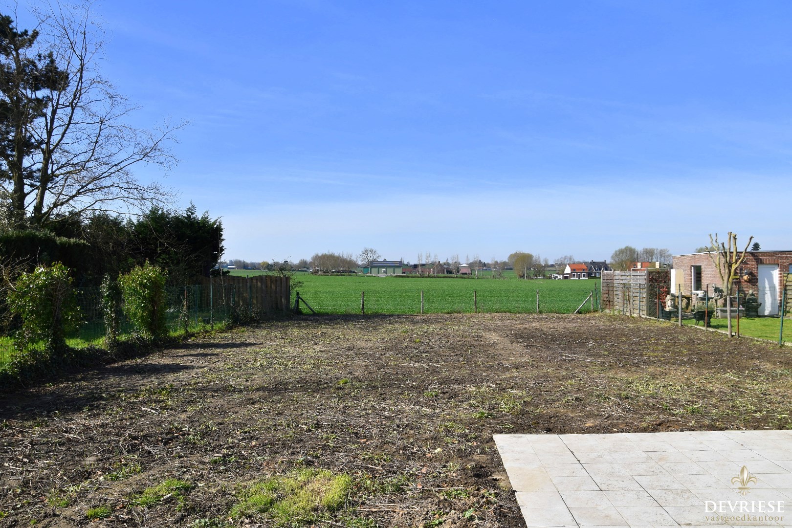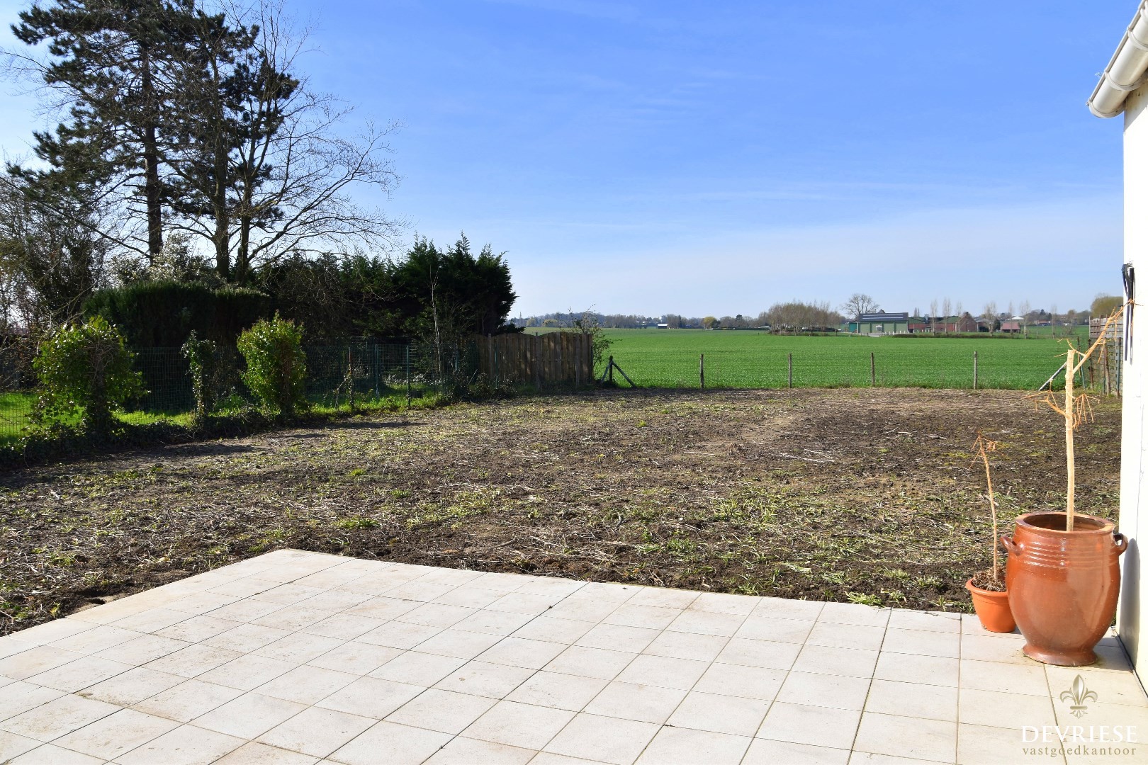 Zuidgerichte tuin met aangelegd terras en verzicht.