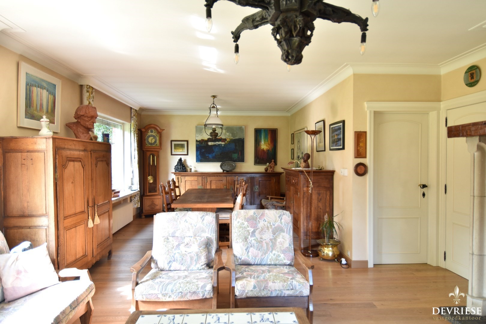 We treden de woning binnen via de ruime inkomhal met apart toilet. Van hieruit is er zowel toegang tot de keuken als tot de gezellige woonkamer. Dankzij de vele ramen baden beide ruimtes in natuurlijk daglicht en is het volop genieten van het groen in de tuin.