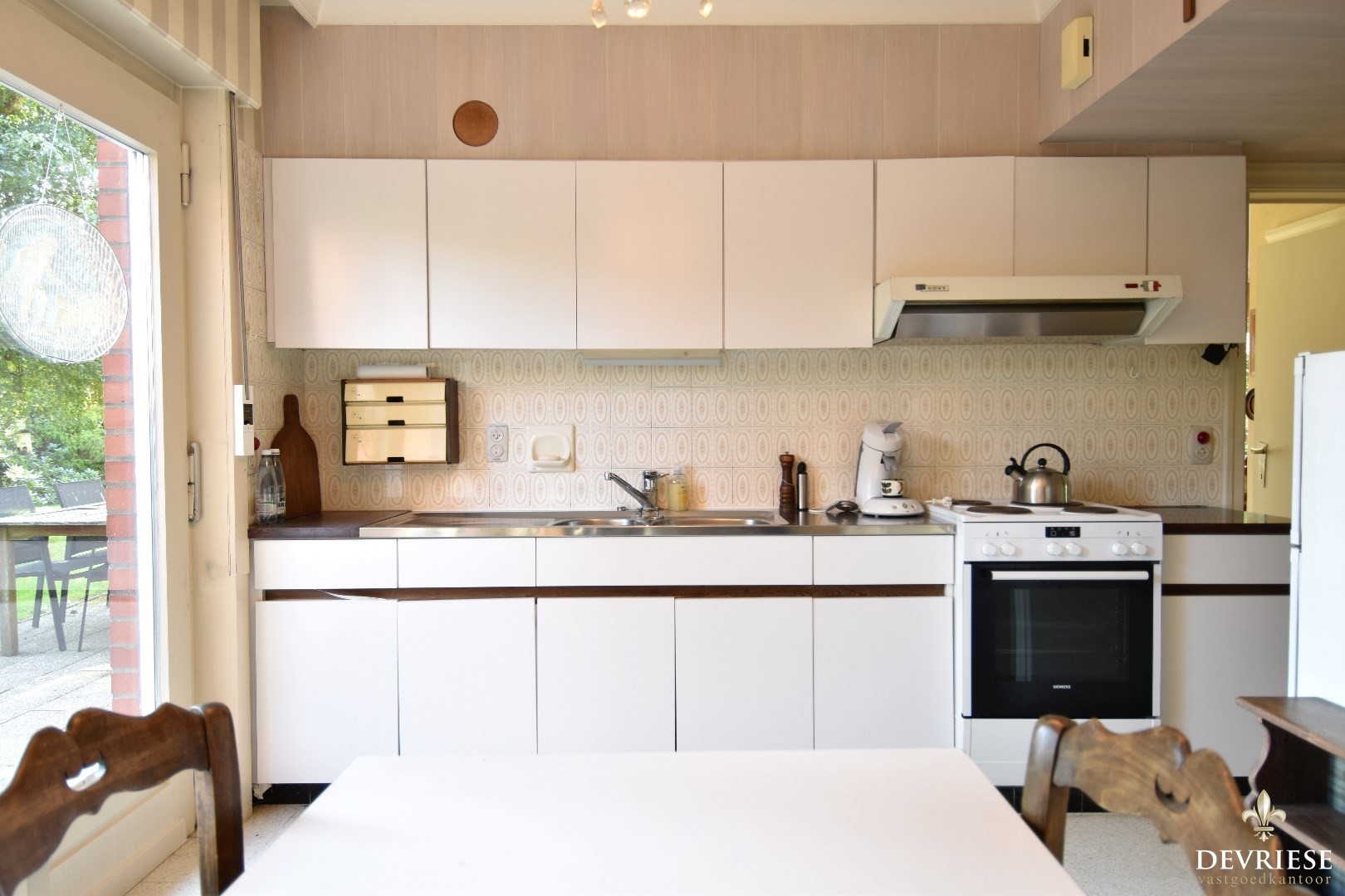 De inpandige garage is gelegen naast de keuken.