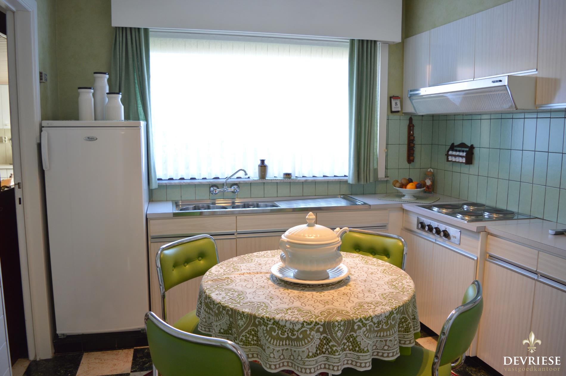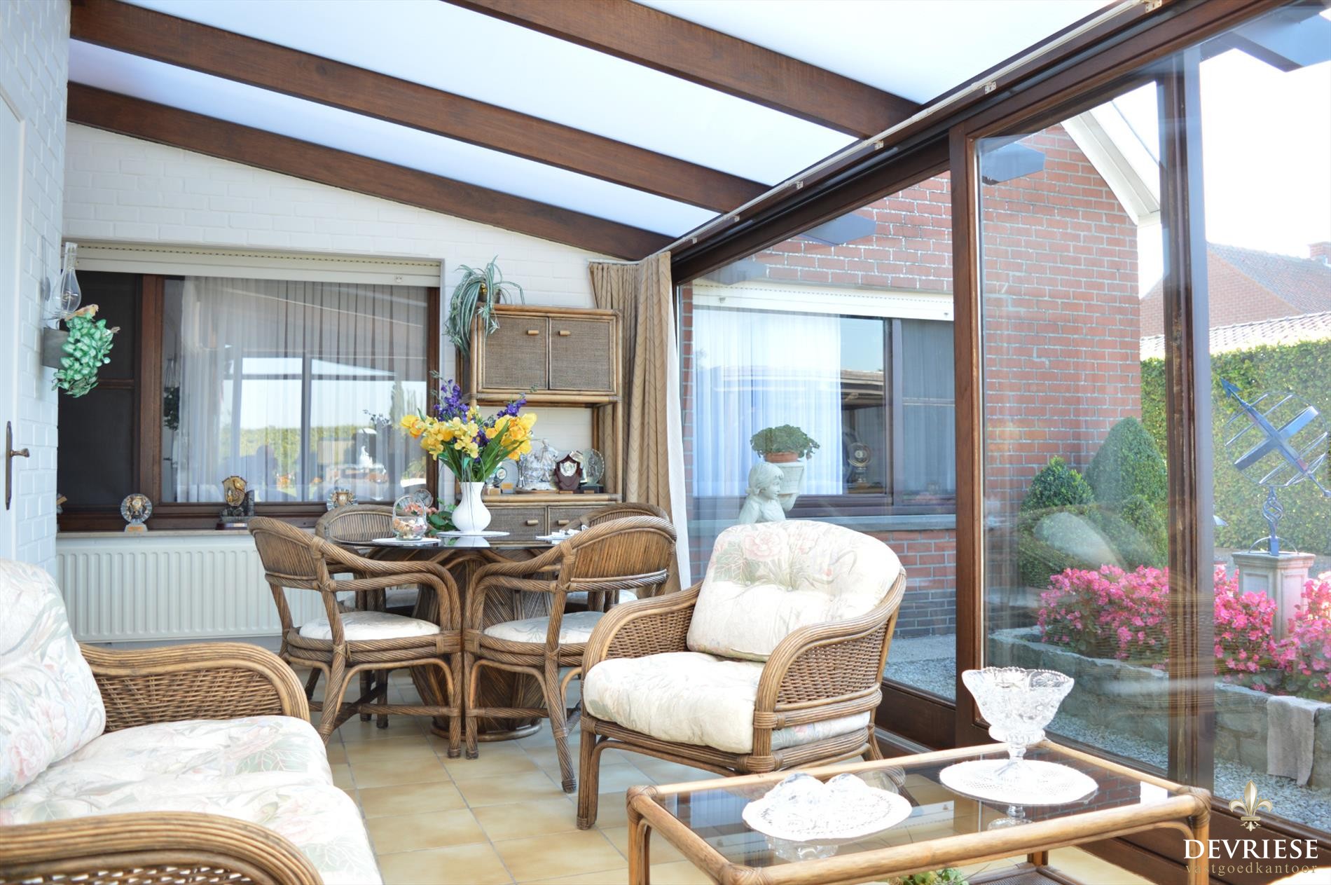 Deze op te frissen open bebouwing is volledig gelijkvloers ingericht. Twee keukens, een ruime woonkamer, badkamer, 2 slaapkamers, een veranda met zicht op de tuin en veel bergruimte, zo ook 2 zolderruimtes.