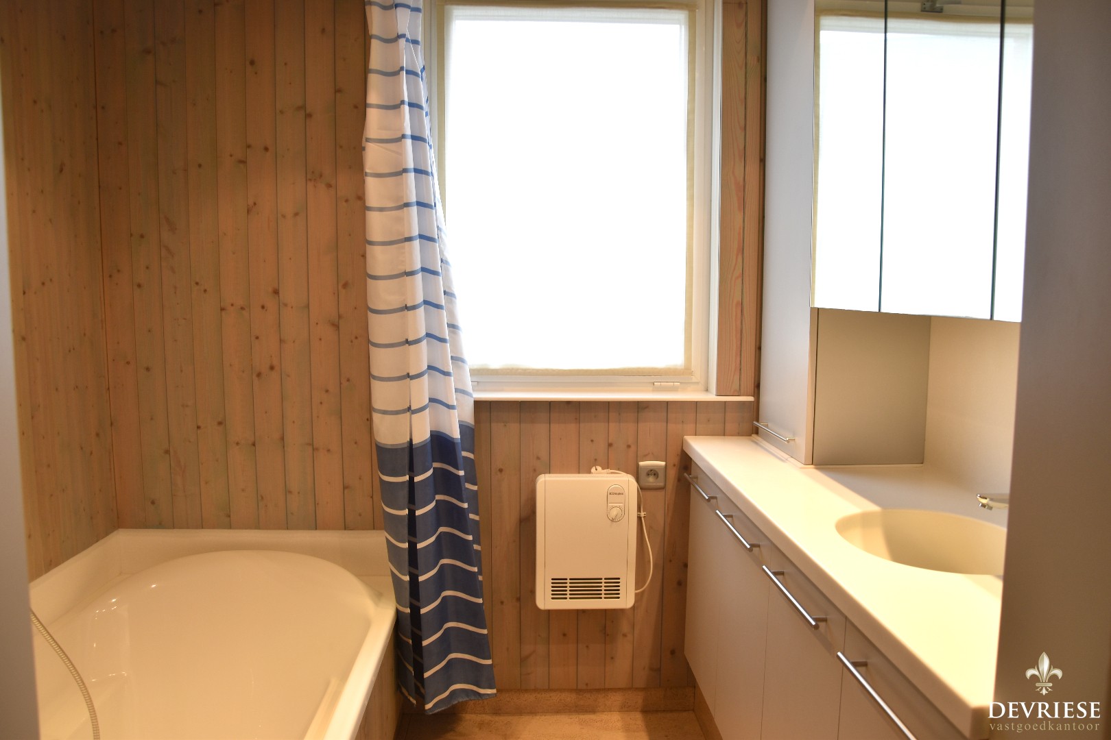 Tevens op het gelijkvloers de badkamer met ligbad en lavabo.