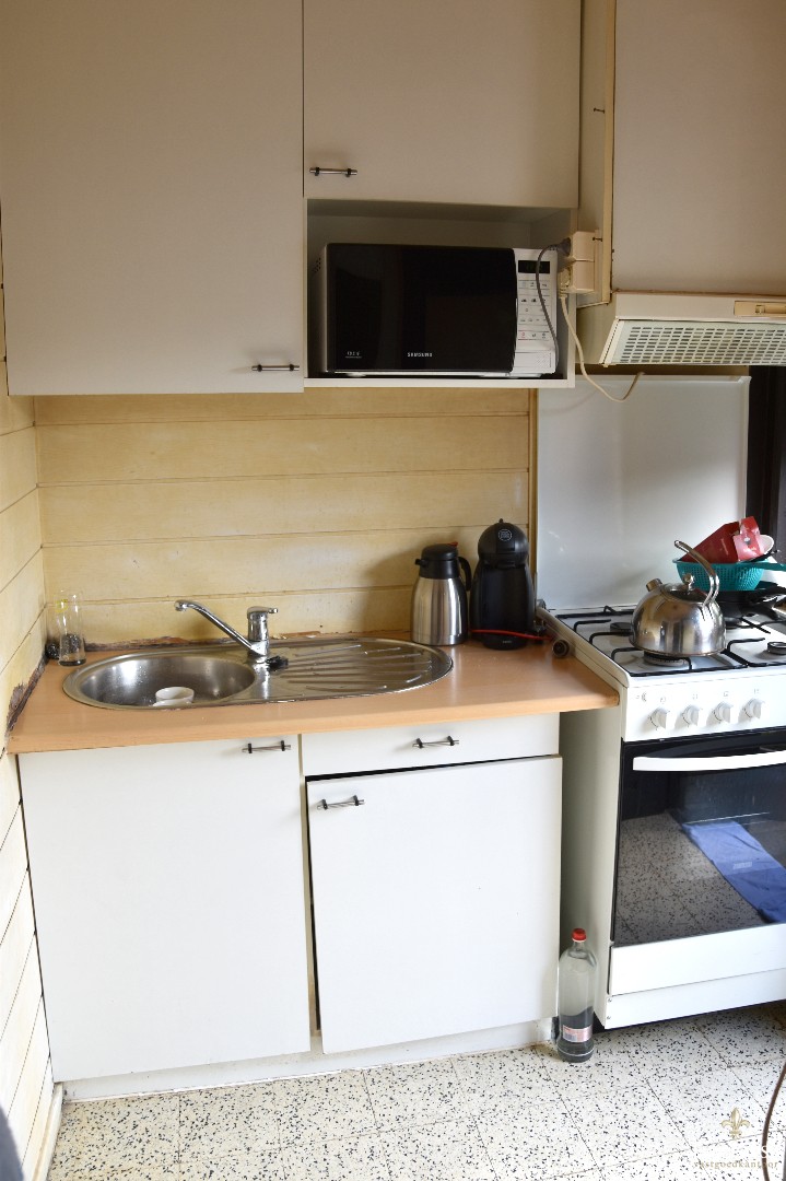 In de woning zijn er op vandaag 2 slaapkamers op de verdieping, een leefruimte met keuken en badkamer op het gelijkvloers.