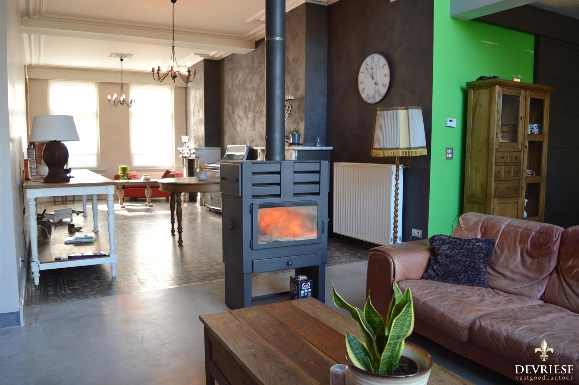 Achter deze stijlvolle gevel gaat enorm veel authenticiteit schuil in combinatie met moderne toetsen. U komt binnen in de ruime inkomhal waar een apart gastentoilet voorzien is. Daarnaast de lichtrijke leefruimte met als blikvanger de hoge raampartijen die zorgen voor een enorme lichtinval en een vol zicht op de tuin. Geniet er volop van de gezelligheid door de houtkachel als centraal gegeven alsook de originele vloeren. Aansluitend de moderne open keuken, volledig ingericht en zeer uniek, betonnen werkblad, om van te watertanden. Naast de keuken een praktische bergruimte en de garage.
