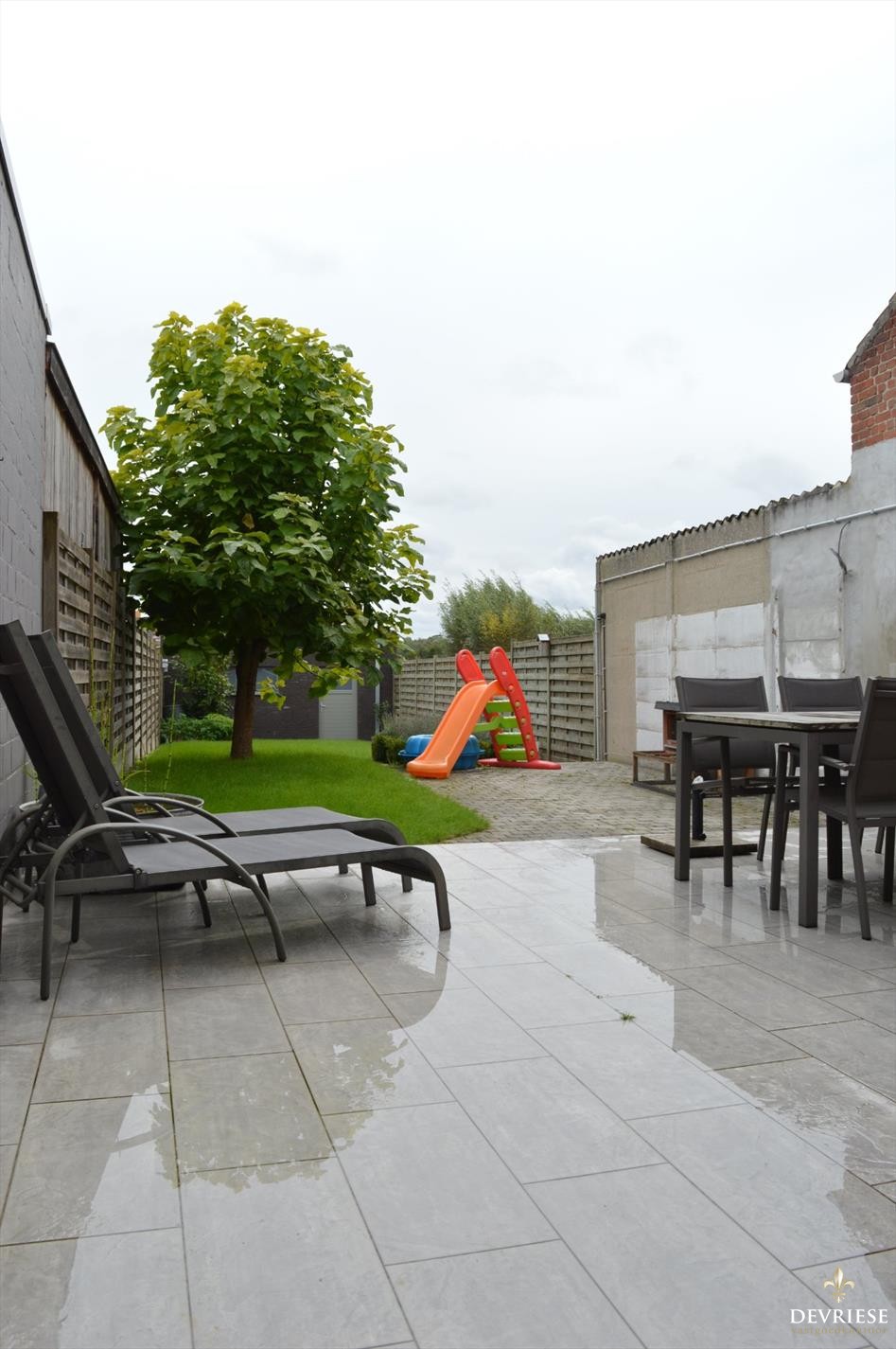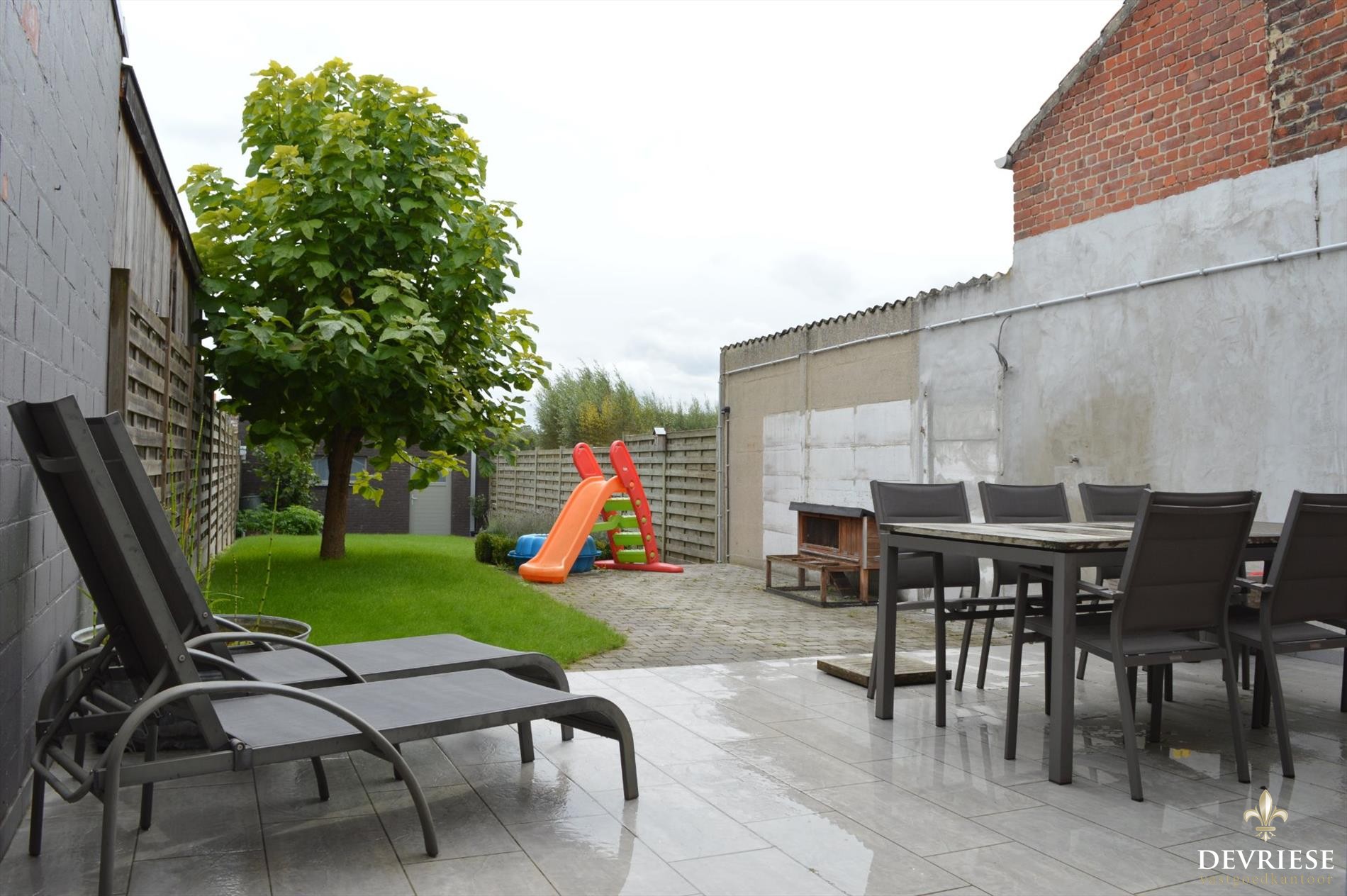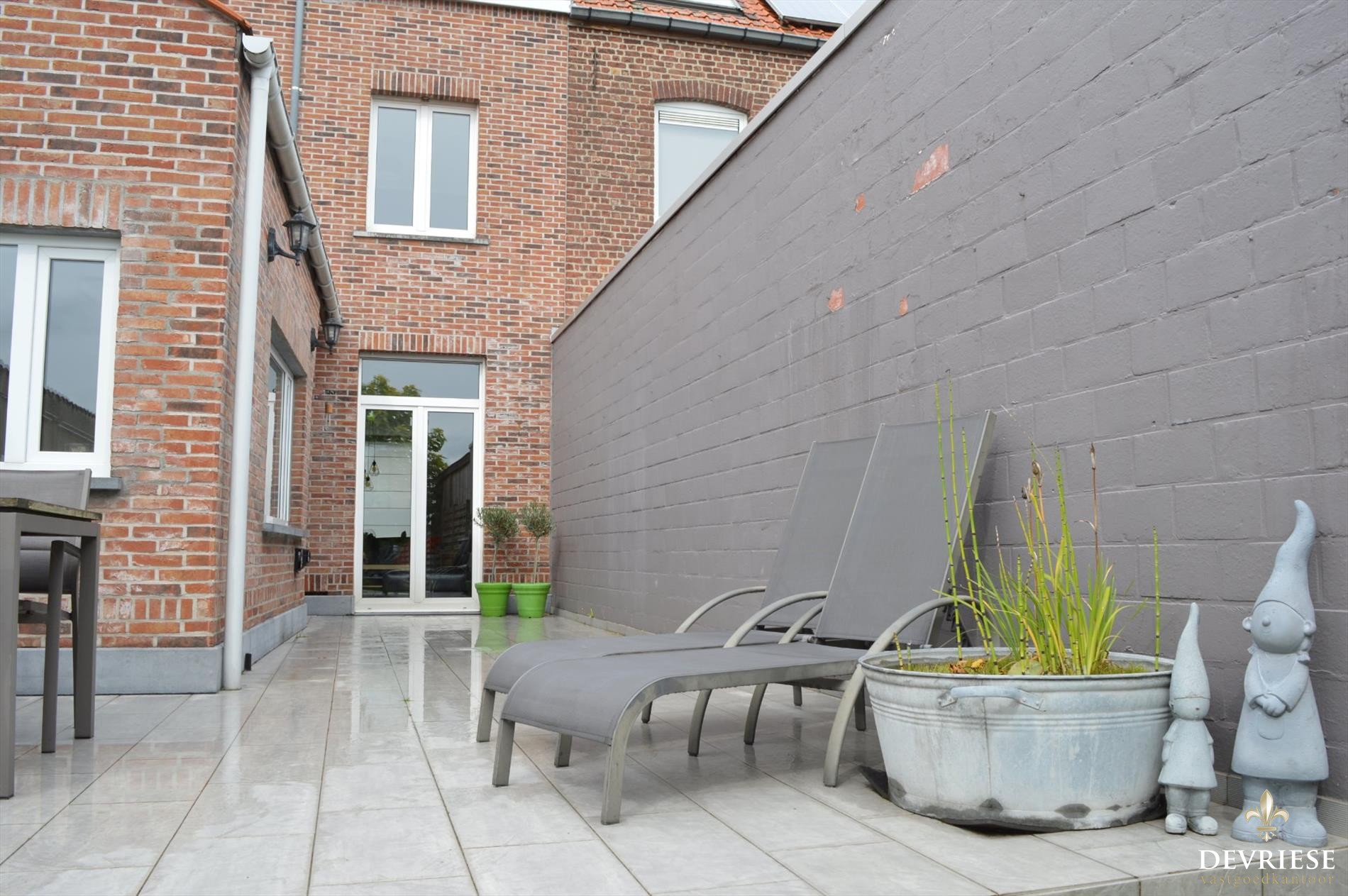 Achteraan de woning een volledig aangelegde tuin met Z-oriëntatie die achteraan uitkomt op de recente dubbele garage. ... Deze is voorzien van elektrische poort en voorzien in een uitweg die als meerwaarde vast en zeker kan tellen.
