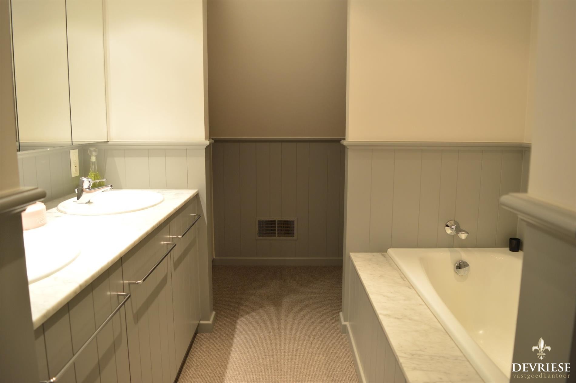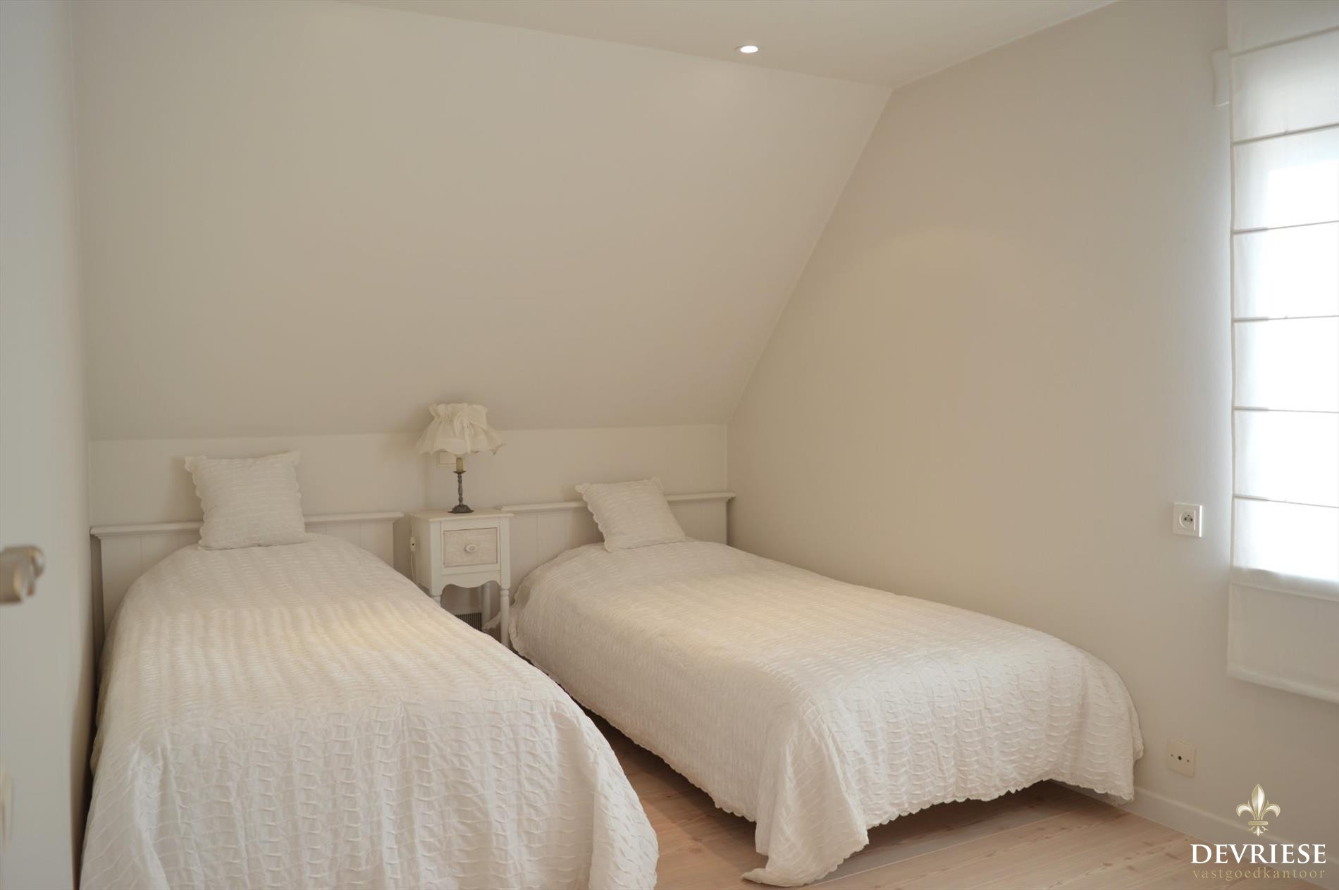 De eerste verdieping werd heel recentelijk volledig vernieuwd. Hier vindt u 3 volwaardige slaapkamers met heel veel ingemaakte wandkasten en de badkamer met douche, bad, dubbele lavabo en een tweede toilet.