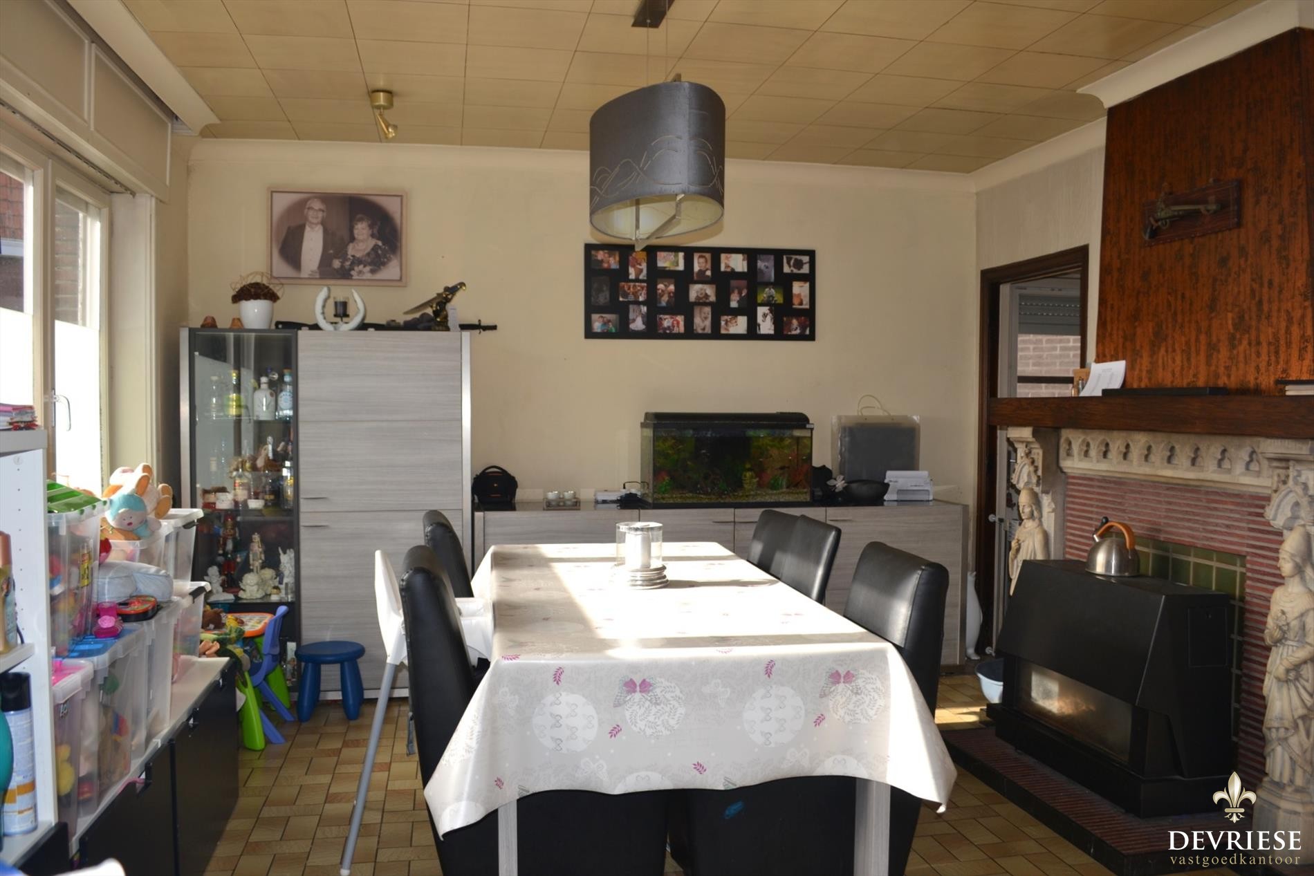 De woning bestaat uit een ruime inkomhal met gastentoilet, leefruimte opgedeeld in eet- en zithoek met toegang tot de keuken.